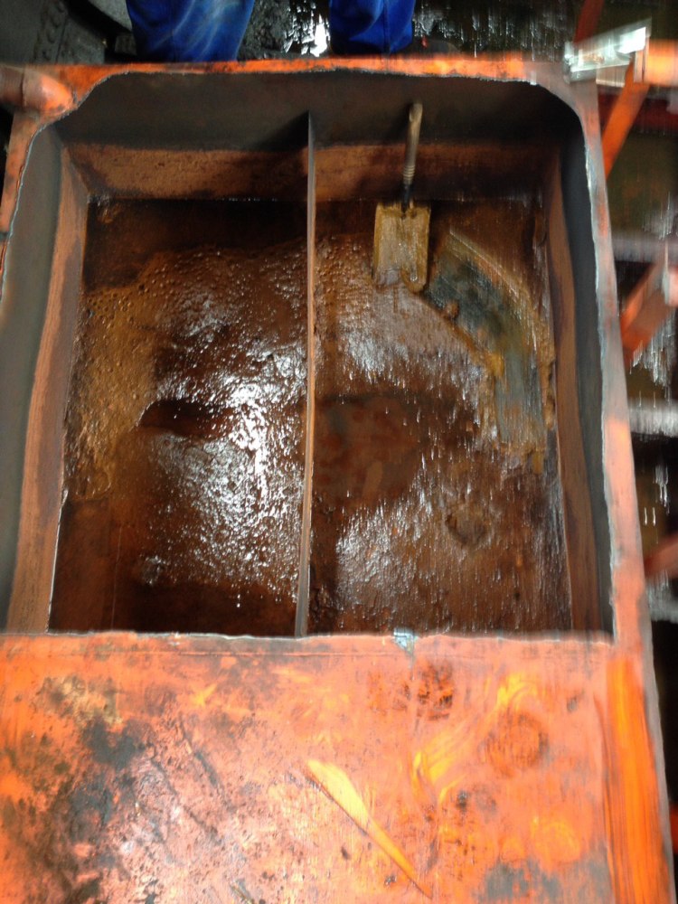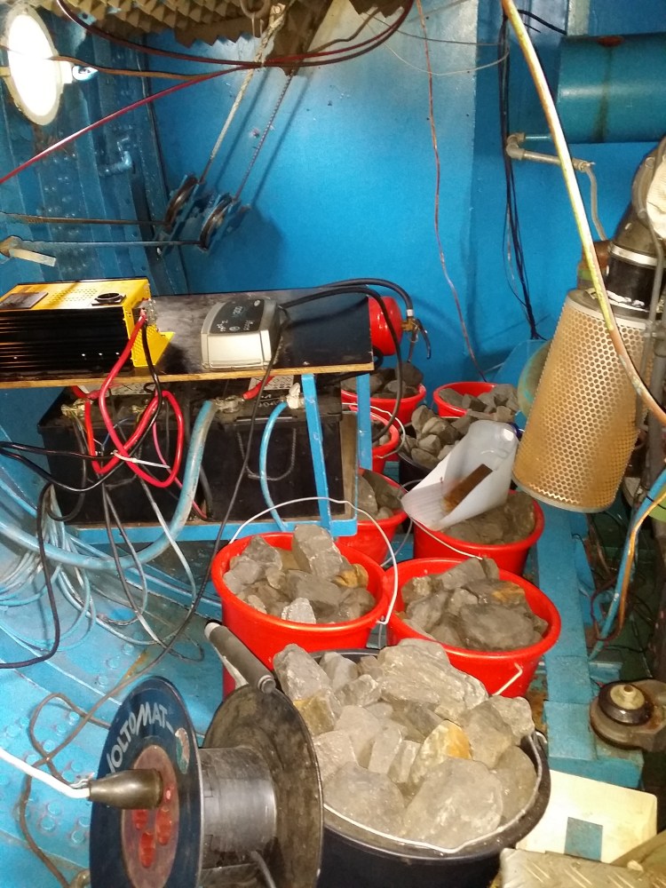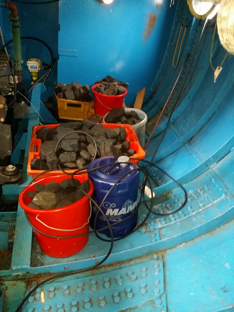 Ein weiterer umfangreicher Arbeitsschritt war die Aufräumaktion im Motorraum. Ich hatte ja bereits erwähnt, dass dieser mal aufgedoppelt wurde. Außerdem wurde er gesandstrahlt und anschließend neu lackiert. Eigentlich wunderbar, aber anschließend wurden 822,10 Kilogramm Basalt reingeschüttet. Der nahm nicht nur jede Menge Platz weg, sondern schabte wegen der teilweise starken Vibrationen während der Fahrt den frischen Lack runter und ließ es darunter rosten. Ein Umstand den ich schnellstmöglich ändern wollte. Allerdings konnte man nicht nur einfach das Zeug rausschmeißen, sondern musste es durch andere Gewichte ausgleichen, da ansonsten die Lage des Bootes im Wasser verändert worden wäre. Lange habe ich überlegt was ich benutzen könne und bin schlussendlich bei Bleibarren gelandet. Die habe ich zum Schrottpreis bei einem Mitglied aus dem Boote-Forum erstanden.