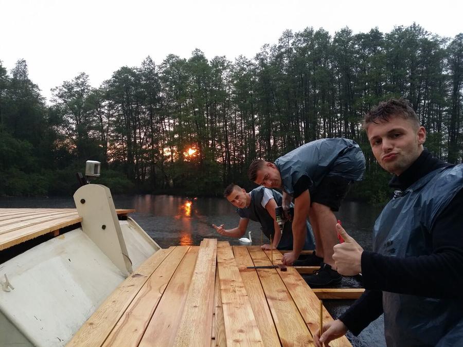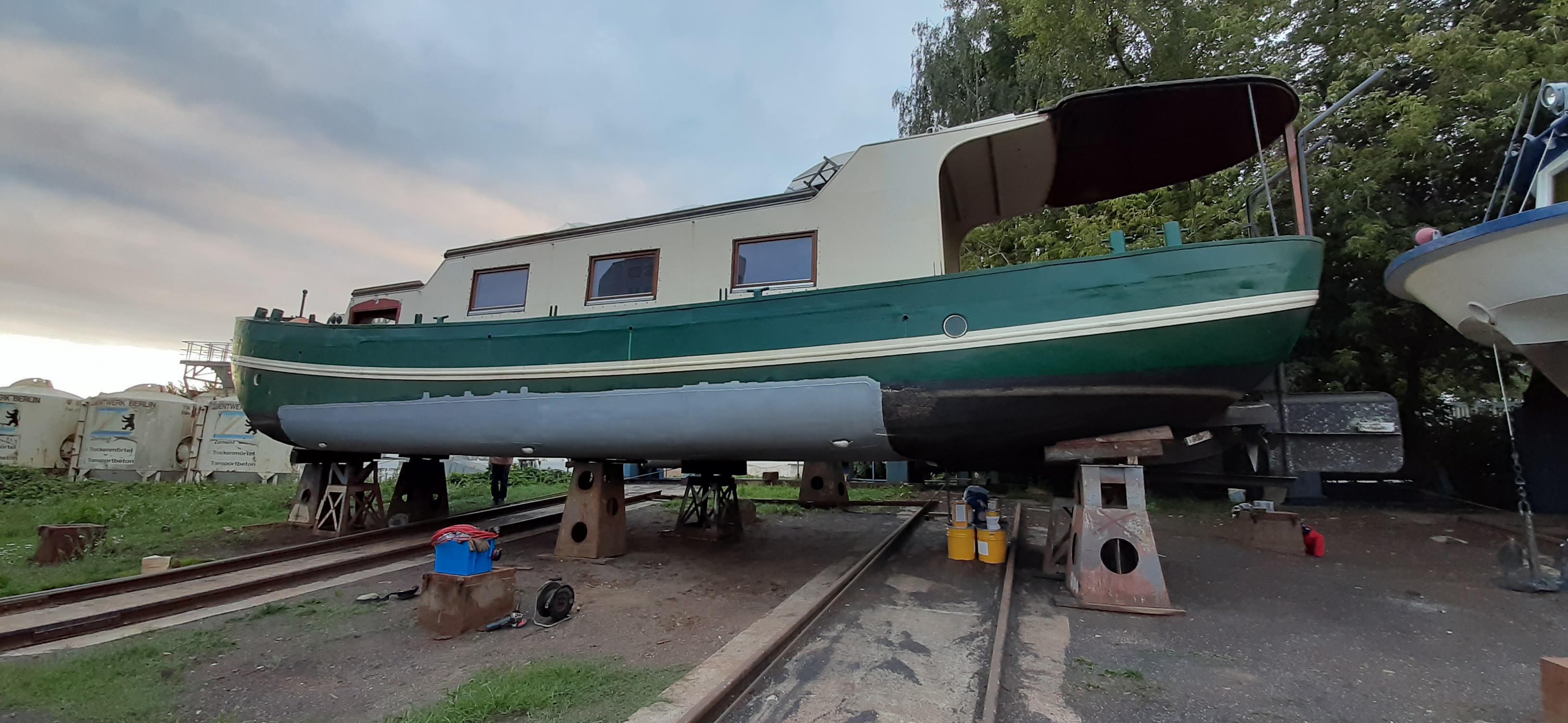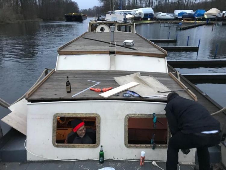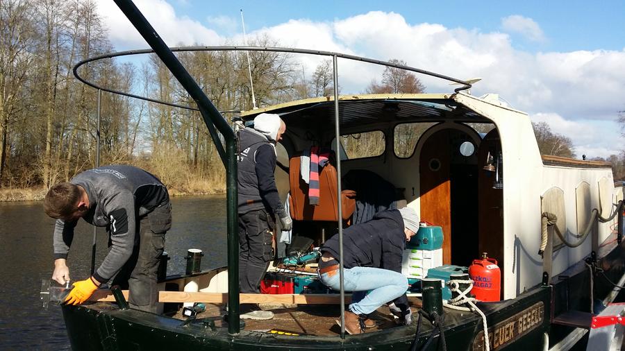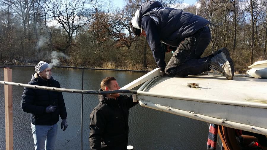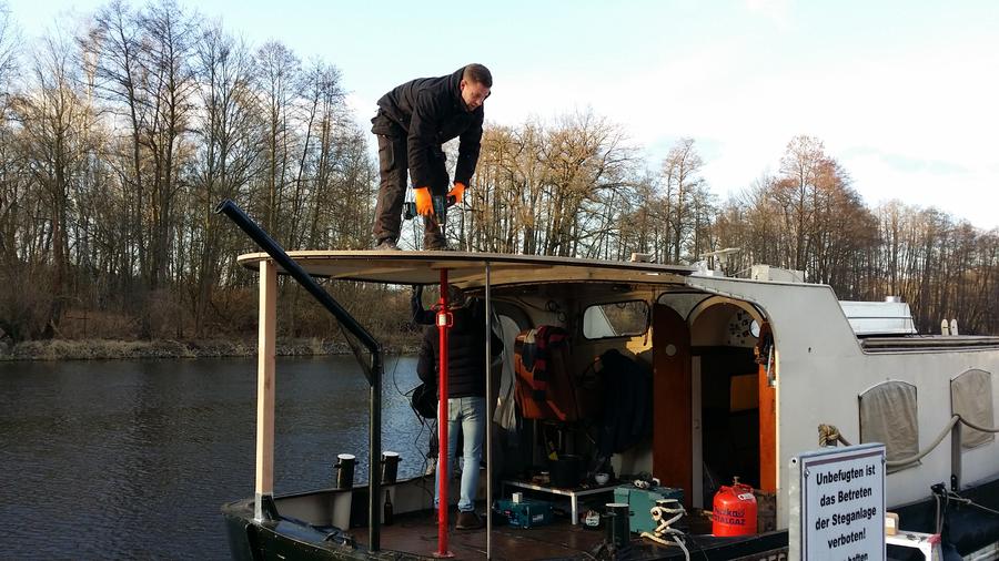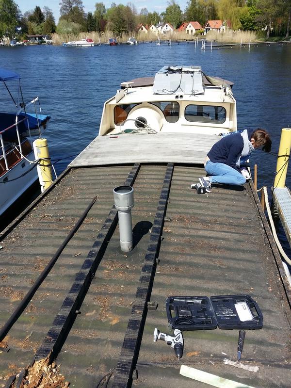 Ich entfernte die alten Bretter gemeinsam mit meiner Freundin, bereitete alles vor und fuhr gemeinsam mit Leon „die Baustelle“ zur Havelbaude. Die Havelbaude ist ideal gelegen. Ich kann schnell da sein, man kann laut sein und man hat jede Menge Platz. Immernoch überwintere ich gerne dort.