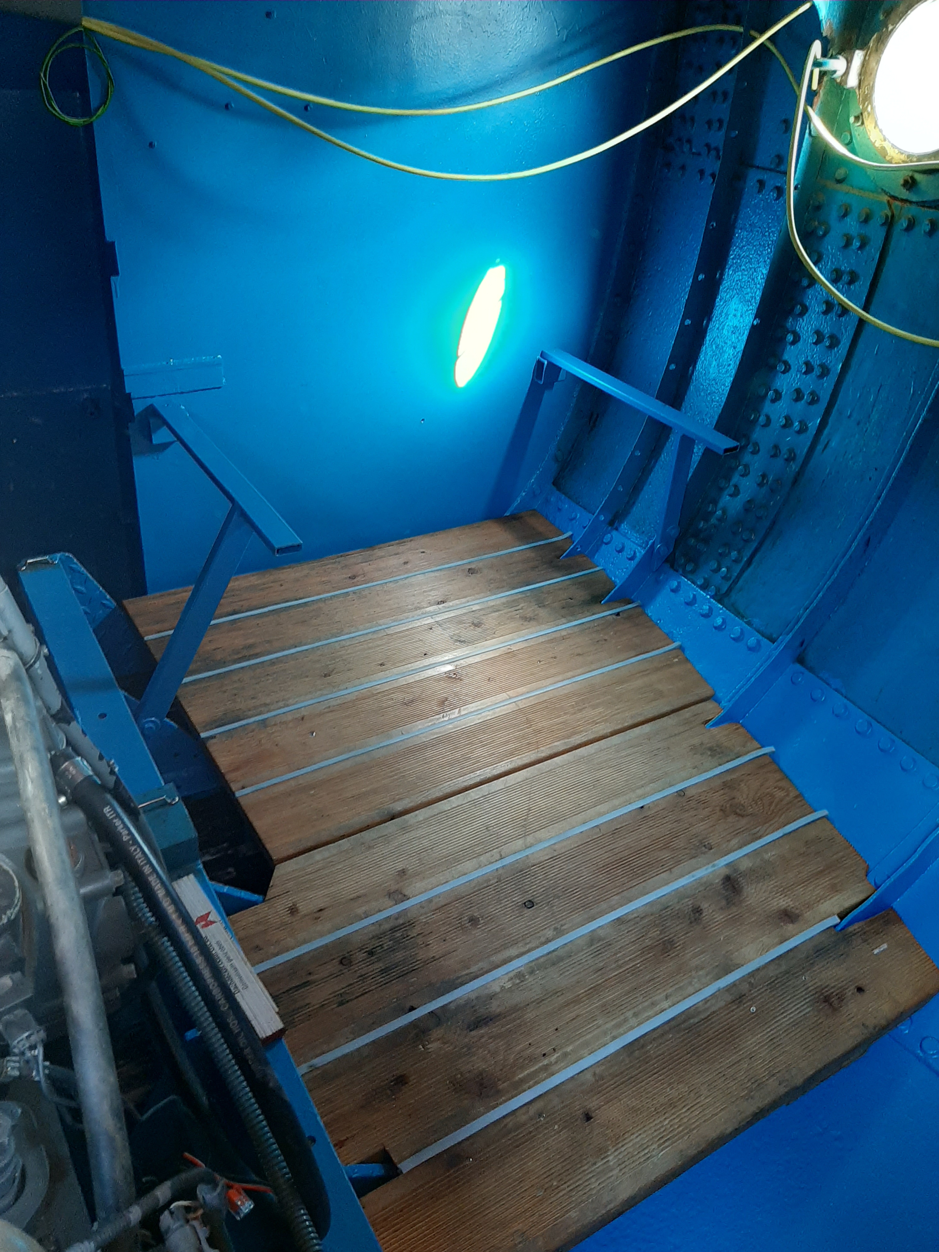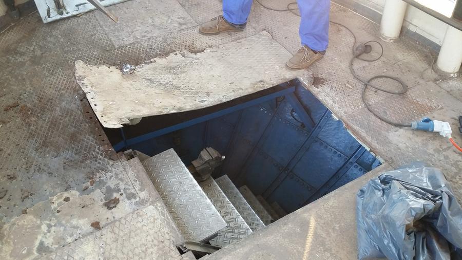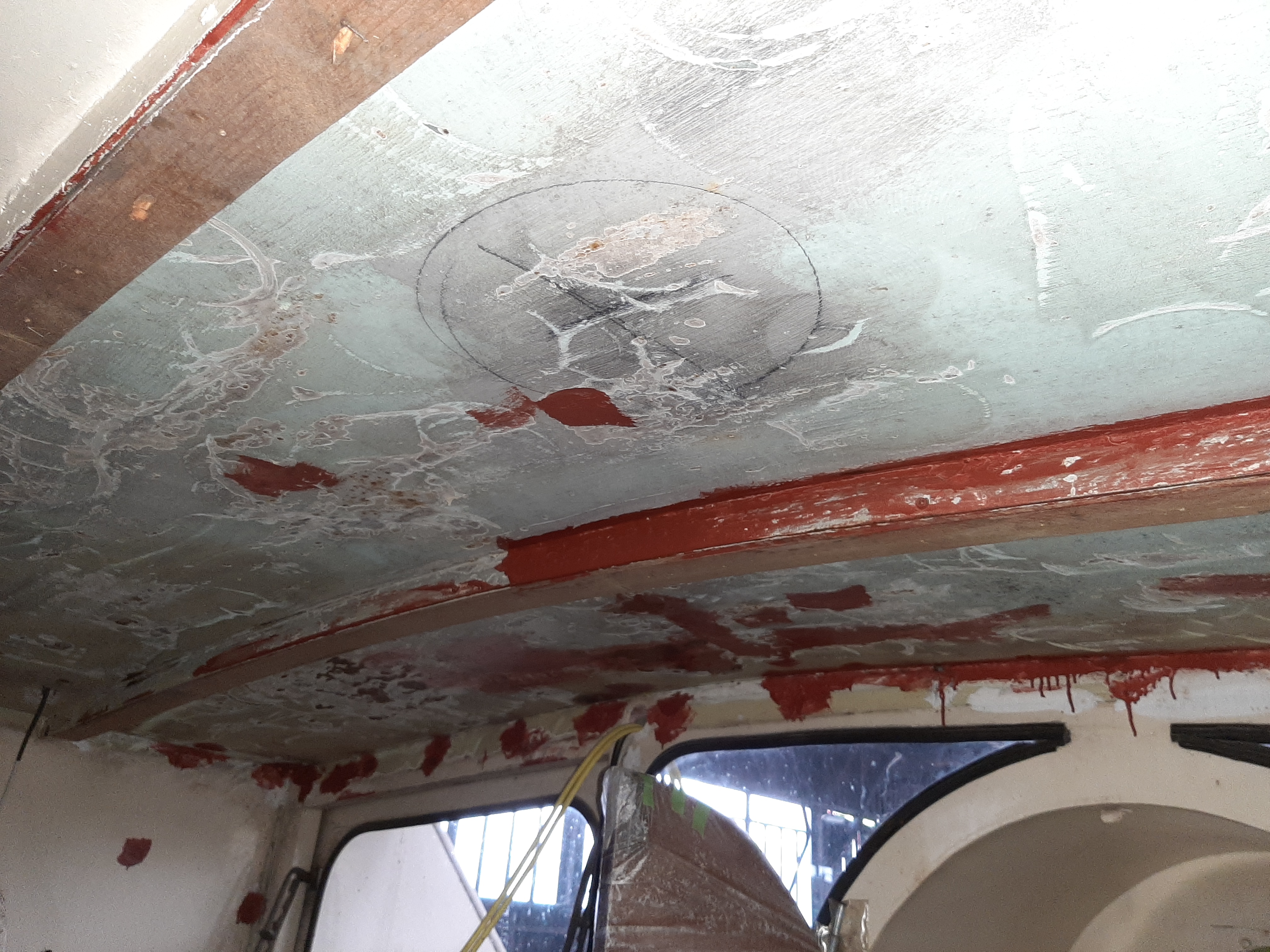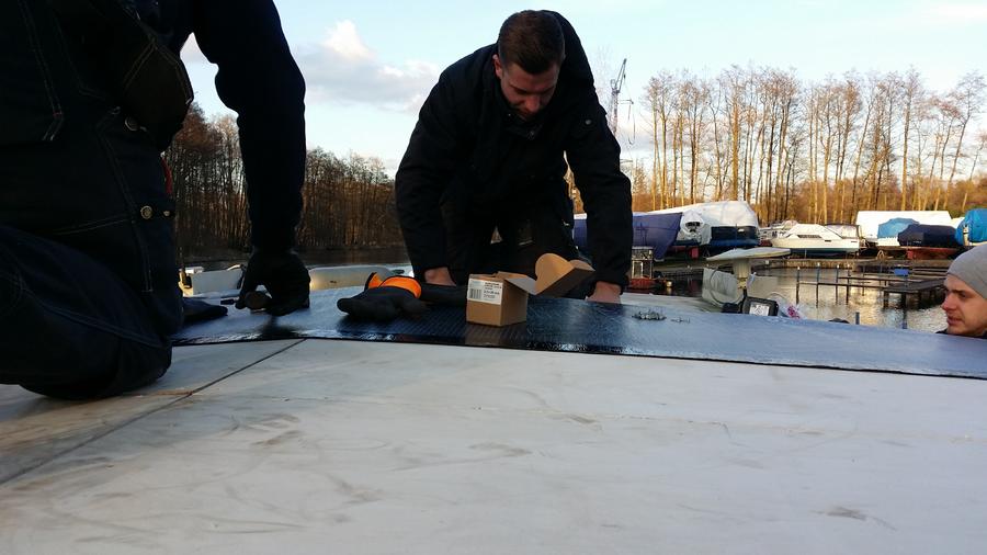 Letzendlich haben wir es aber hinbekommen. Das Deck wurde mit Owatrol CIP konserviert, um ein erneutes Rosten zu verhindern. Der Motorraum wurde mit einer neuen Luke versehen und die Platten, welche zum Zweck eines Motorausbaus raus genommen werden können, wurden neu eingedichtet. Dann war Ruhe und das Regenwasser floss nicht einfach so in den Motorraum.