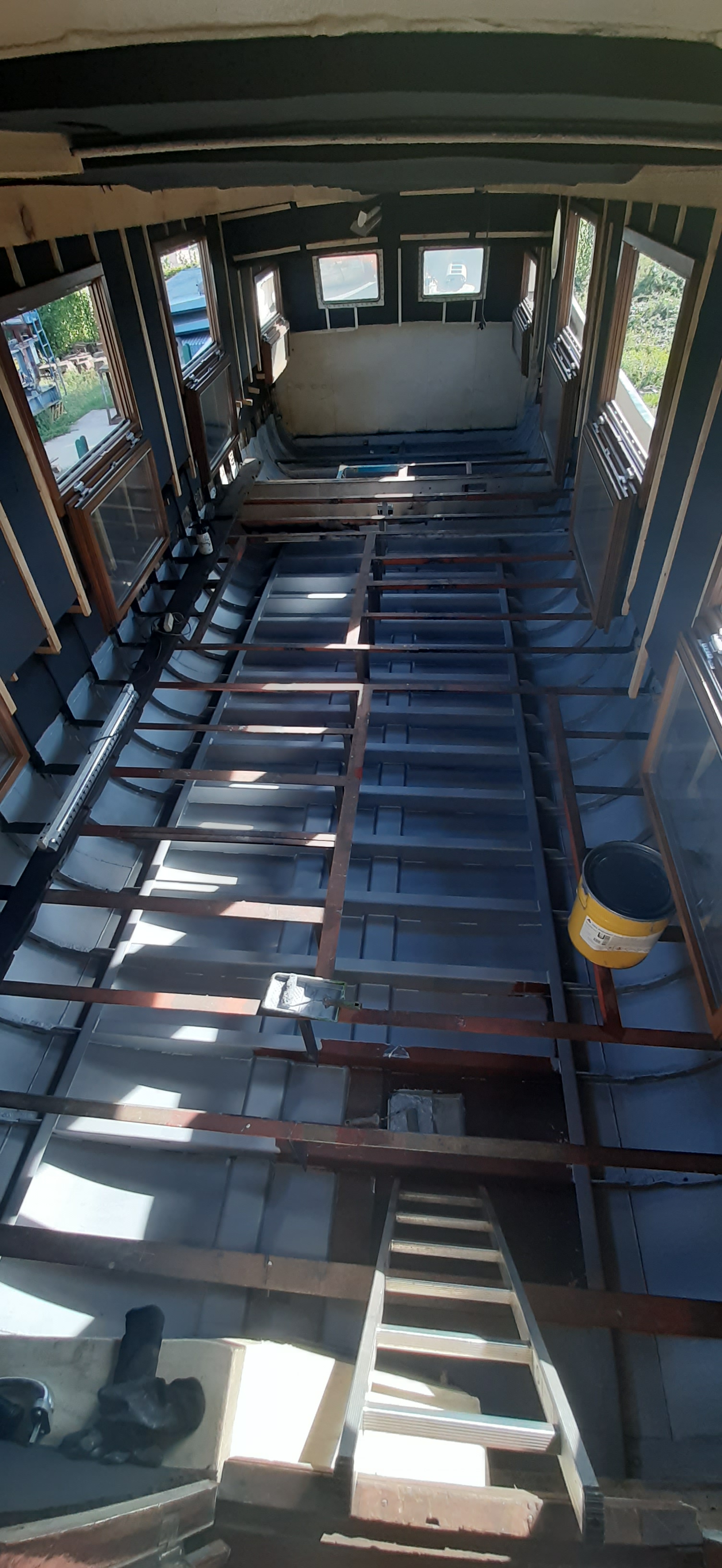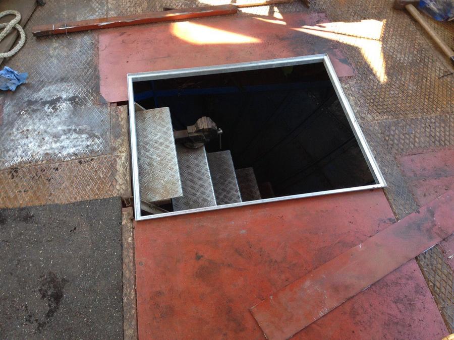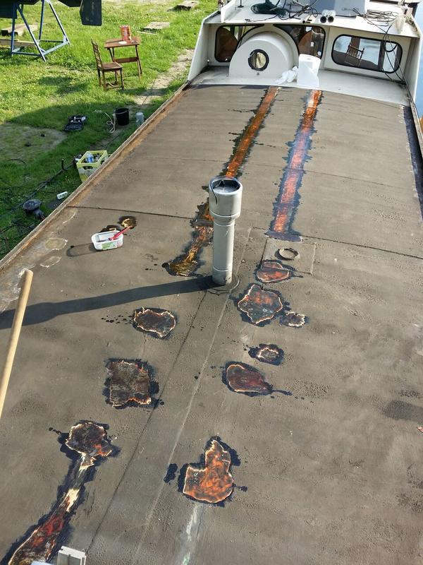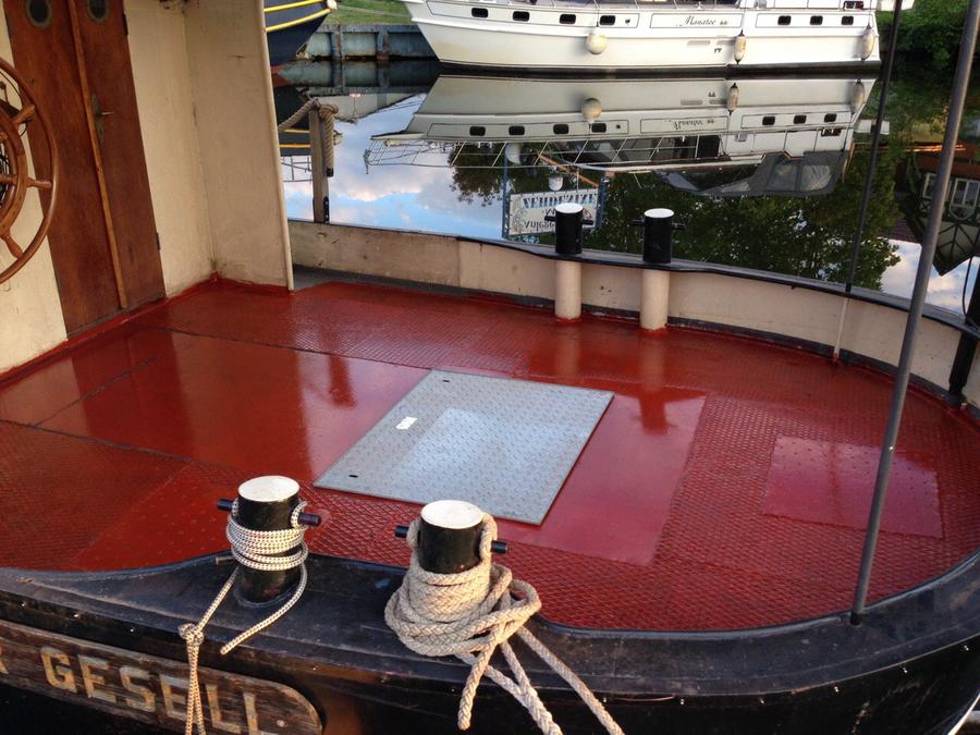 Letzendlich haben wir es aber hinbekommen. Das Deck wurde mit Owatrol CIP konserviert, um ein erneutes Rosten zu verhindern. Der Motorraum wurde mit einer neuen Luke versehen und die Platten, welche zum Zweck eines Motorausbaus raus genommen werden können, wurden neu eingedichtet. Dann war Ruhe und das Regenwasser floss nicht einfach so in den Motorraum.