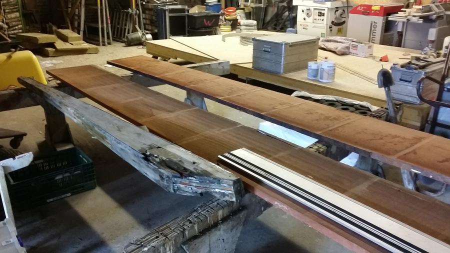 Relativ einfach und schnell gelang dagegen der Neubau der Unterkonstruktion der zukünftigen Eignerkabine. Eine Treppenstufe als Niedergang zur Eignerkabine ging auch zügig von der Hand.