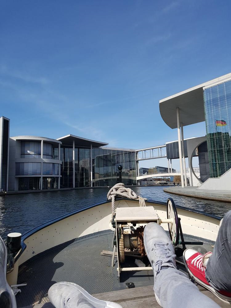 Und so hatten wir auch das gerockt. Einmal durch Berlin. Das war natürlich was anderes als im September über den Seddinsee zu dümpeln. Die Spree wird von vielen Berufsschiffen befahren, welche immer Vorrang haben. Am besten spricht man sich daher mit denen über Funk ab – schlecht wenn man den auf Grund fehlender Funkzeugnisse noch nicht bedienen darf. Also stand das ganz oben auf unserer Prioritätenliste. Schnell waren auch die in der Tasche.