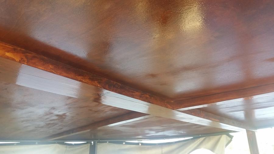 Das Dach war dann wieder ein Fall für Leon. Diesmal mit Verstärkung. Einen Tag Arbeit – bei bitter kalten Minusgraden – für die Jungs. Es wurde noch von unten gebeizt und geölt.