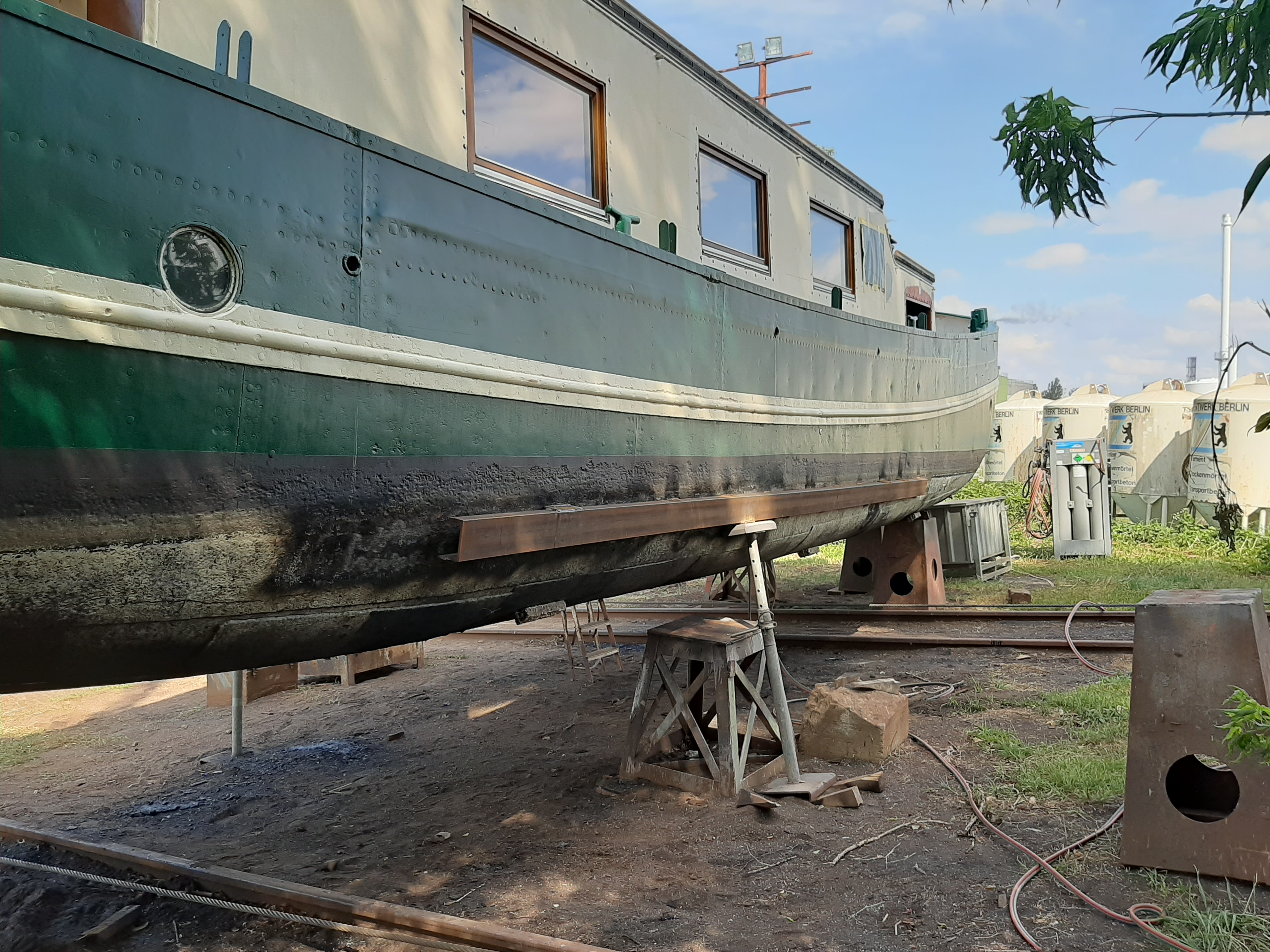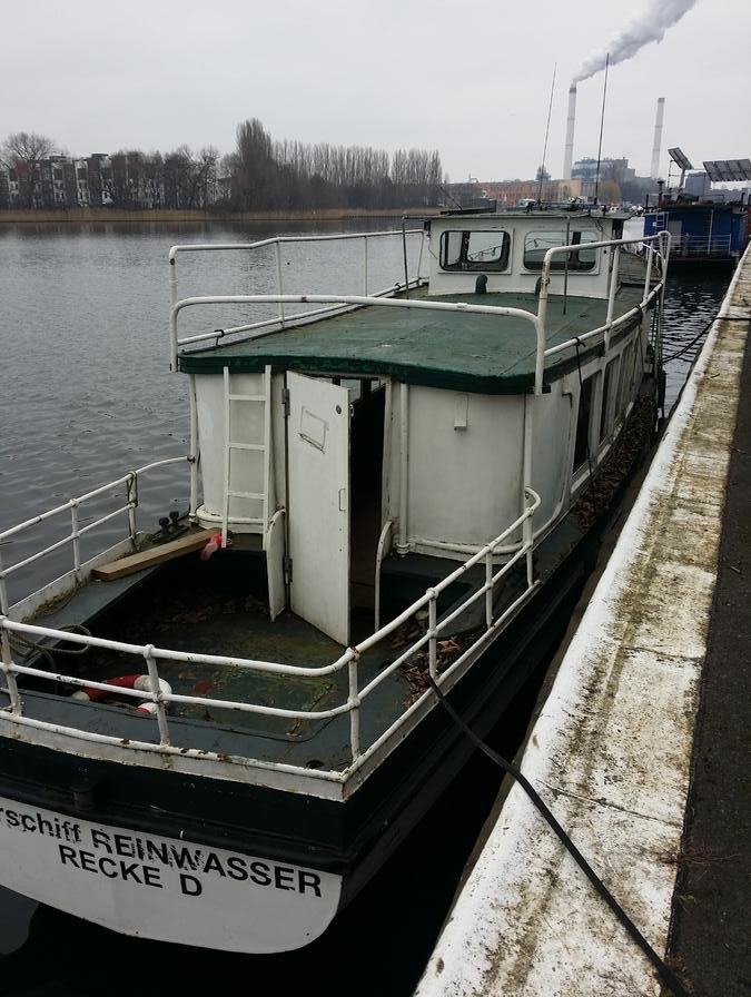 Ich wurde dann ausgerechnet bei Ebay Kleinanzeigen fündig. In Berlin. Mit Liegeplatz. Am nächsten Tag stand ich an der Rummelsburger Bucht. Ich war verabredete mit einem Herrn, der alte Fahrgastschiffe nach Berlin bringt, dort komplett entkernt und dann mit Gewinn verkauft. So auch die Reinwasser. Eine alte Fähre, welche zum Laborschiff umgebaut und anschließend als Partyschiff genutzt wurde. Mit einem Liegeplatz in der Rummelsburger Bucht?! Konnte das sein? Nicht wirklich, wie sich herausstellte. Das Land hatte mit dem weiter oben genannten Architekten einen Pachtvertrag. Dieser vermietete die Liegeplätze unter. Ohne Strom oder Wasser. Wir fanden über diverse Zeitungsartikel den Namen des Architekten heraus und fragten nach. Er duldet die Boote, sollte es aber zu einem positiven Entscheid seines Vorhabens kommen wären alle Liegeplatzverträge hinfällig. So hatte der Verkäufer der Reinwasser uns das nicht geschildet. Und dafür war der Kaufbertrag für das Boot schlichtweg zu hoch. Es war ja quasi nur ein Stahlkasko.