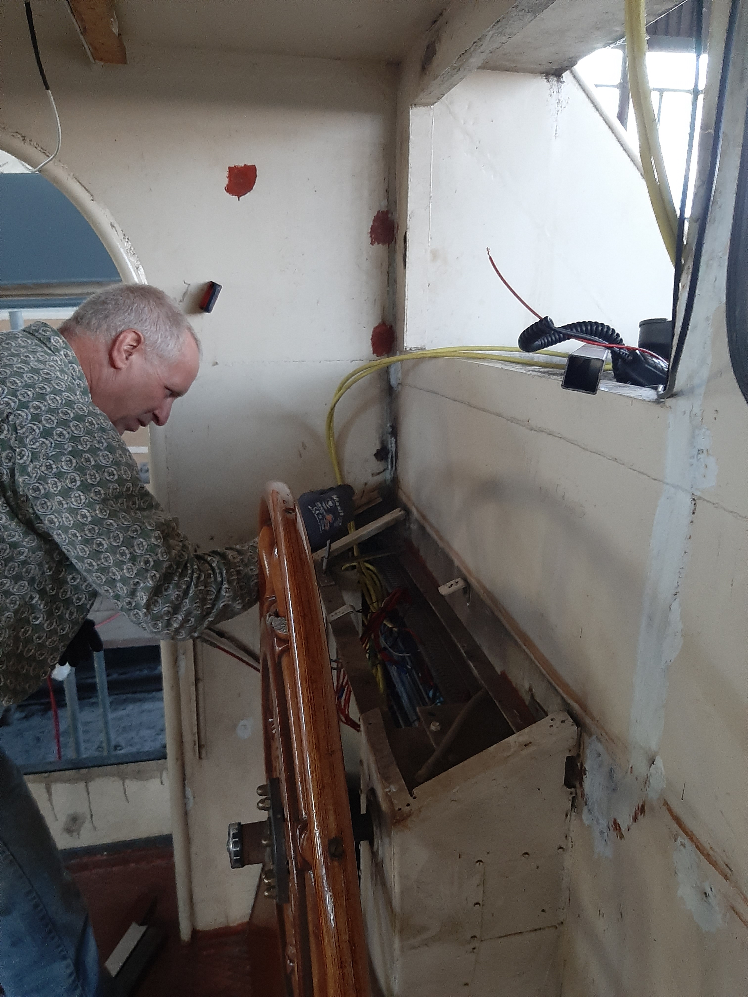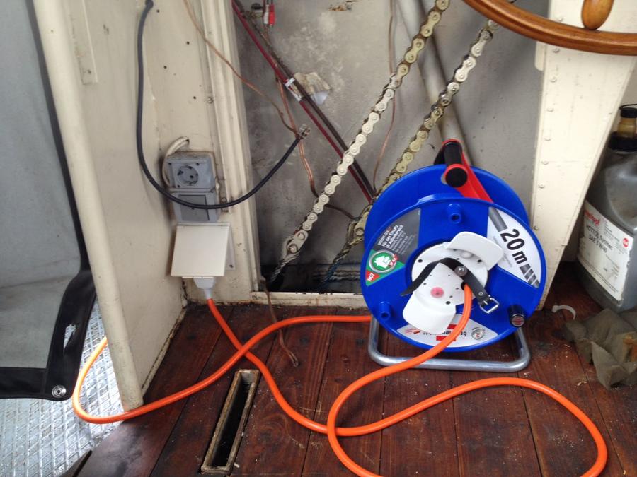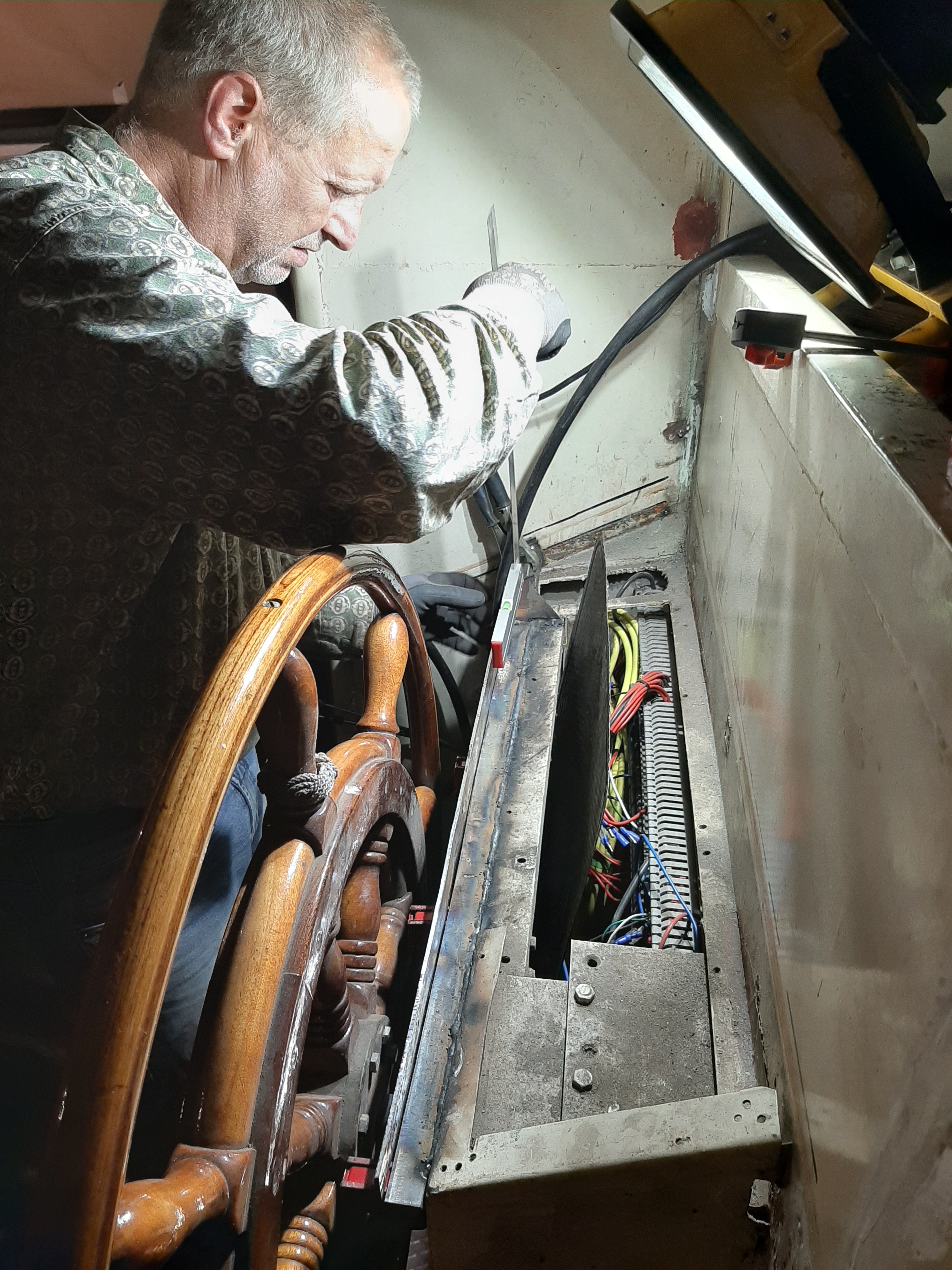 Es wurde aber auch schon viel getan. Der Motor war mit 300 Betriebsstunden gerade mal eingefahren. Das Getriebe war neuwertig und da es aus der Berufsschifffahrt stammt gut geeignet. Das Vorderschiff wurde genauso auf gedoppelt wie der Heckbereich des Schiffs. Auch wurden Teile des Innenraum neu konserviert. Ein neues enorm großes Seeventil wurde eingeschweißt. Technisch stand der Gesell gut da. Außerdem war gerade ein Elektriker an Bord, ein Freund von Luis – das machte Mut. „Die Elektronik wird gerade noch fertig gemacht“. Das stimmte leider nicht ganz, aber dazu mehr im Verlauf.