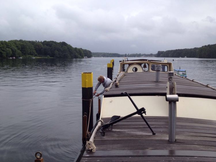 Am nächsten Morgen legten wir wieder ab und fuhren dieselbe Strecke zurück. Am Ende der Fahrt stand wieder das Anlegemanöver an. Wir hatten etwas Pech mit dem Wetter. Es herrschte relativ starker Wind von der Seite. Ähnlich stark wie an dem Tag als L. die Probefahrt auf Grund des Windes absagte. Nun ja, da müssen wir jetzt durch, dachte ich mir.