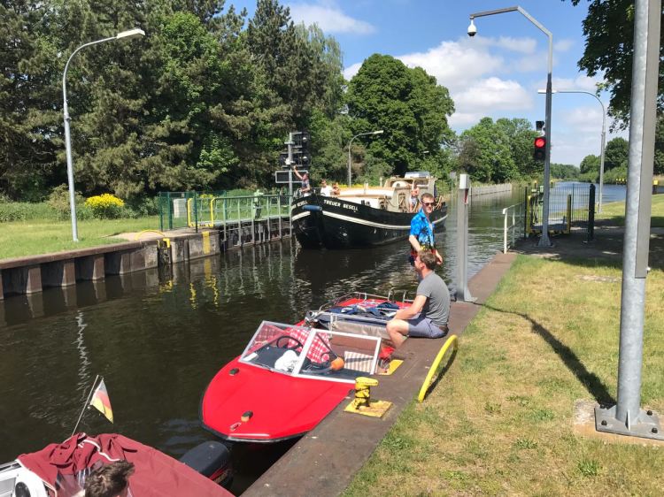 Das war sie also. Die erste Schleusung mit dem Gesellen. Vorsichtshalber hatten wir das Steuer zurück an unseren Fahrschullehrer übergeben. Alles lief unproblematisch.