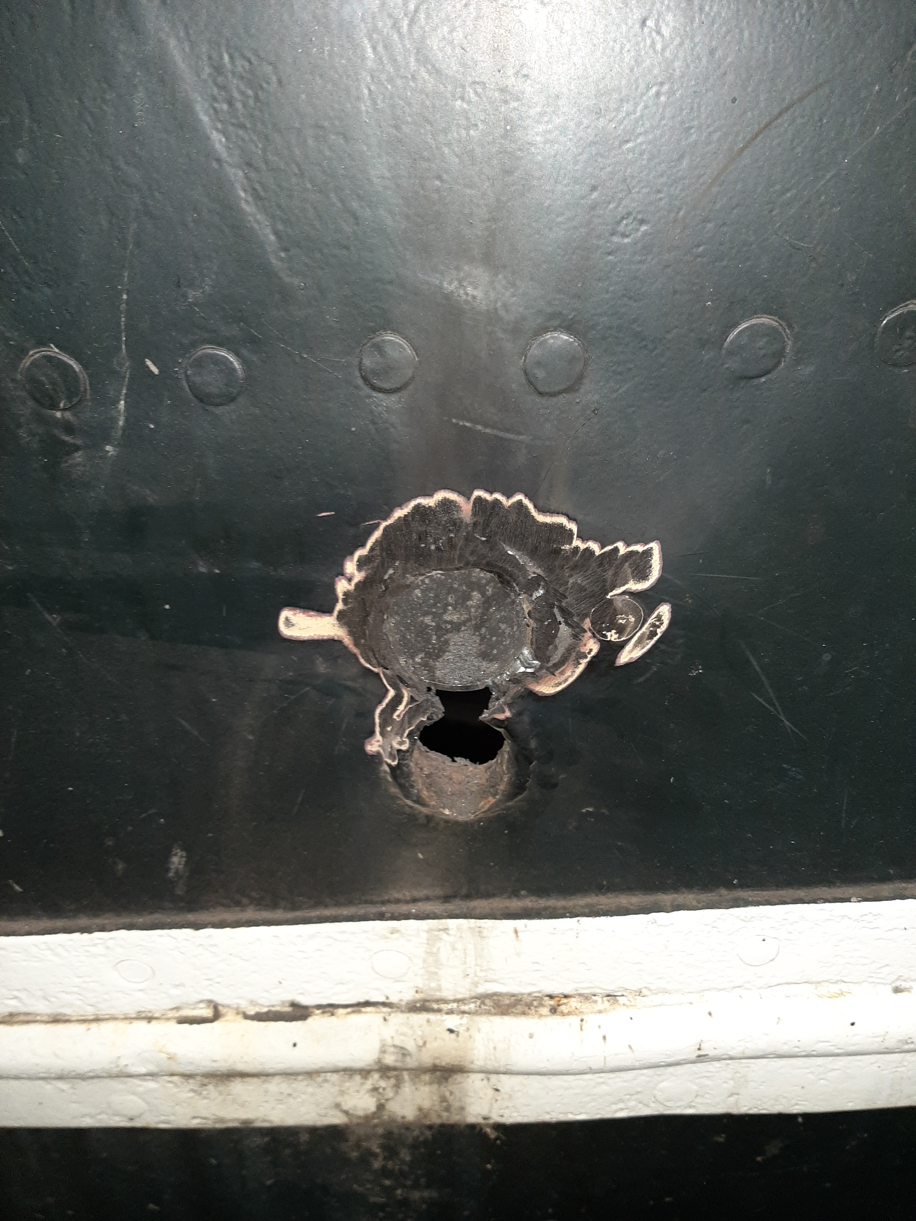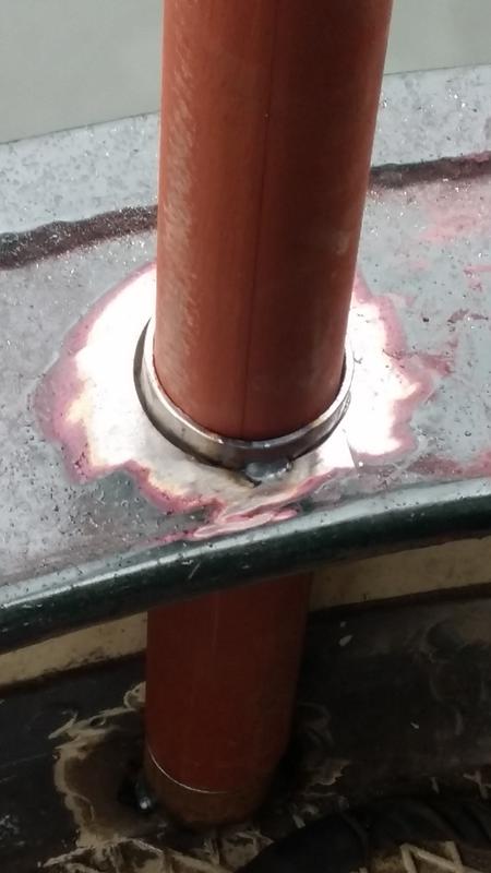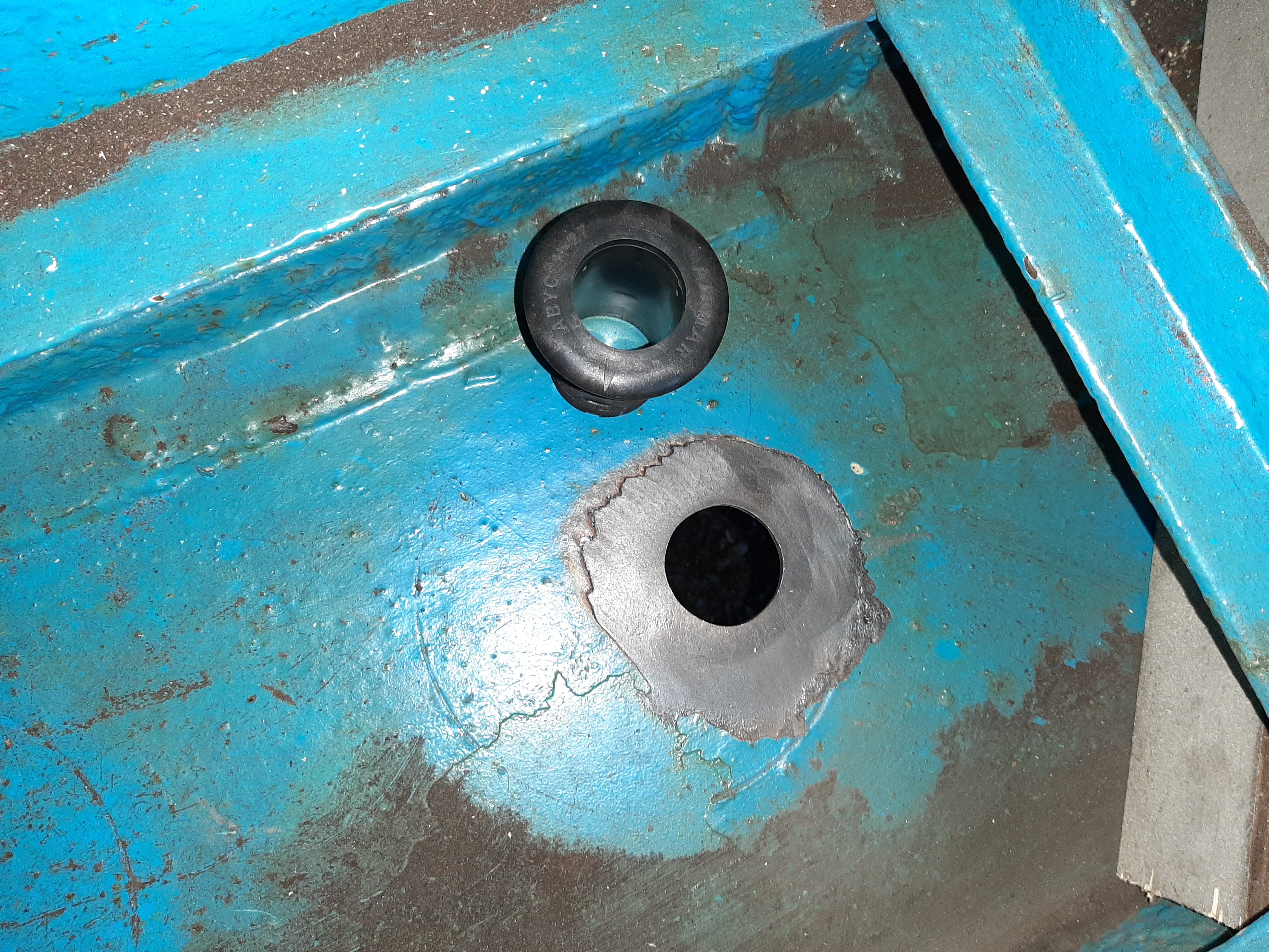 Danach galt es die alten Regenwasserabläufe im Vorschiff zu erneuern. In die alten, durchgerosteten hat irgendeine „Fachkraft“ ganz normale Gummischläuche rein gezwängt und diese mit reichlich Mumpe „dicht“ geschmiert. Das sah nicht nur furchtbar aus, sondern wäre bestimmt irgendwann undicht geworden. Ich habe die alten rausgeplasmat, dann 90° Bögen aus 3mm Stahl eingepasst und eingeschweißt. Die alten Durchlässe wurden dicht geschweißt und „schon“ war die nächste Spalte aus der To-Do-Liste gestrichen.