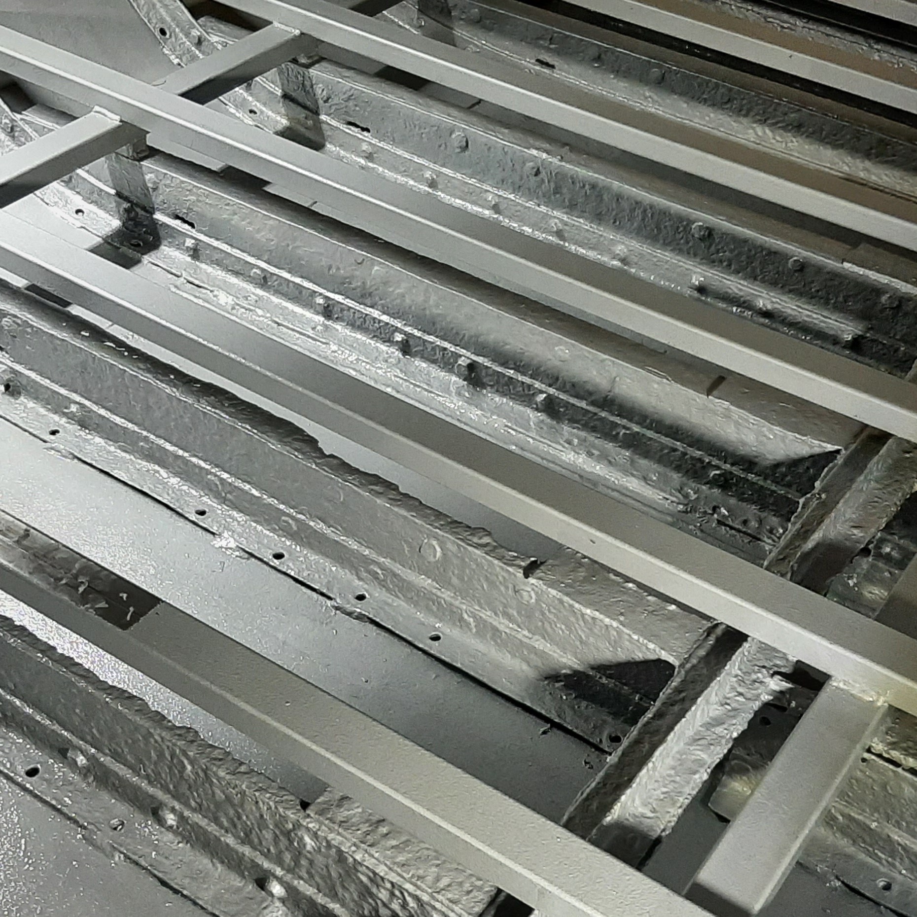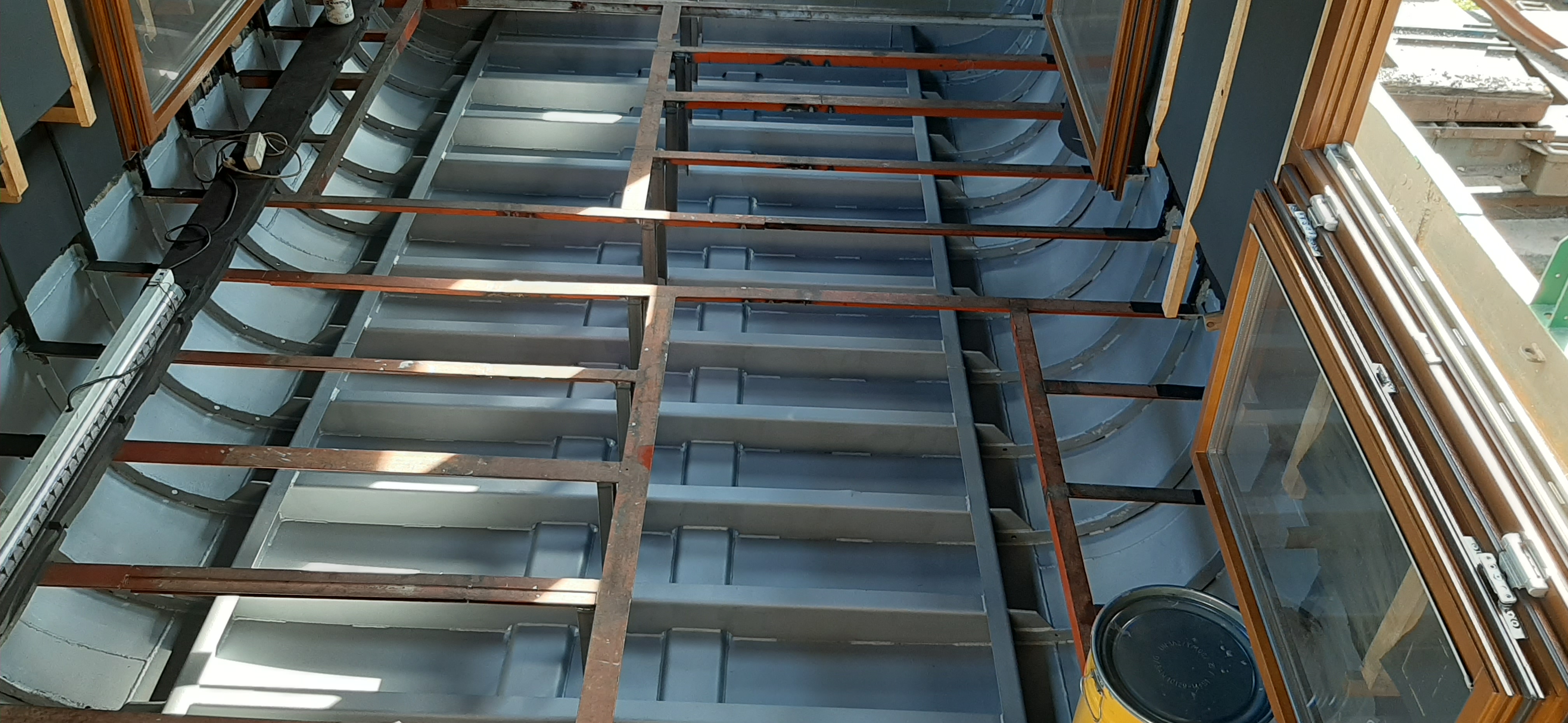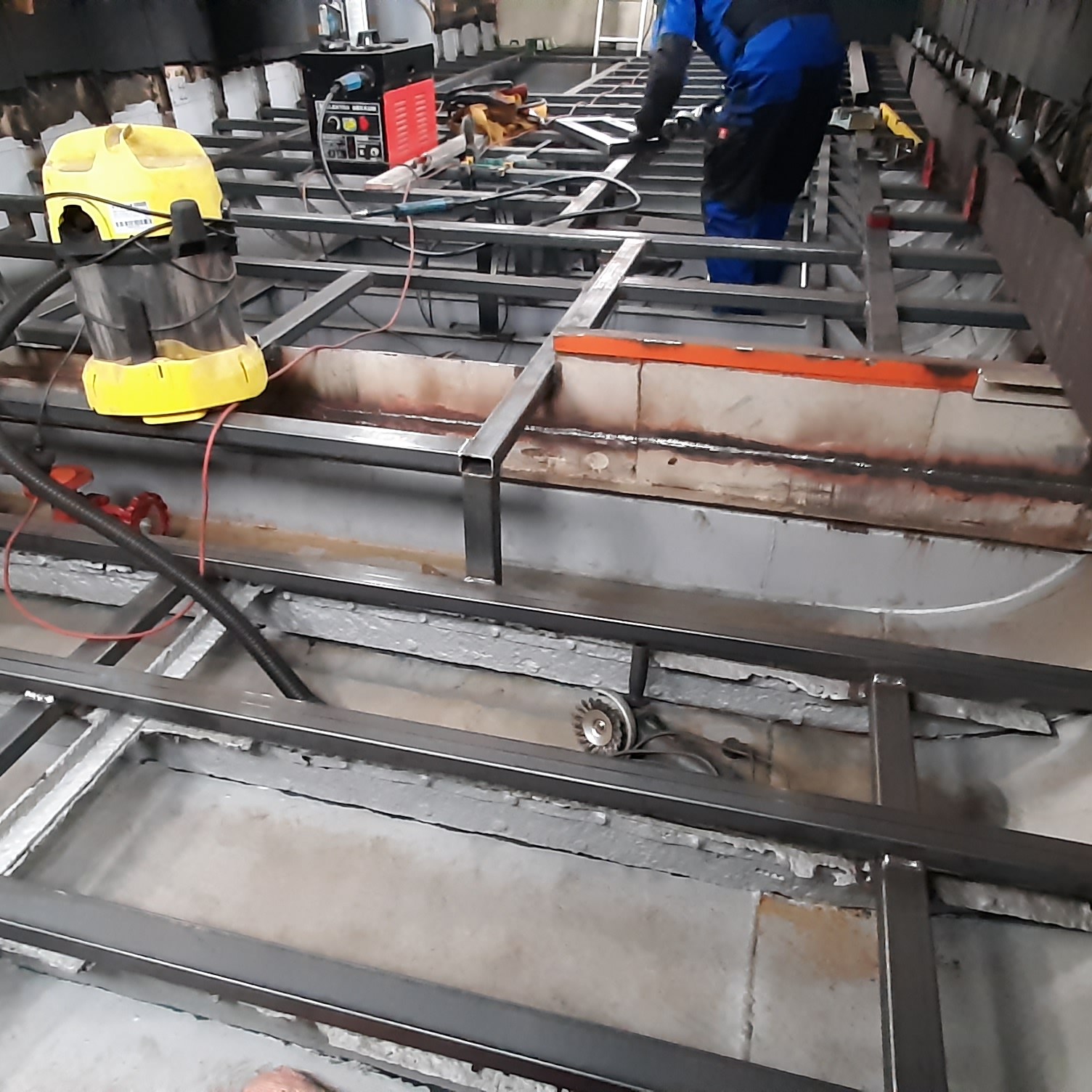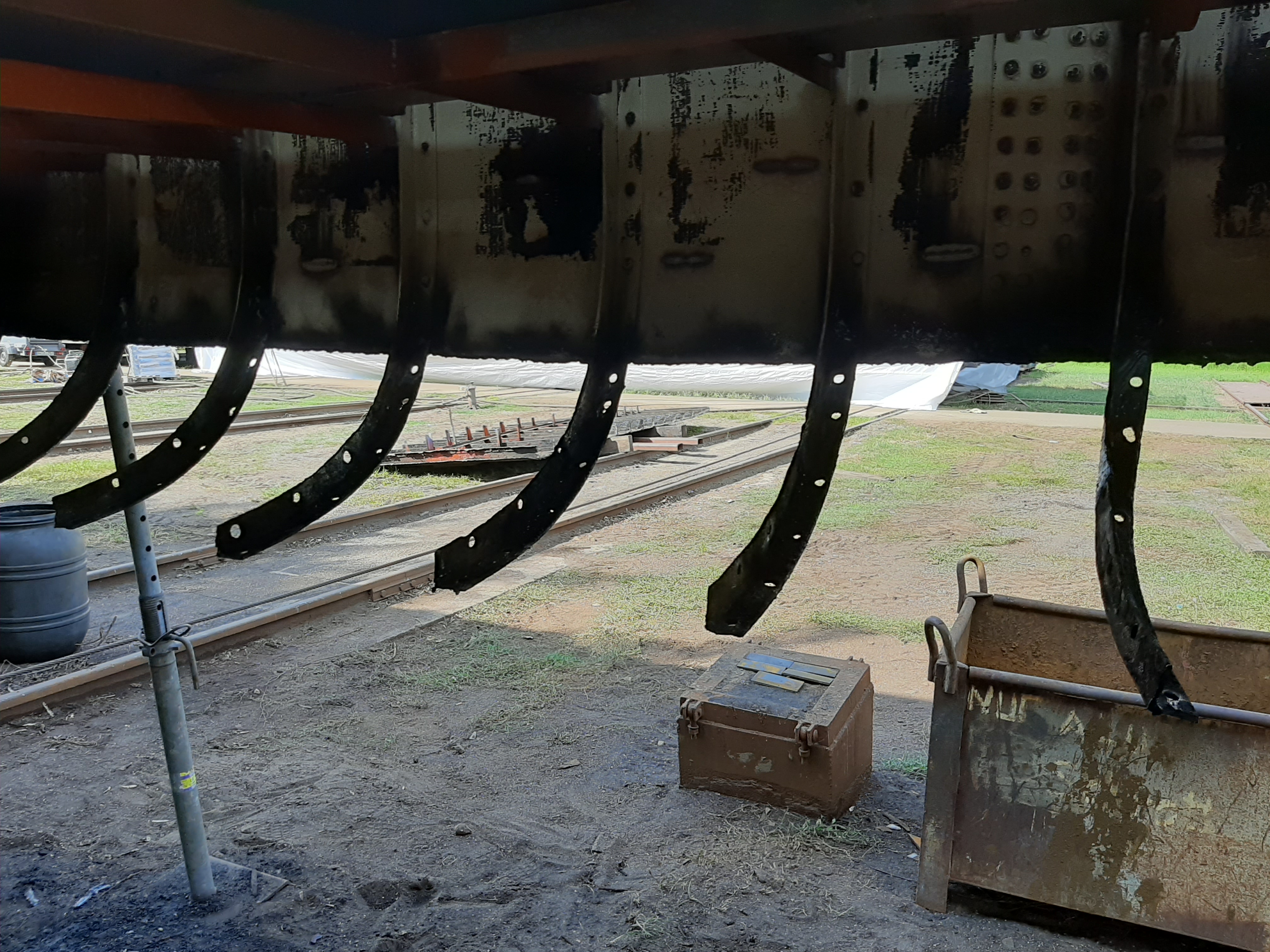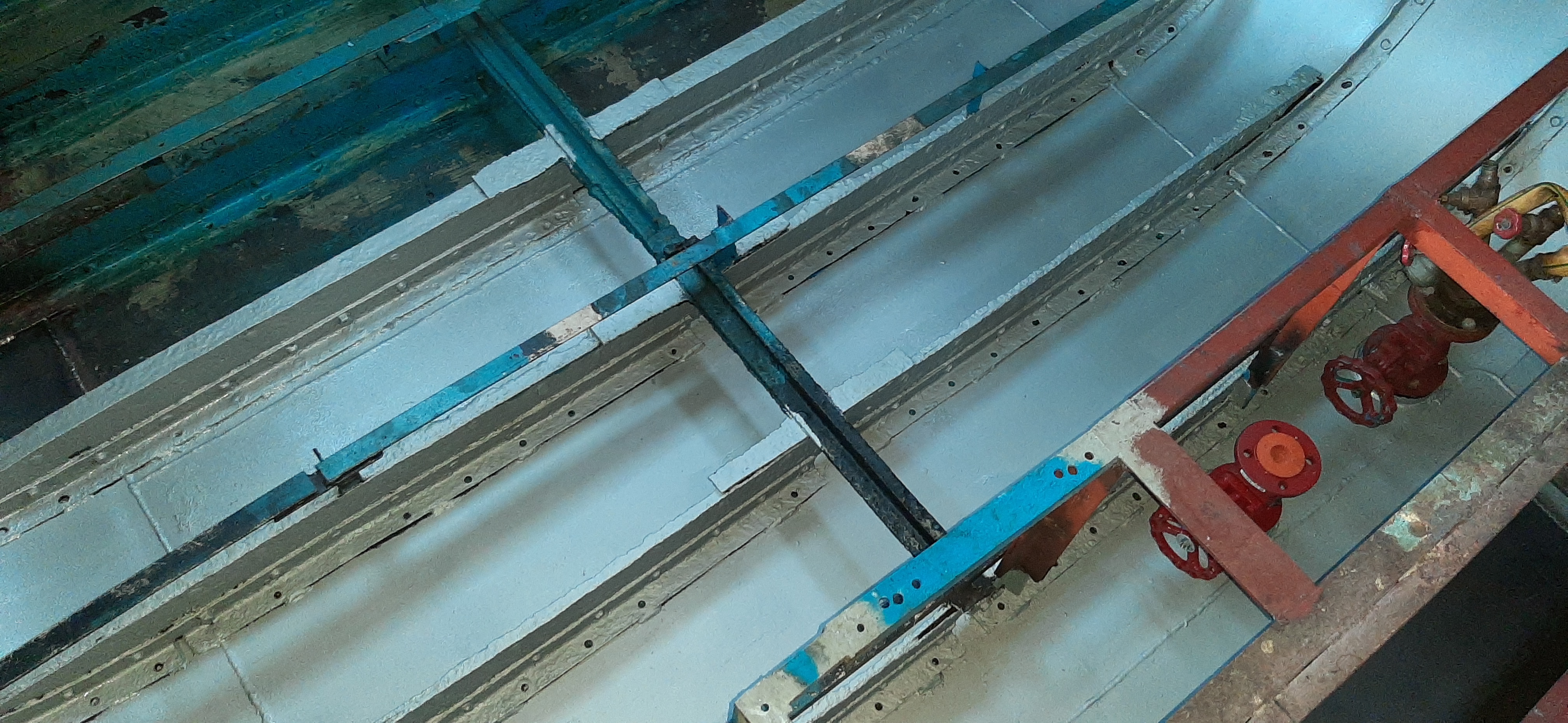 In der Zwischenzeit wurde der neue Boden, mit innen liegender Kühlschlange, gefertigt. Dieser wurde dann an die bestehenden Spanten angeschweißt. Die nun noch offenen Rundungen des Unterwasserschiffs wurden anschließend mit der Bordwand verbunden.