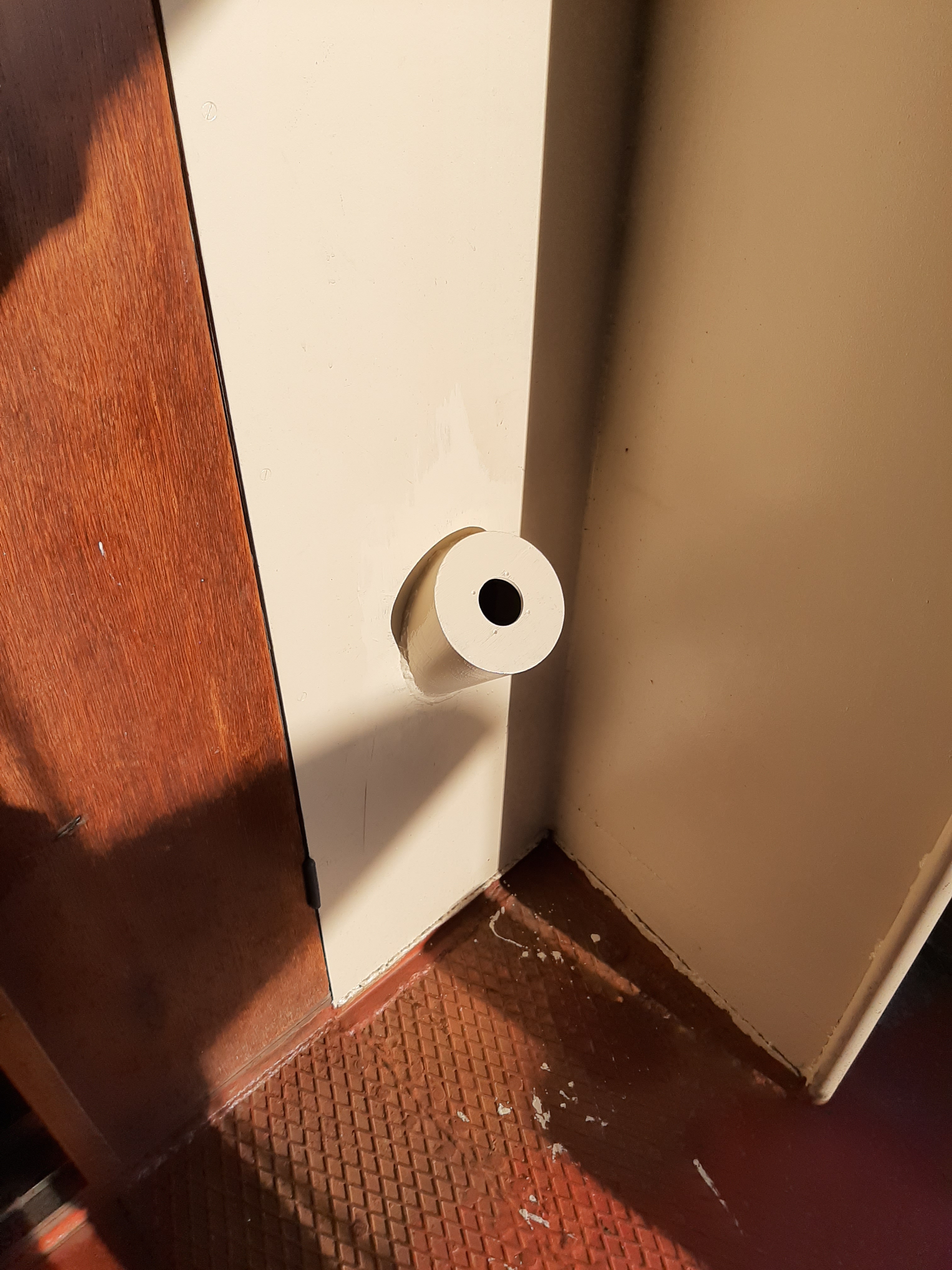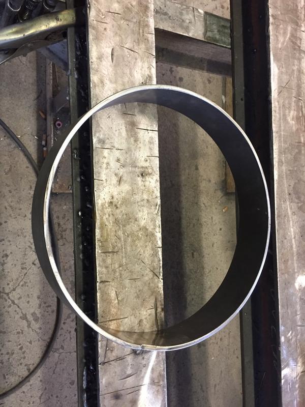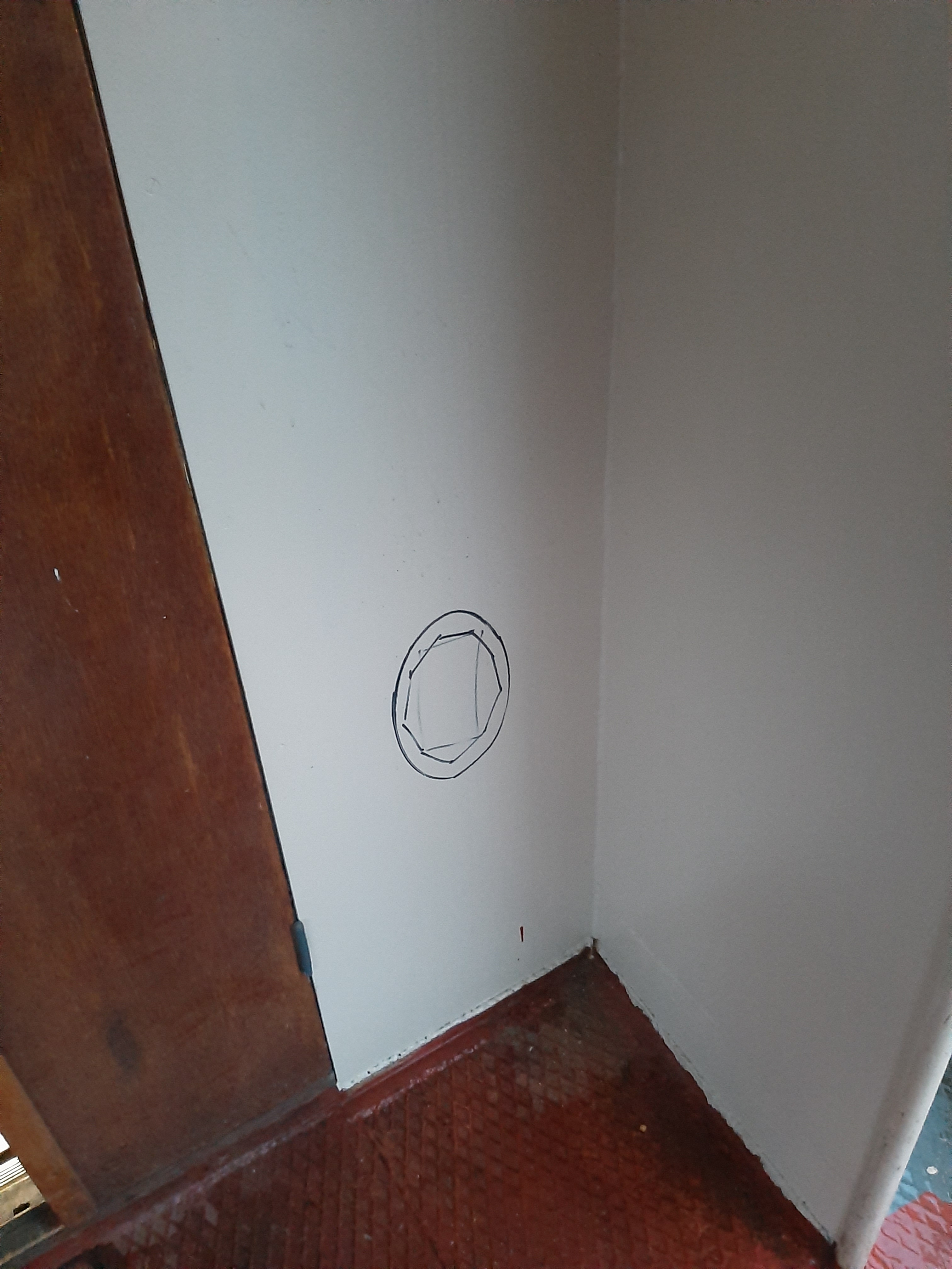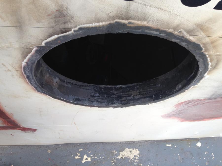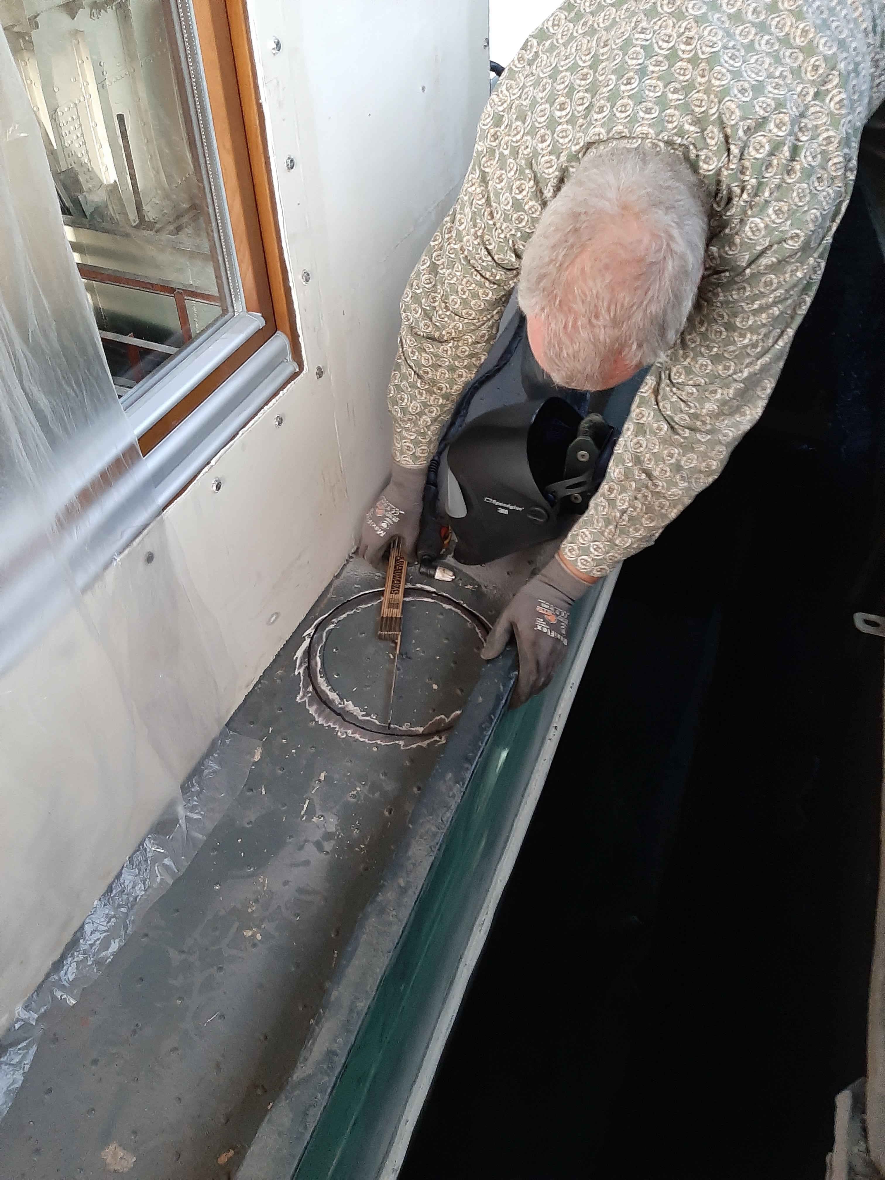Dann war da noch das Bullauge. Das Bullauge habe ich ganz zu Beginn der Restauration gekauft und wollte es schon lange einbauen. Das Problem: Es gab keinen Flansch um es an die Außenwand zu montieren. Der Flansch ermöglicht, dass das Bullauge mit genügend Abstand zu Außenwand eingebaut werden kann, sodass wir eine Dämmung anbringen können. Für den Flansch habe ich das komplette Internet abgesucht, aber im Endeffekt war wieder selbstbauen angesagt. Ein Freund hatte noch ein Stück Metallrohr von einem Stegbau liegen. Leider im falschen Durchmesser. Deswegen wurde das Rohr aufgetrennt ein Stück eingeschweißt und alles möglichst rund gedängelt. Den Kragen haben dann mein Vater und ich angeschweißt. Nachdem der Flansch fertig war, wurde er mit der Außenwand verschweißt. Das alte, viel zu kleine Bullauge wurde abmontiert und das Loch verschlossen.