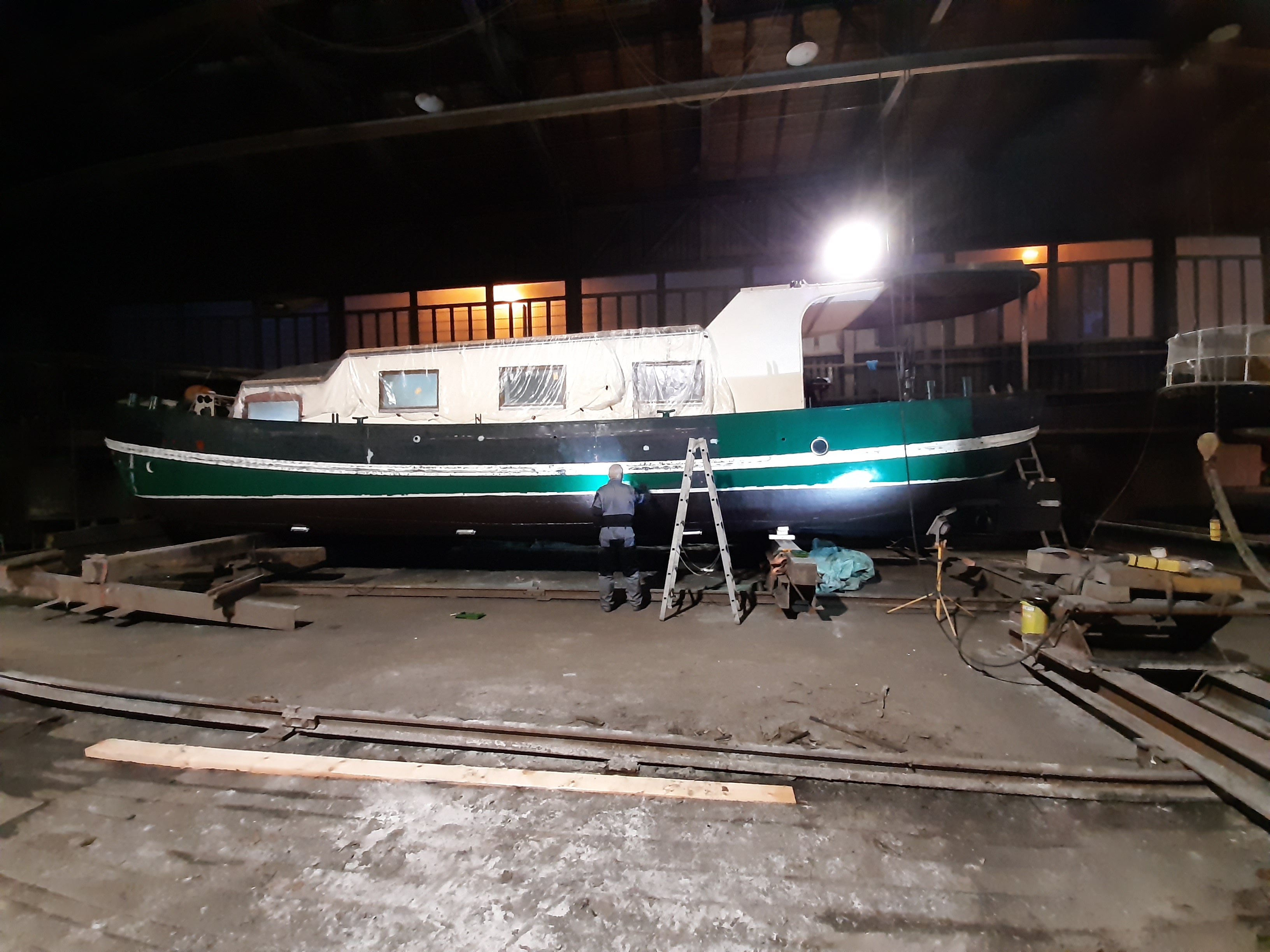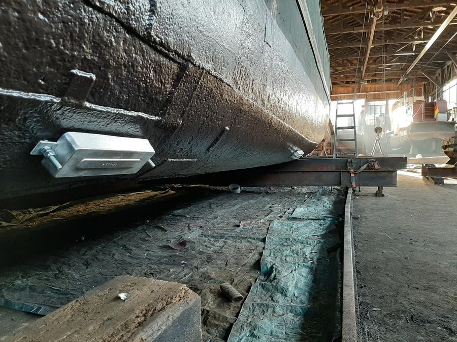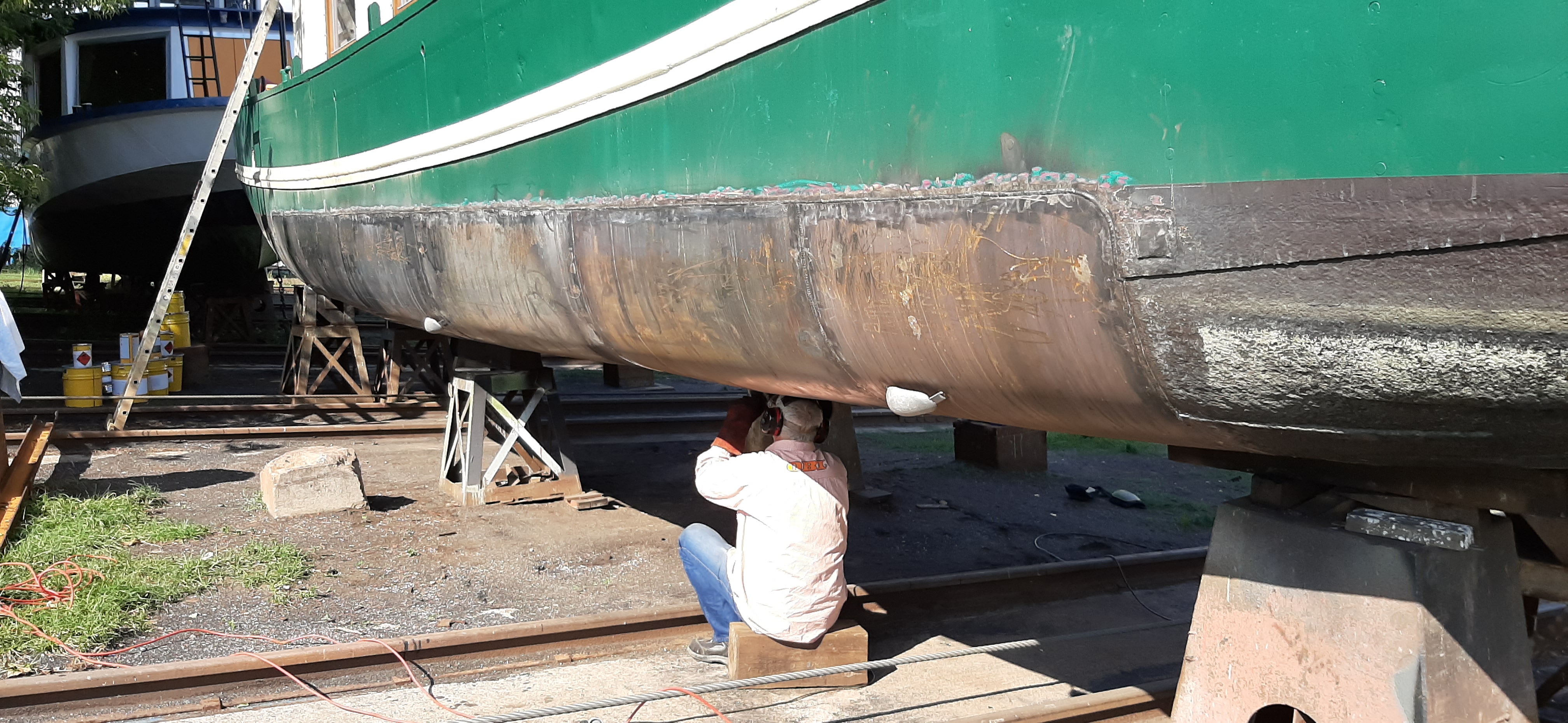 Nachdem wir in einer anderen Werft einen Gutachter zu Gast hatten und der nach knapp 5 Messungen meinte, das habe alles keinen Sinn, rutschte mir das Herz in die Hose. Alles umsonst? All die Arbeit, all die Zeit? Auf die Frage was man machen könne gab es nur eine Antwort: der Rumpf muss neu! Zum Aufdoppeln wäre nicht genügend Material vorhanden und gerade die Innenverbände könnten das nicht tragen. Mutig ließen wir uns erst mal ein Angebot geben um das dann direkt abzulehnen. Das war ’ne Nummer zu krass. Wir überlegten hin und her, strichen hier und da was am Angebot und handelten einen anderen Deal aus. Nach knapp einem Monat an Land und weiteren Besichtigungen wurde der Auftrag unterzeichnet und die wohl größte Baustelle am Treuen Gesellen in Angriff genommen.