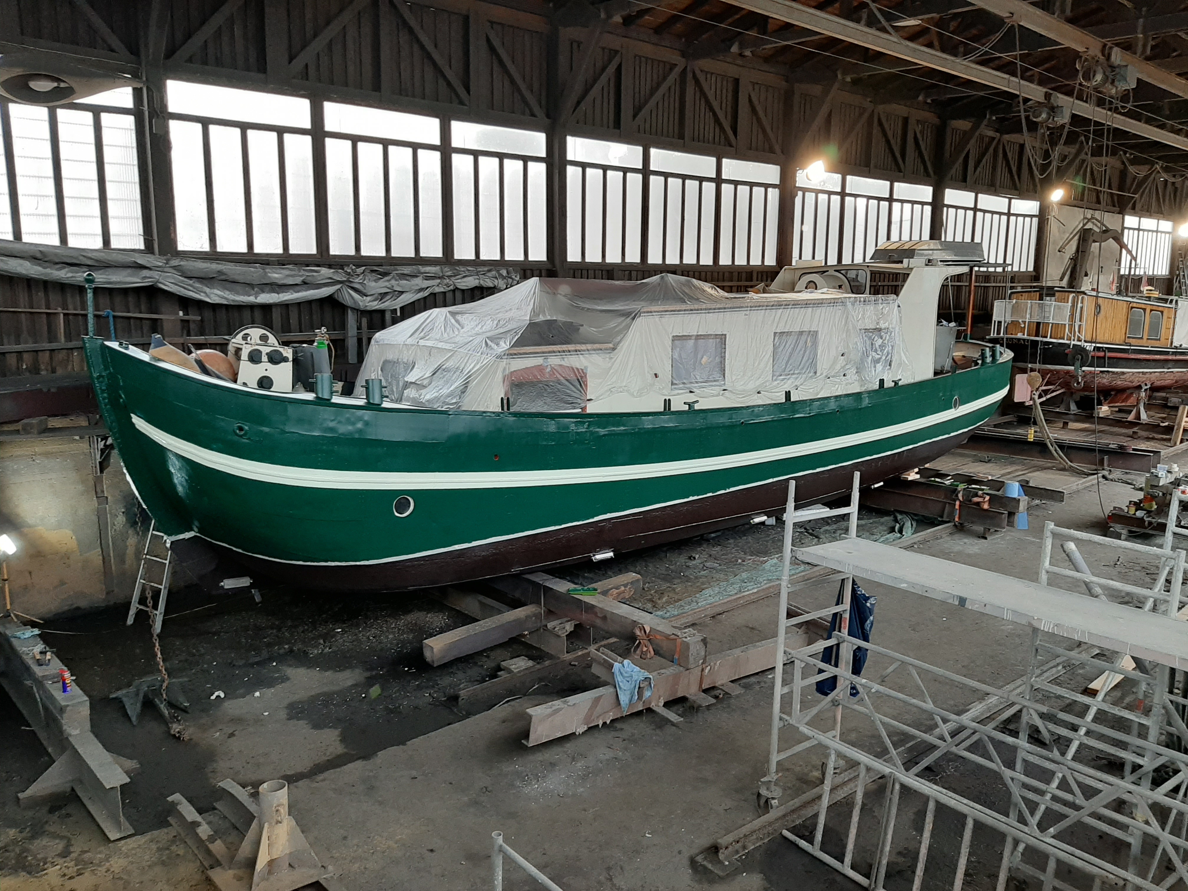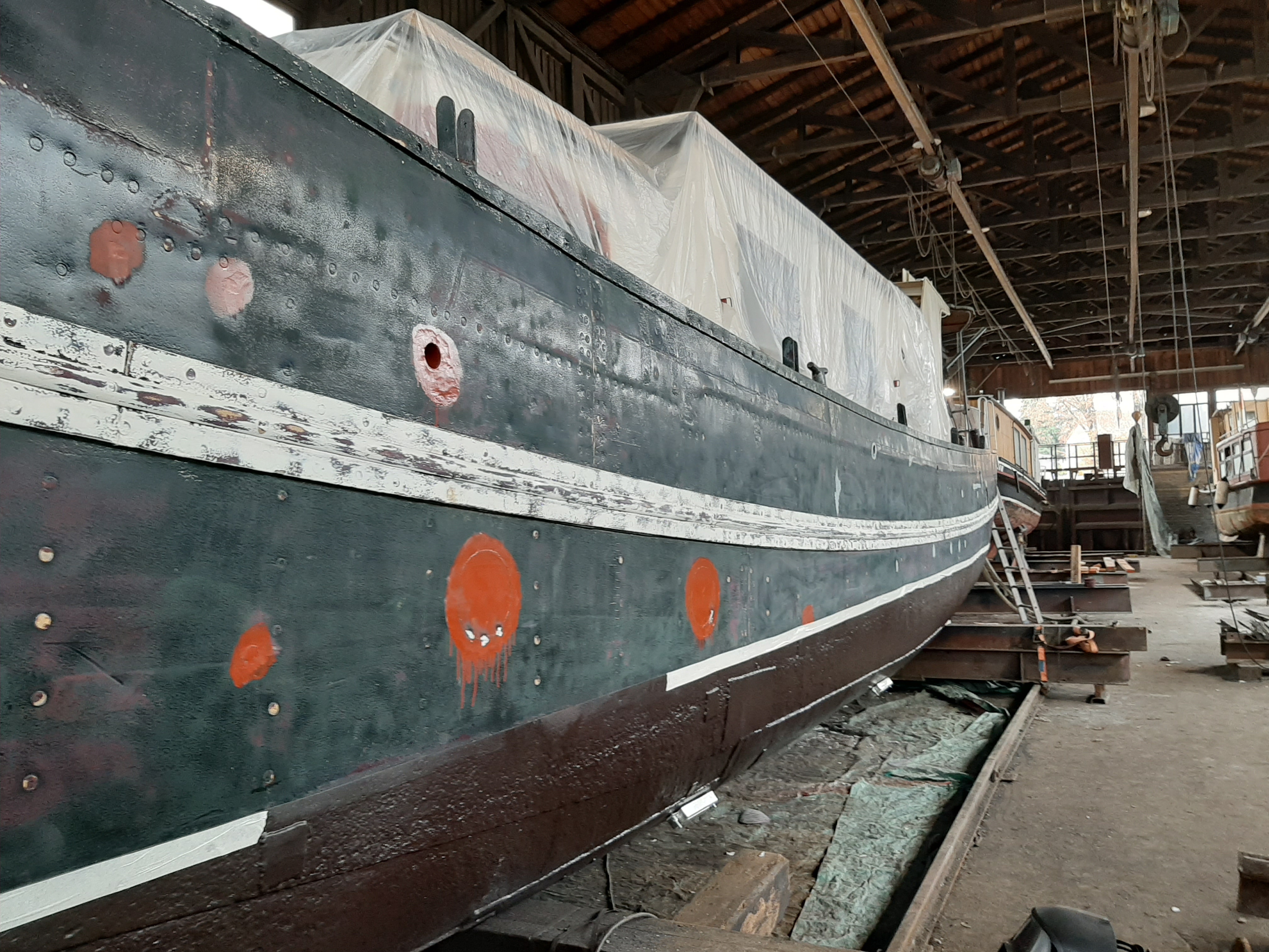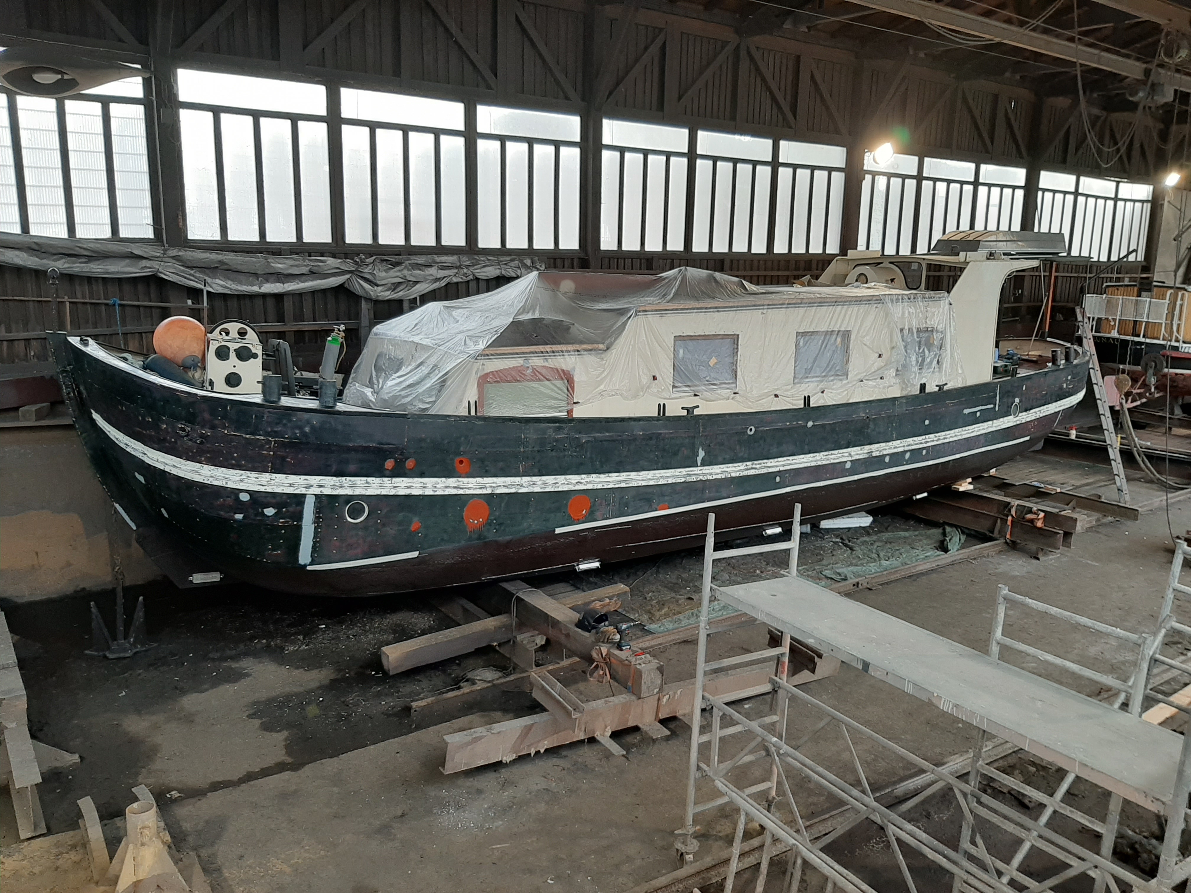 Nachdem wir in einer anderen Werft einen Gutachter zu Gast hatten und der nach knapp 5 Messungen meinte, das habe alles keinen Sinn, rutschte mir das Herz in die Hose. Alles umsonst? All die Arbeit, all die Zeit? Auf die Frage was man machen könne gab es nur eine Antwort: der Rumpf muss neu! Zum Aufdoppeln wäre nicht genügend Material vorhanden und gerade die Innenverbände könnten das nicht tragen. Mutig ließen wir uns erst mal ein Angebot geben um das dann direkt abzulehnen. Das war ’ne Nummer zu krass. Wir überlegten hin und her, strichen hier und da was am Angebot und handelten einen anderen Deal aus. Nach knapp einem Monat an Land und weiteren Besichtigungen wurde der Auftrag unterzeichnet und die wohl größte Baustelle am Treuen Gesellen in Angriff genommen.