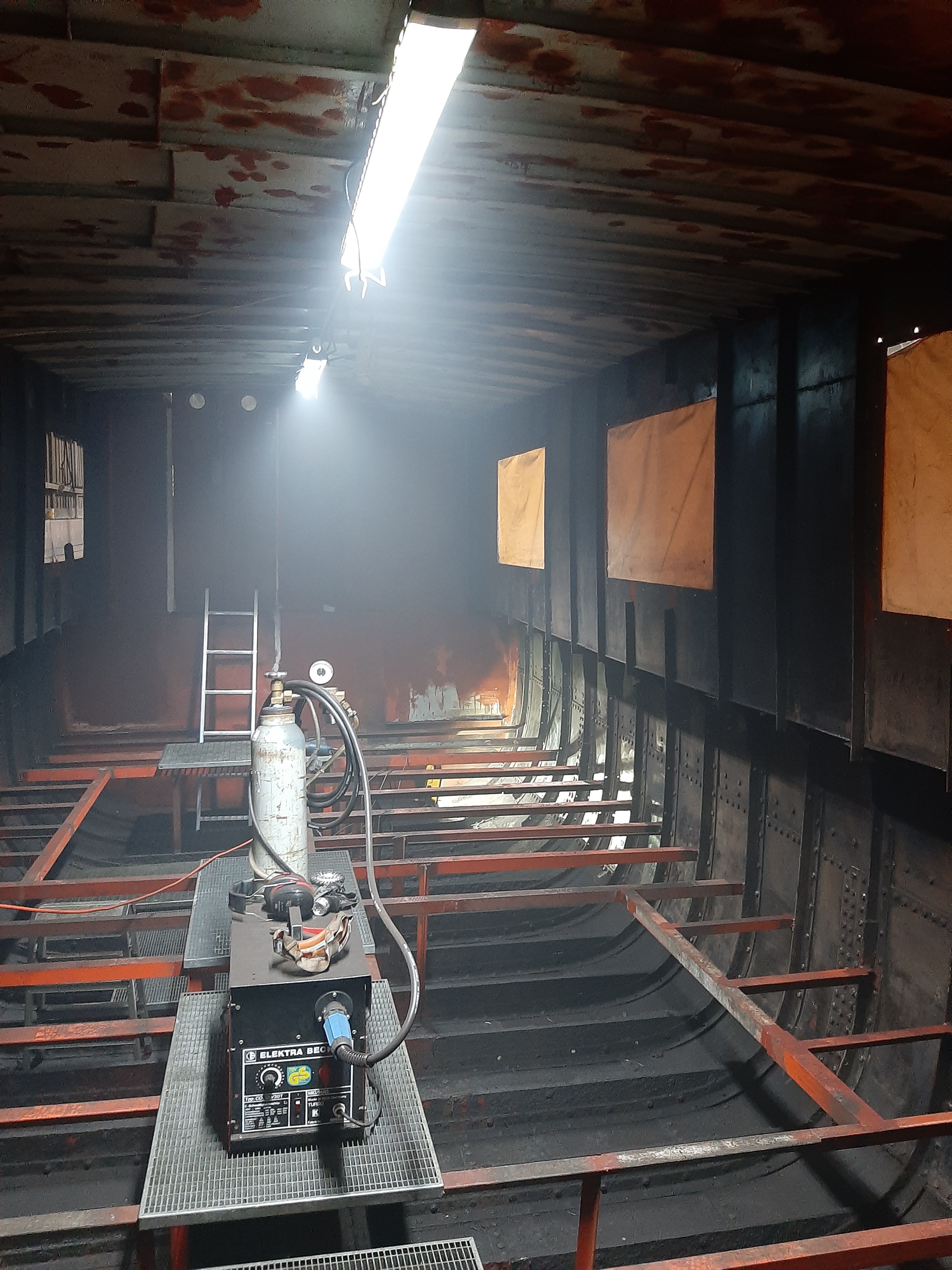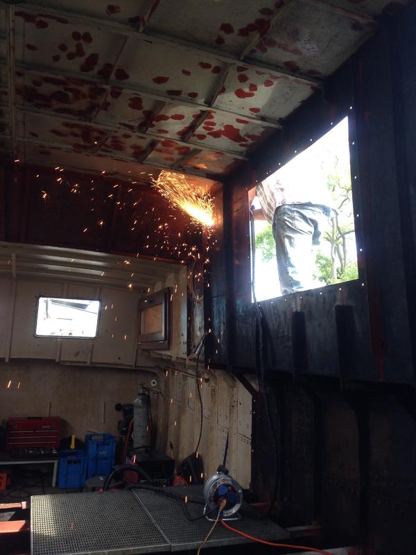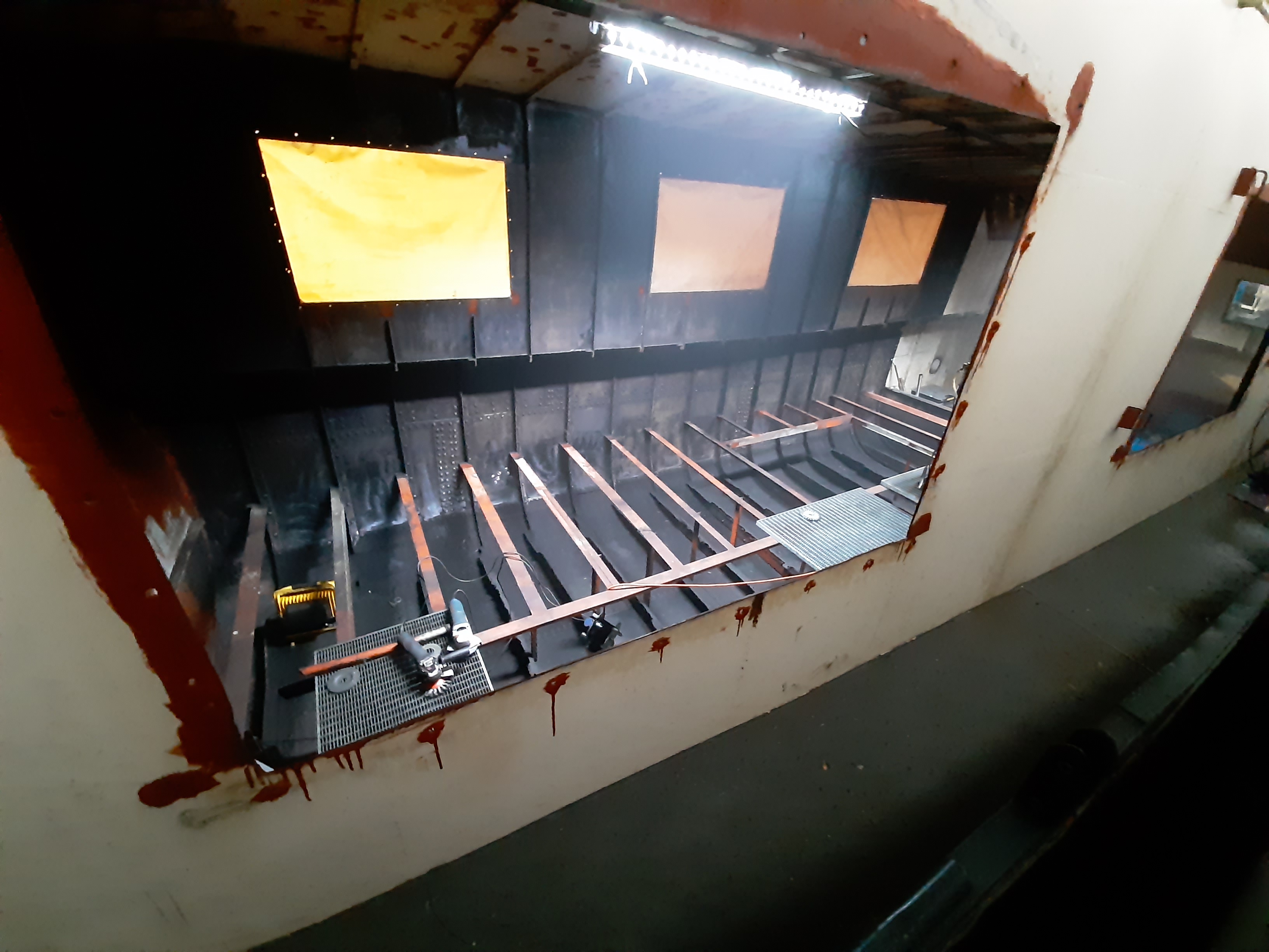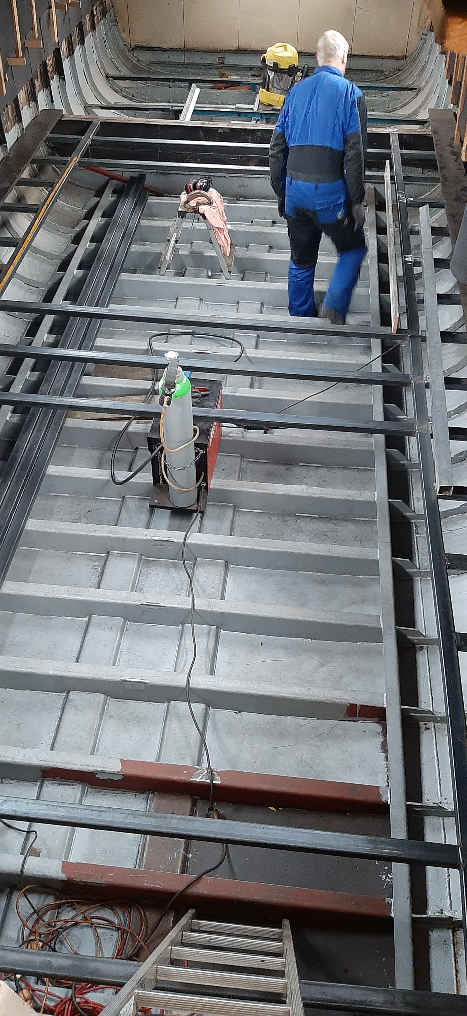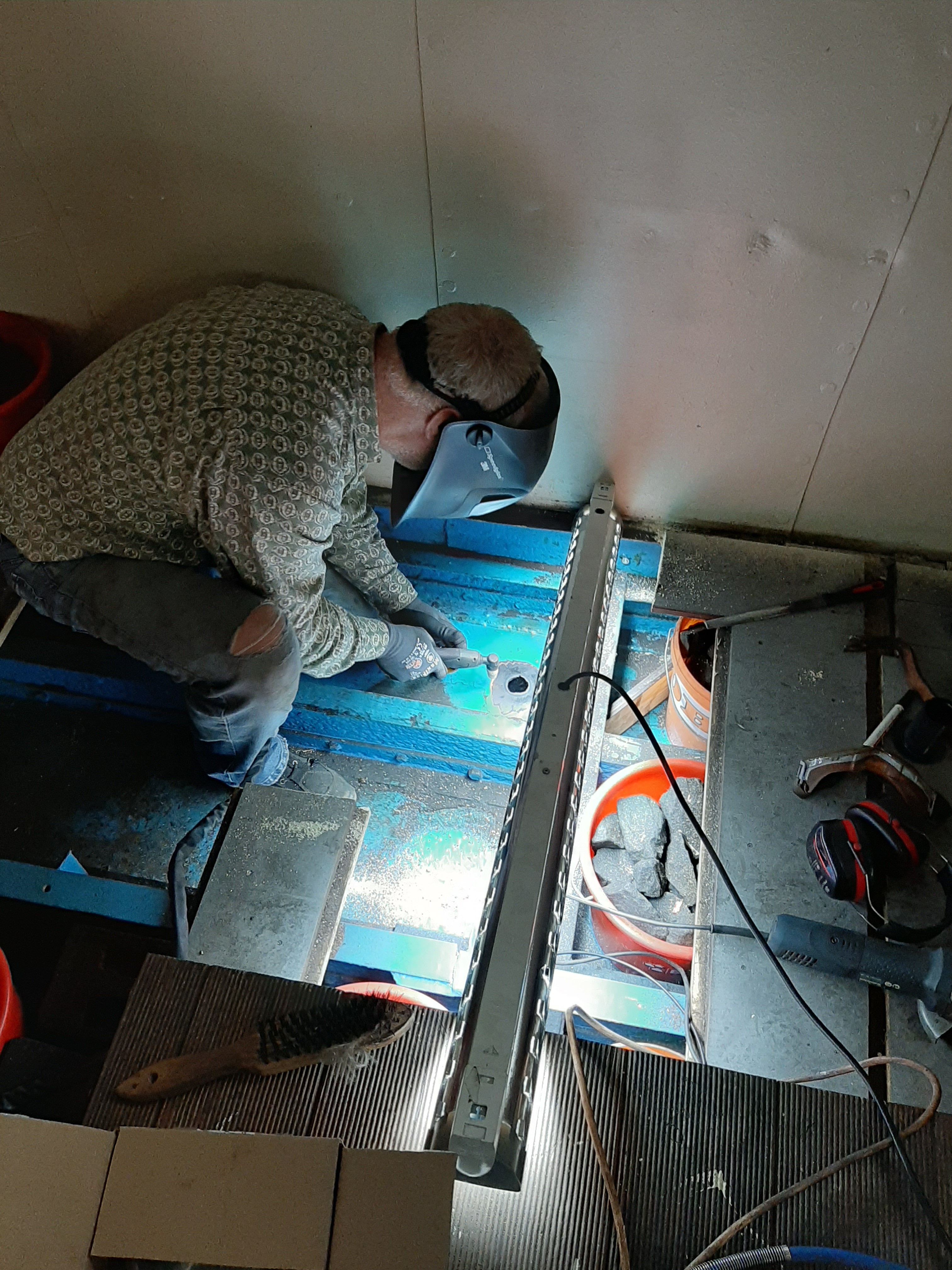 Besonders schwierig war es, die heraus getrennte Schottwand wieder gerade einzuschweißen. Vielleicht wäre es hier einfacher gewesen, ebenfalls ein neues Blech zu verwenden. Wir sind aber zufrieden mit dem Ergebnis.