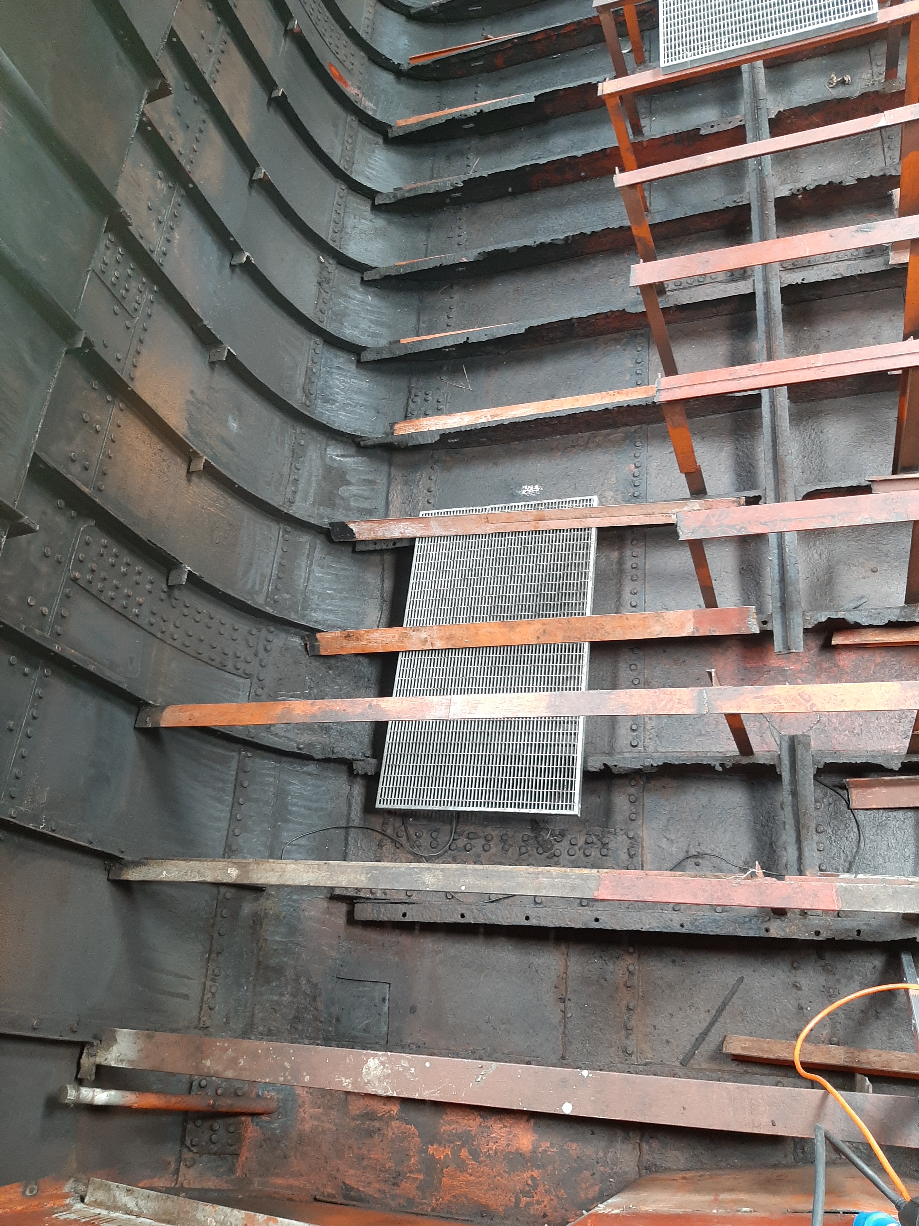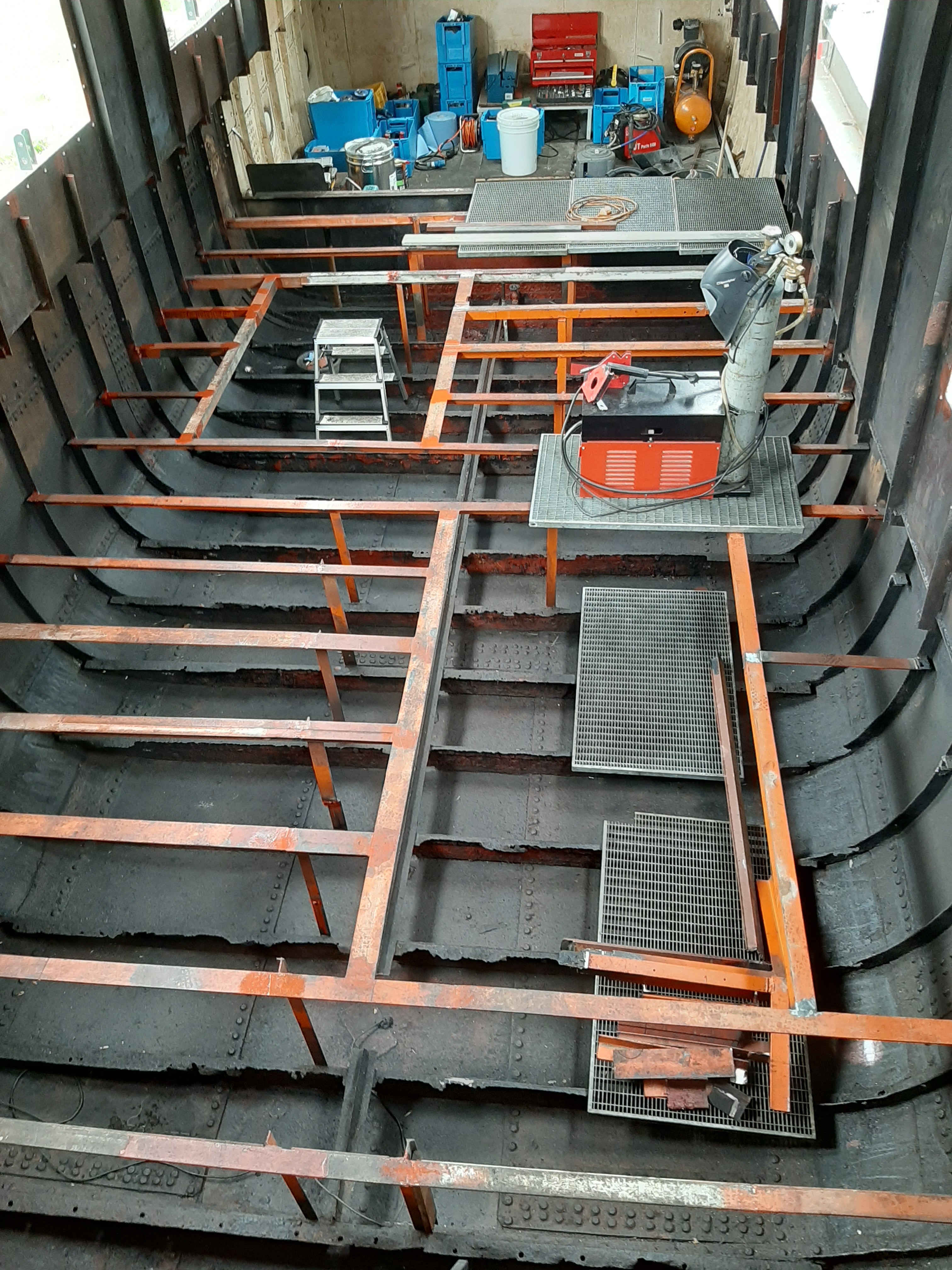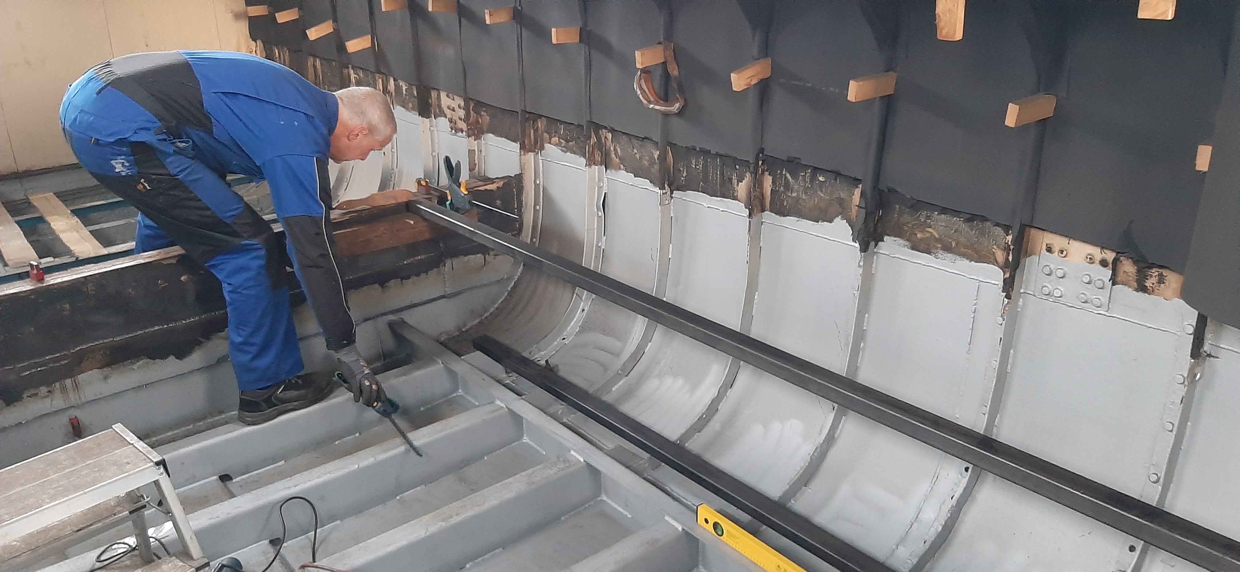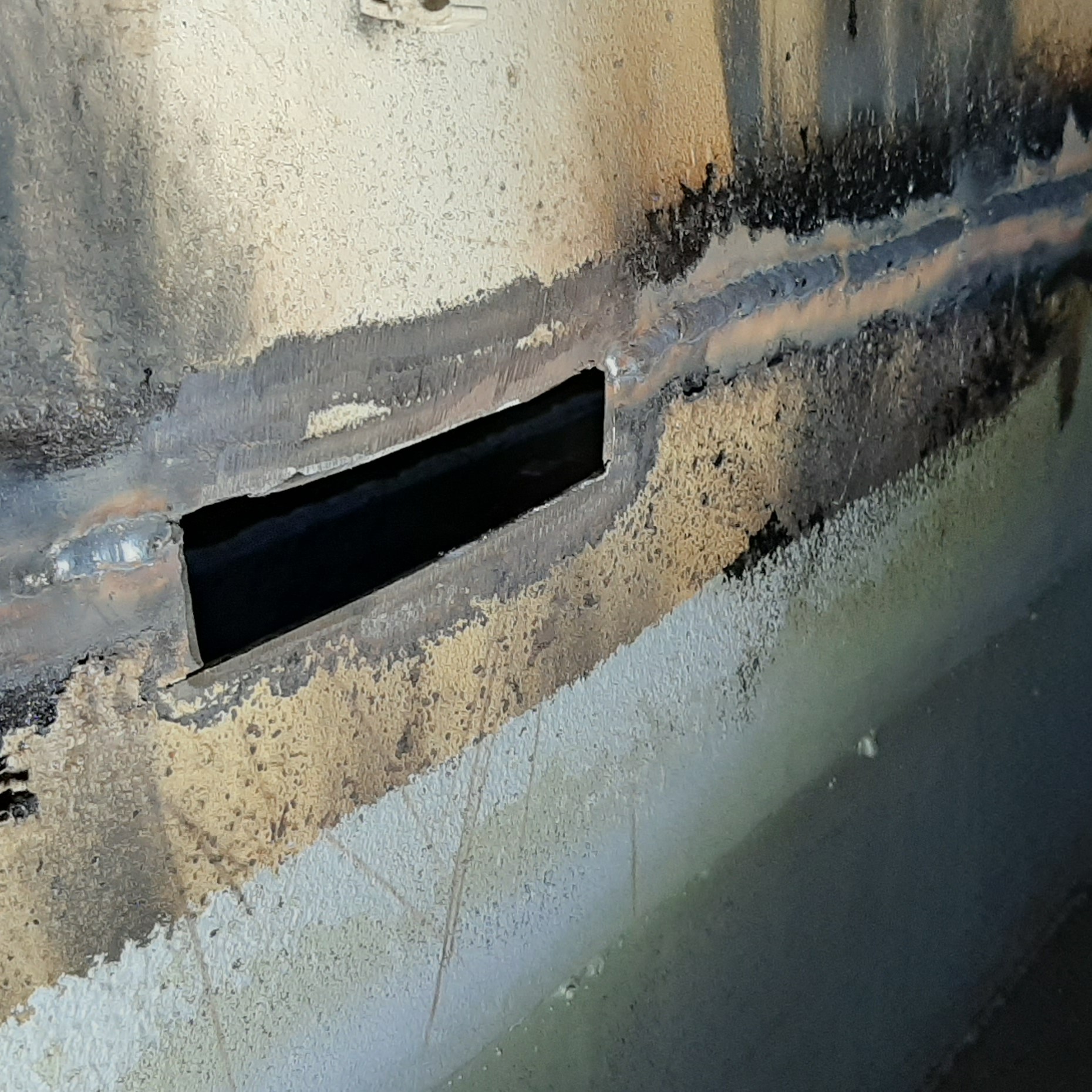 Besonders schwierig war es, die heraus getrennte Schottwand wieder gerade einzuschweißen. Vielleicht wäre es hier einfacher gewesen, ebenfalls ein neues Blech zu verwenden. Wir sind aber zufrieden mit dem Ergebnis.