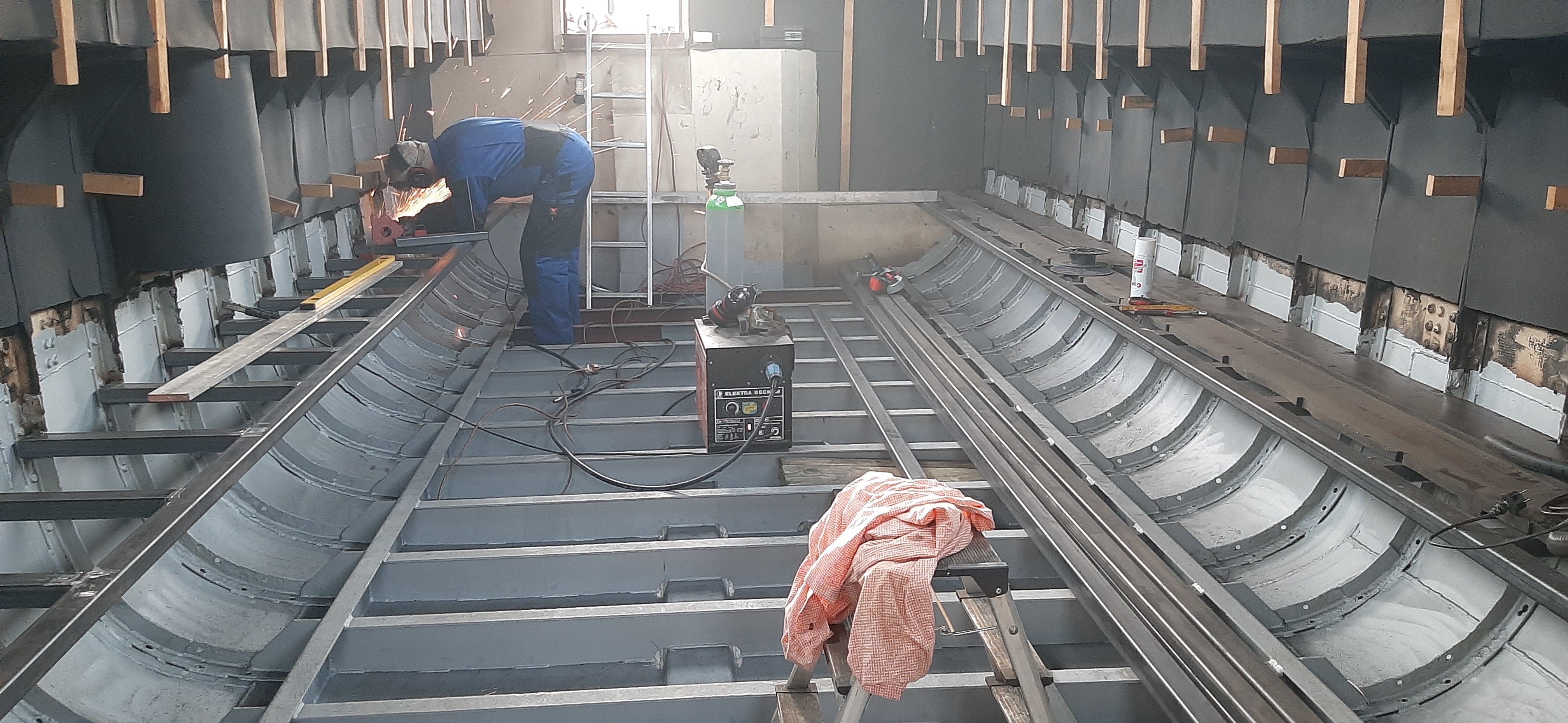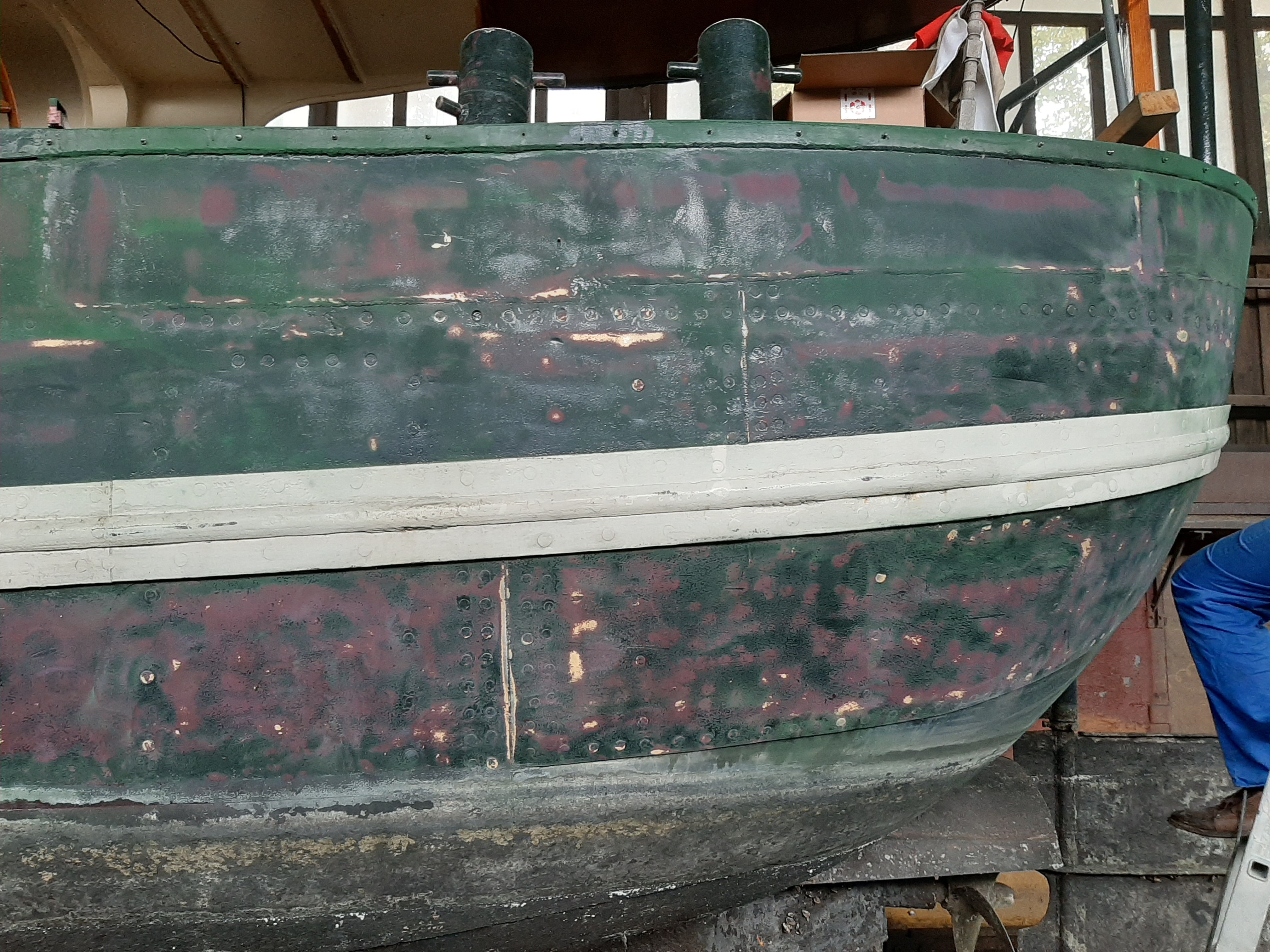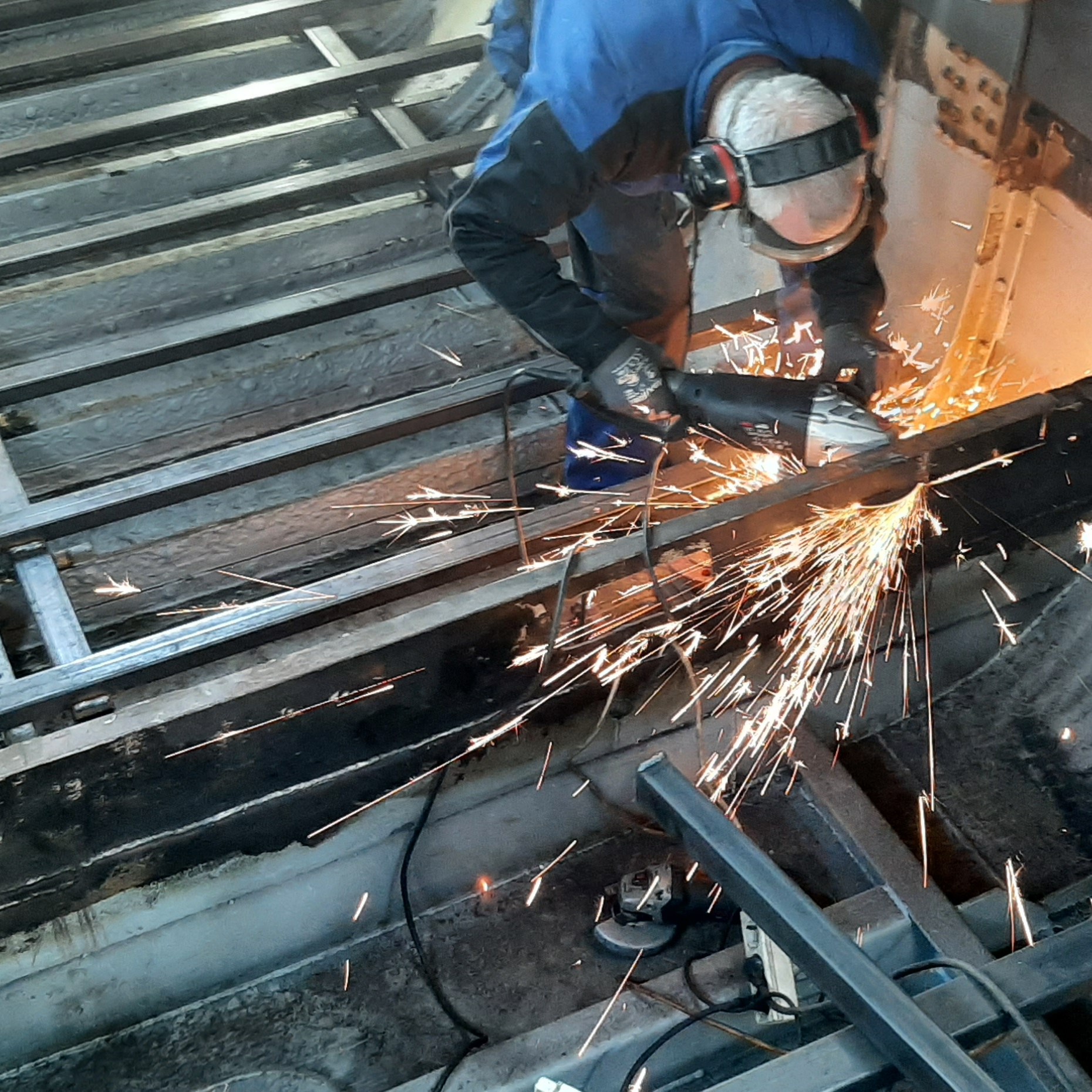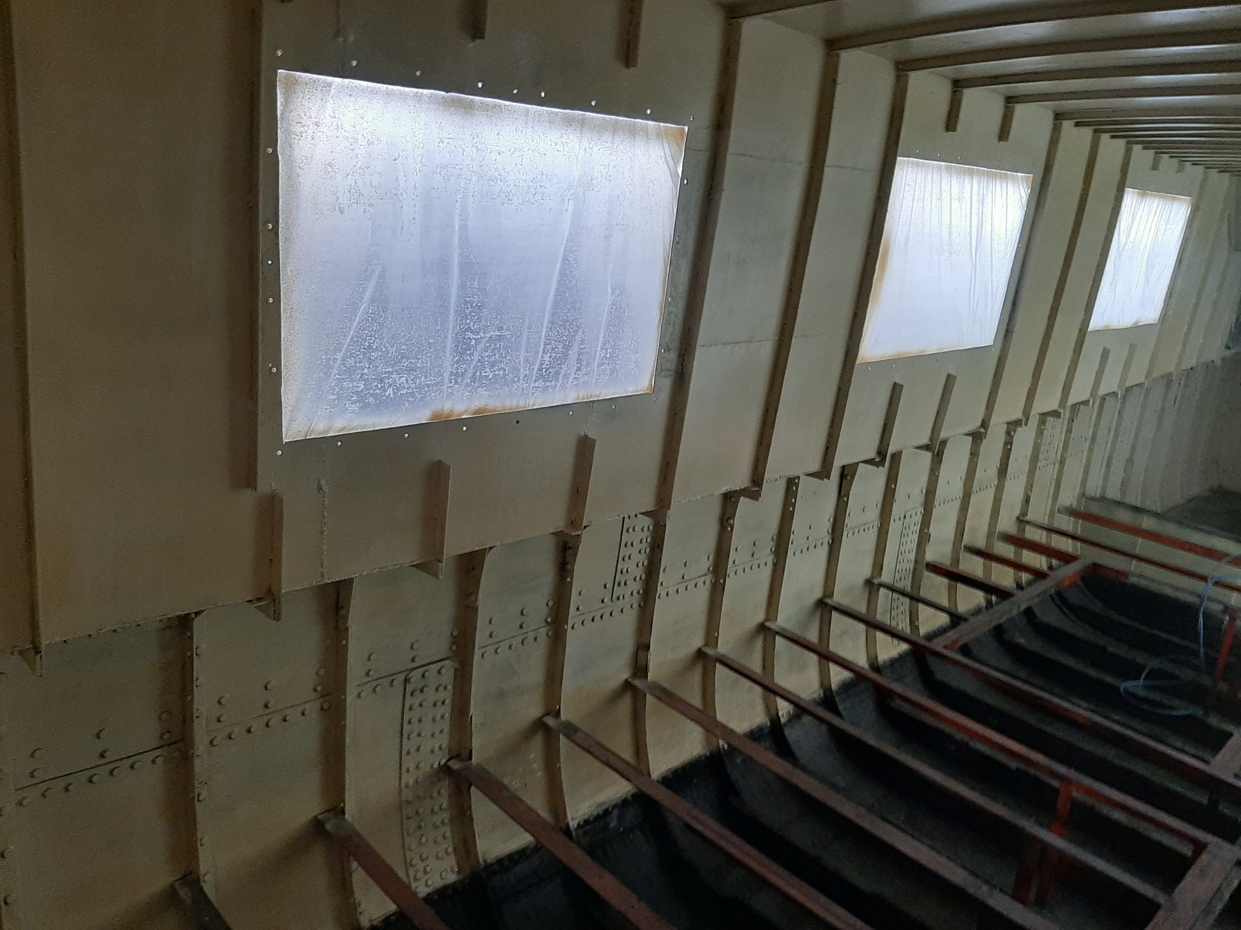 Besonders schwierig war es, die heraus getrennte Schottwand wieder gerade einzuschweißen. Vielleicht wäre es hier einfacher gewesen, ebenfalls ein neues Blech zu verwenden. Wir sind aber zufrieden mit dem Ergebnis.