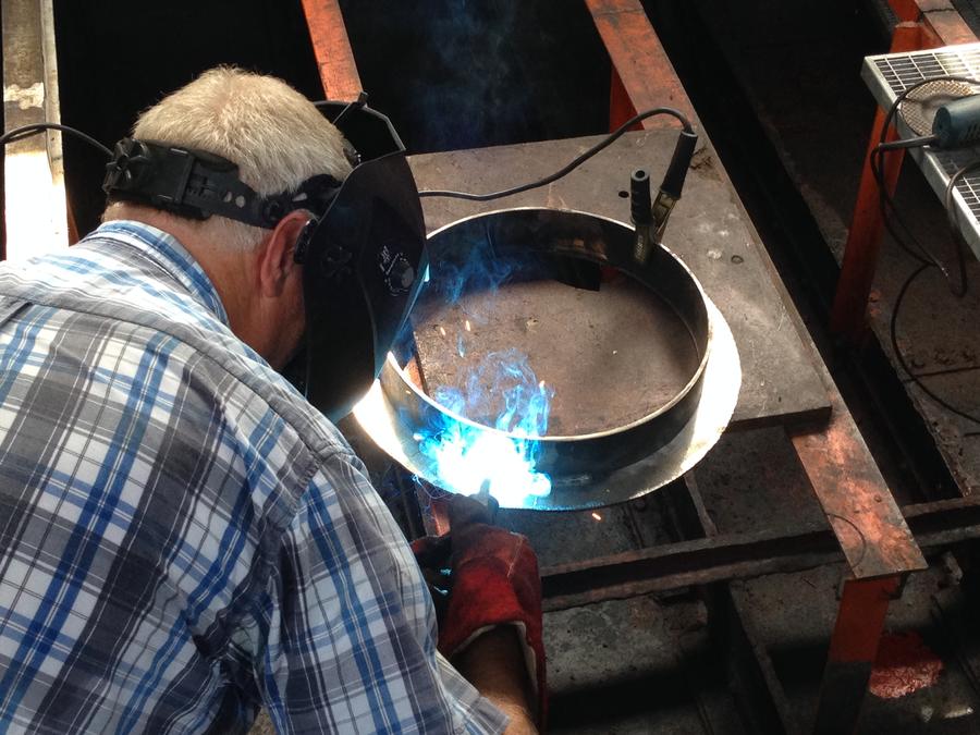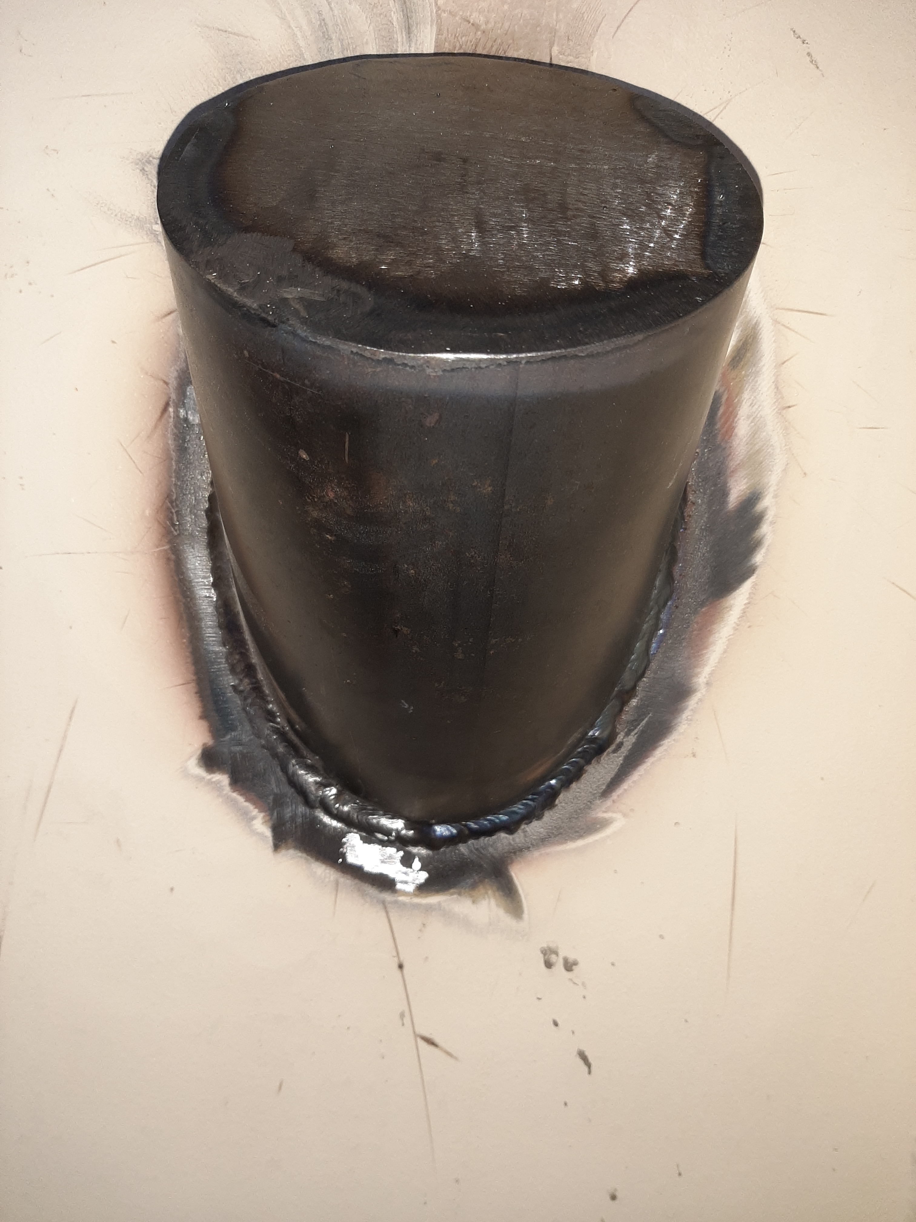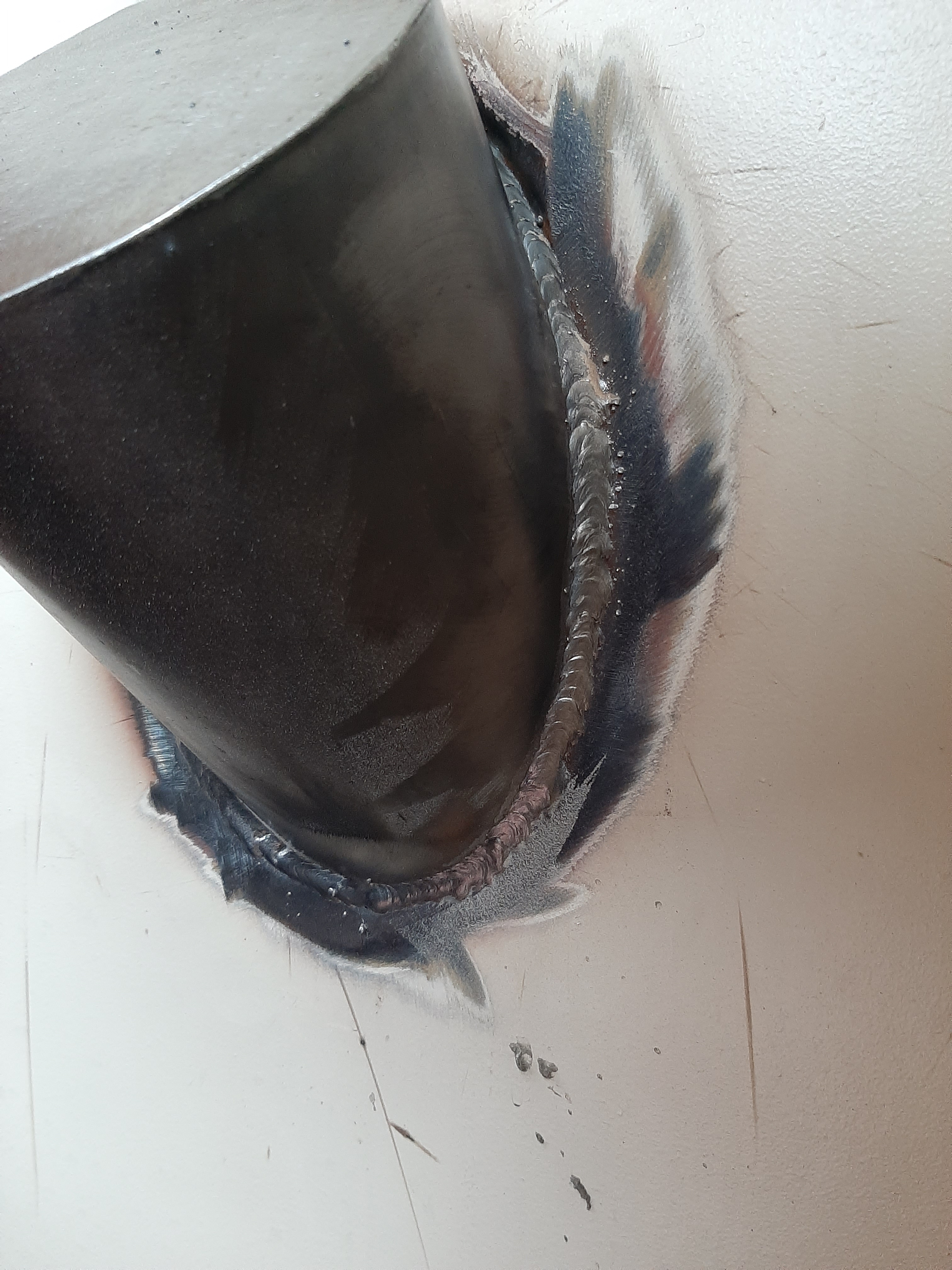 Was für ein Wort. Und eigentlich recht unspektakulär. Wir wollten den Einfüllstutzen für den Wassertank so installieren, dass er möglichst wenig nach Innen aufträgt. Das hätte wieder einen Mehraufwand bei der Innenverkleidung bedeutet. Also haben wir uns einen Flansch gebaut und diesen an die Außenhaut angeschweißt.