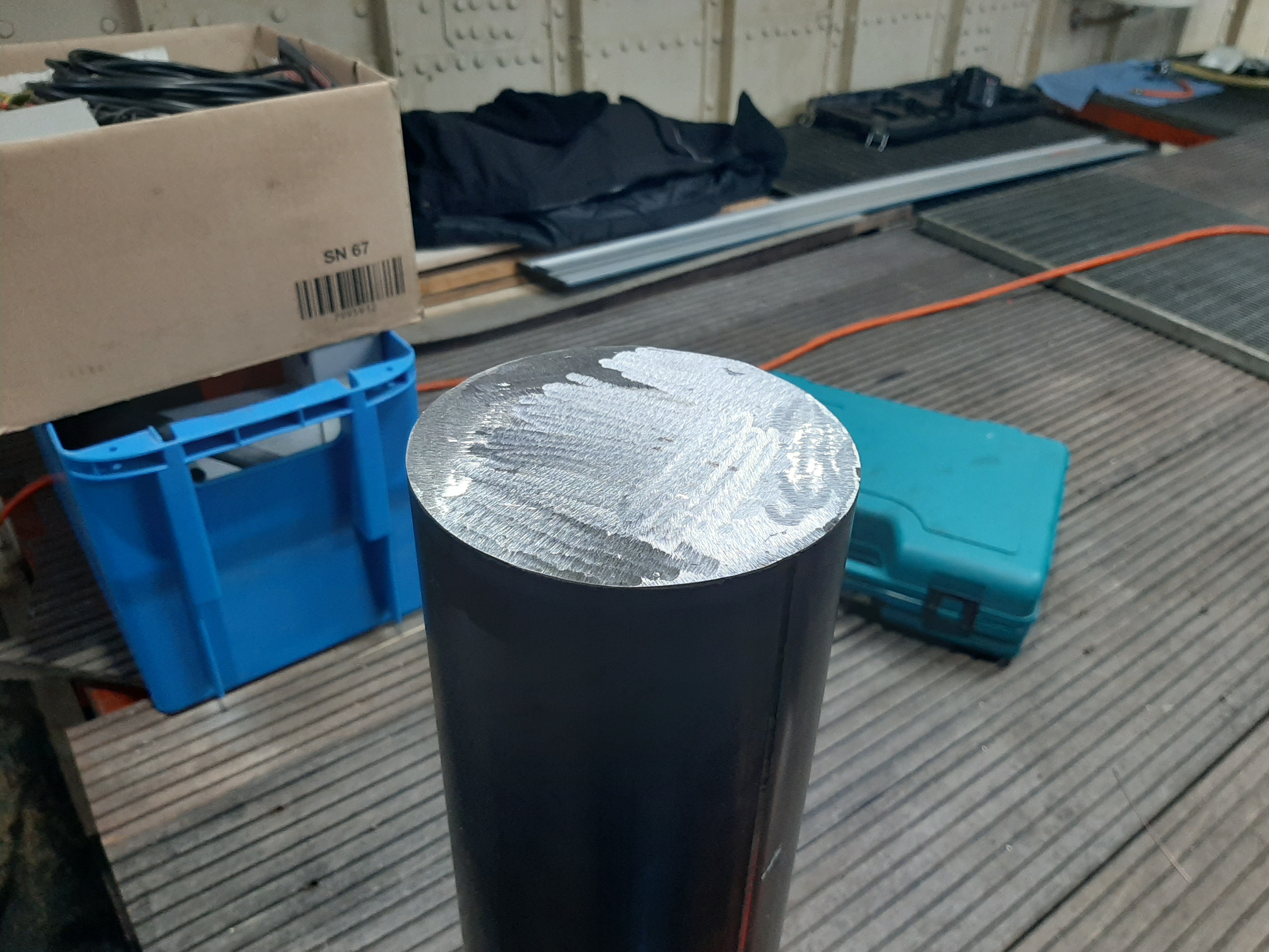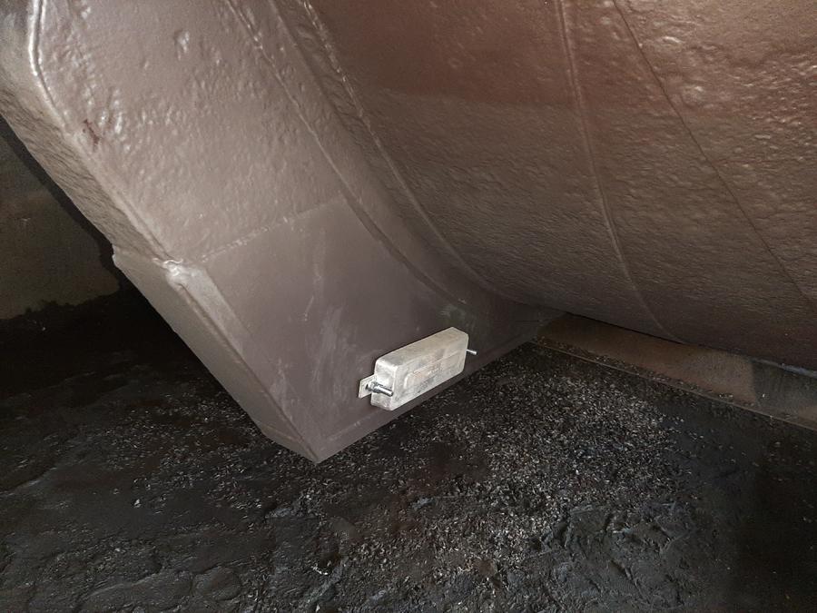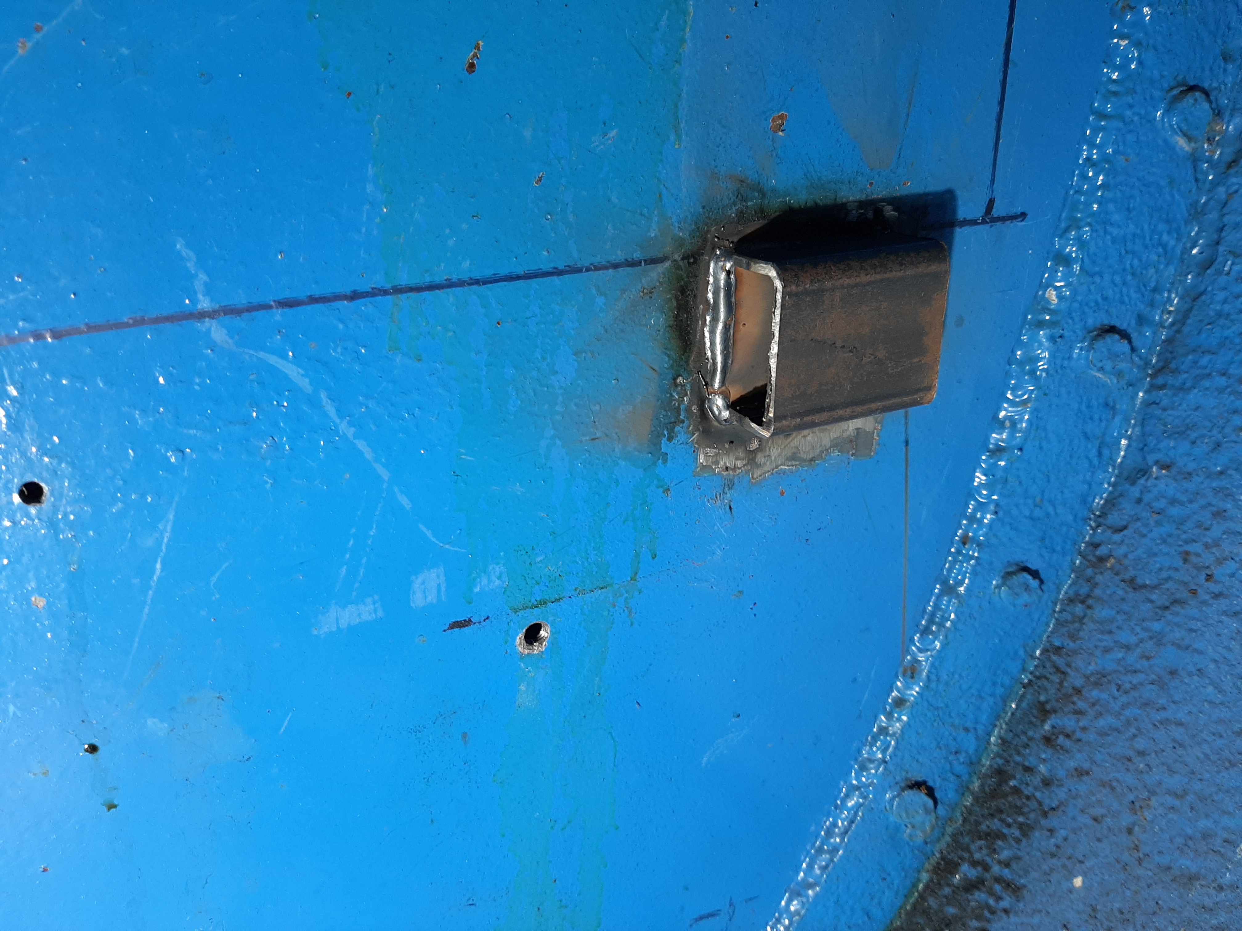 Die Anoden die dran waren, hätte man vielleicht nochmal verwenden können, aber wir dachten uns, wenn wir schon mal draußen sind, machen wir die gleich neu. Dafür wurden einfach Außensechskant M10 Schrauben mit der Außenwand verschweißt. Diese fungieren quasi als Stehbolzen. So kann man auch im Wasser die Anoden wechseln, falls das mal notwendig sein sollte.