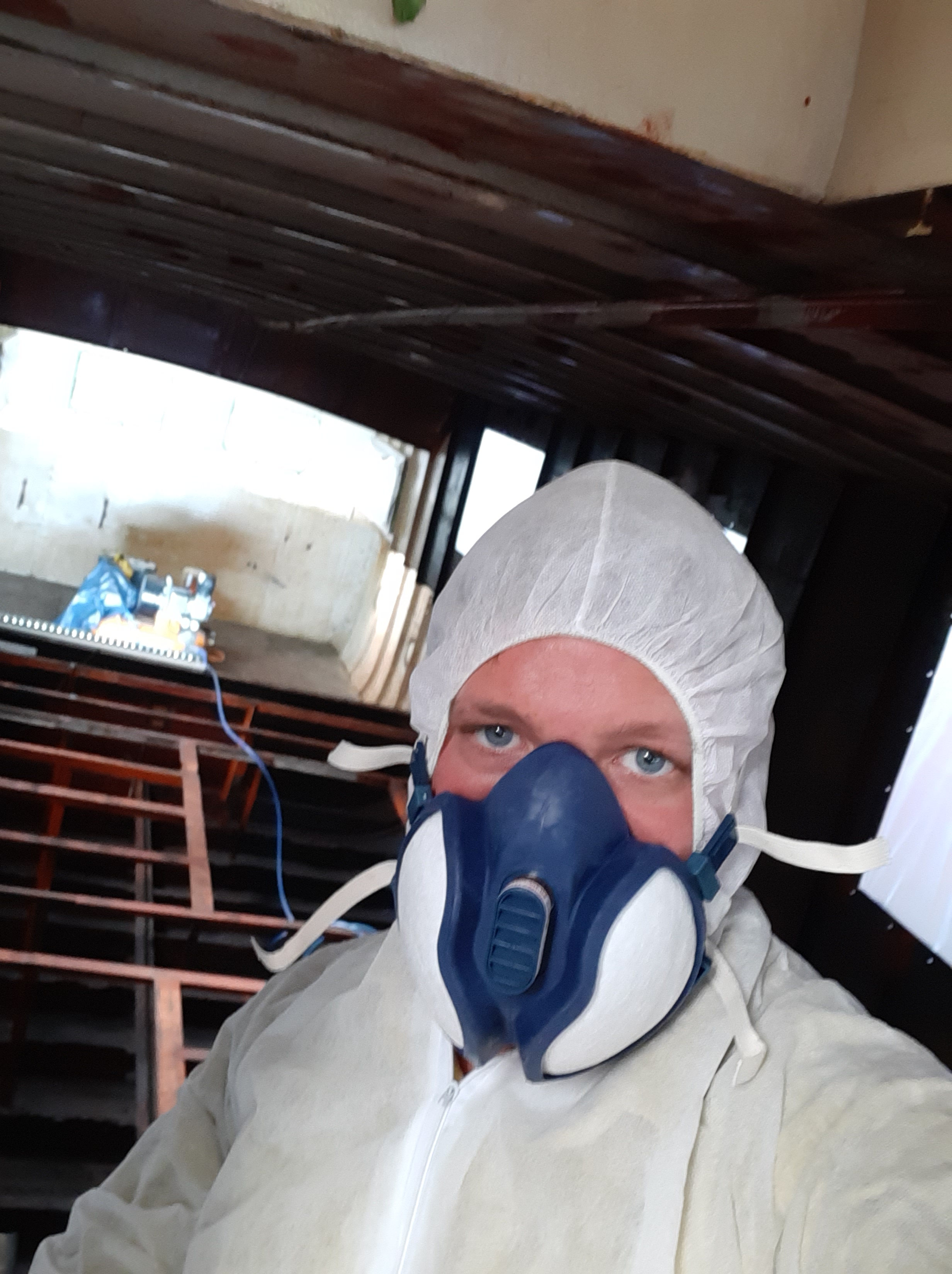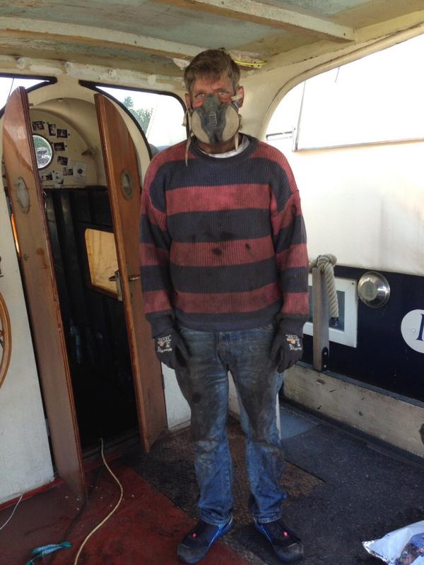 Anschließend haben wir lackiert. Im Innenraum allerdings mit der Pistole. Dadurch, dass auch andere Boote im Dock lagen, durfte kein Sprühnebel den Innenraum verlassen. Das hatte zur Folge, dass es drinnen kaum möglich war zu atmen – eine qualvolle Arbeit. Sie machte keinen Spaß, hatte aber einen Effekt. So langsam war das Boot nicht mehr so schäbig. Man bekam keine Dreckfoten, wenn man die Bordwand anfasste und der Dieselmief ließ deutlich nach. Wir waren wieder auf der Spur – dachten wir.
