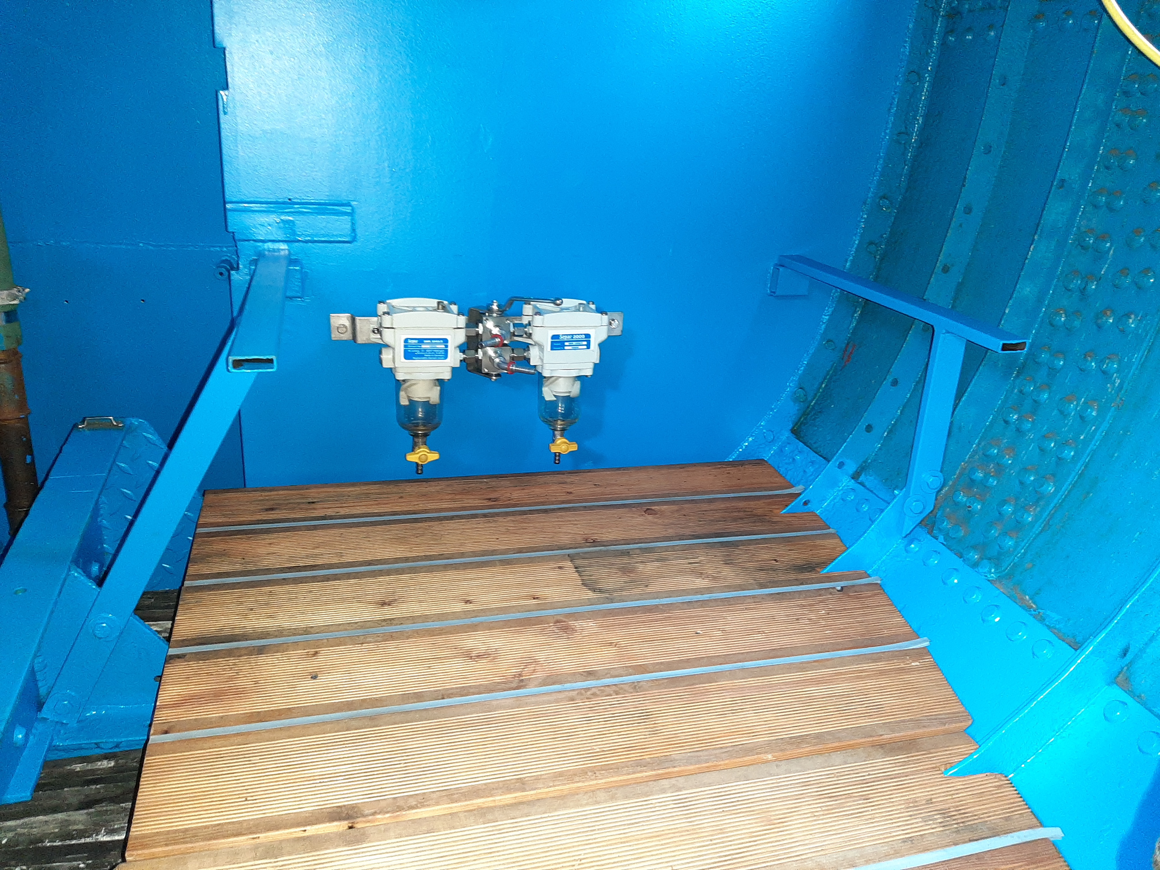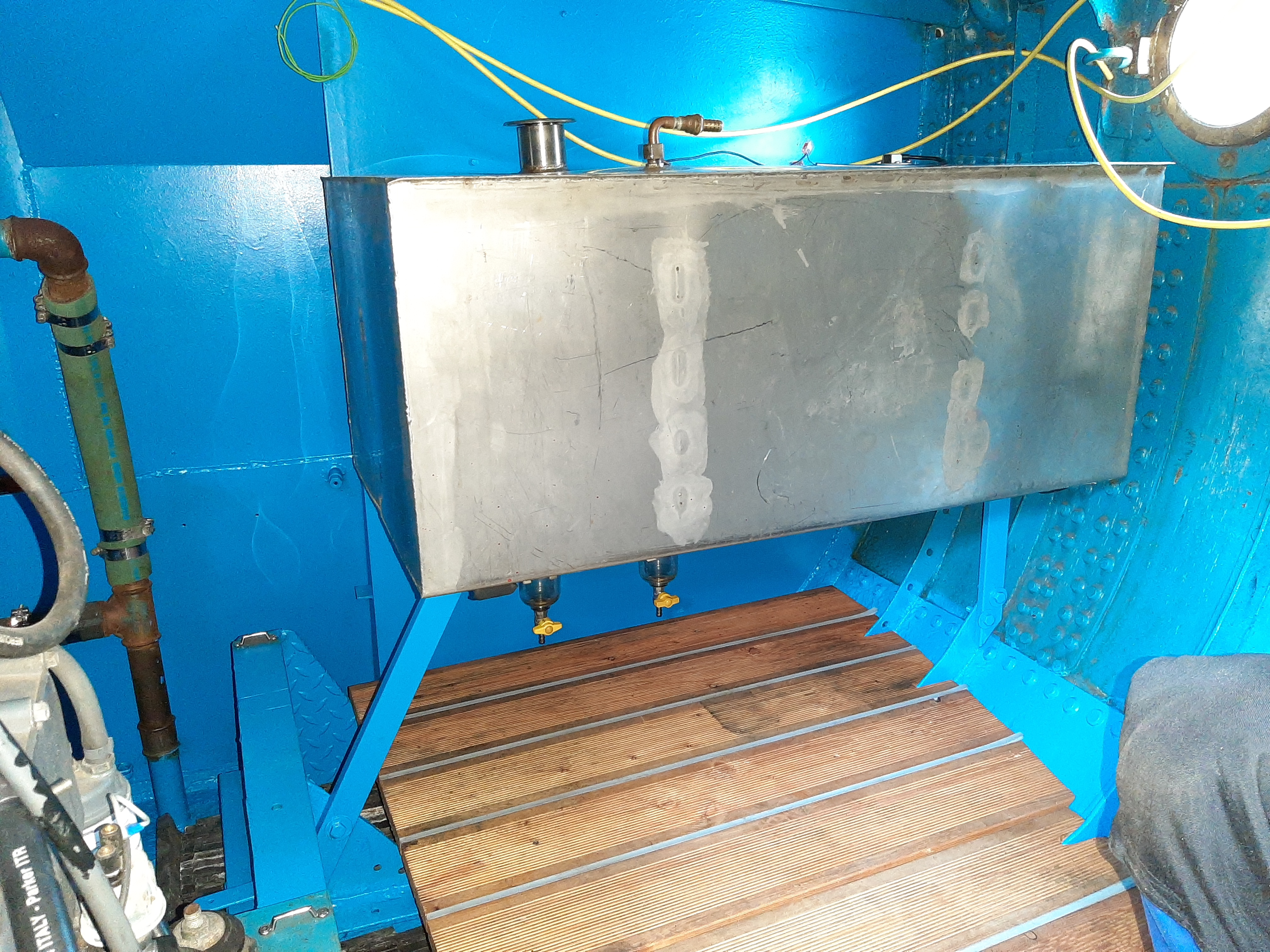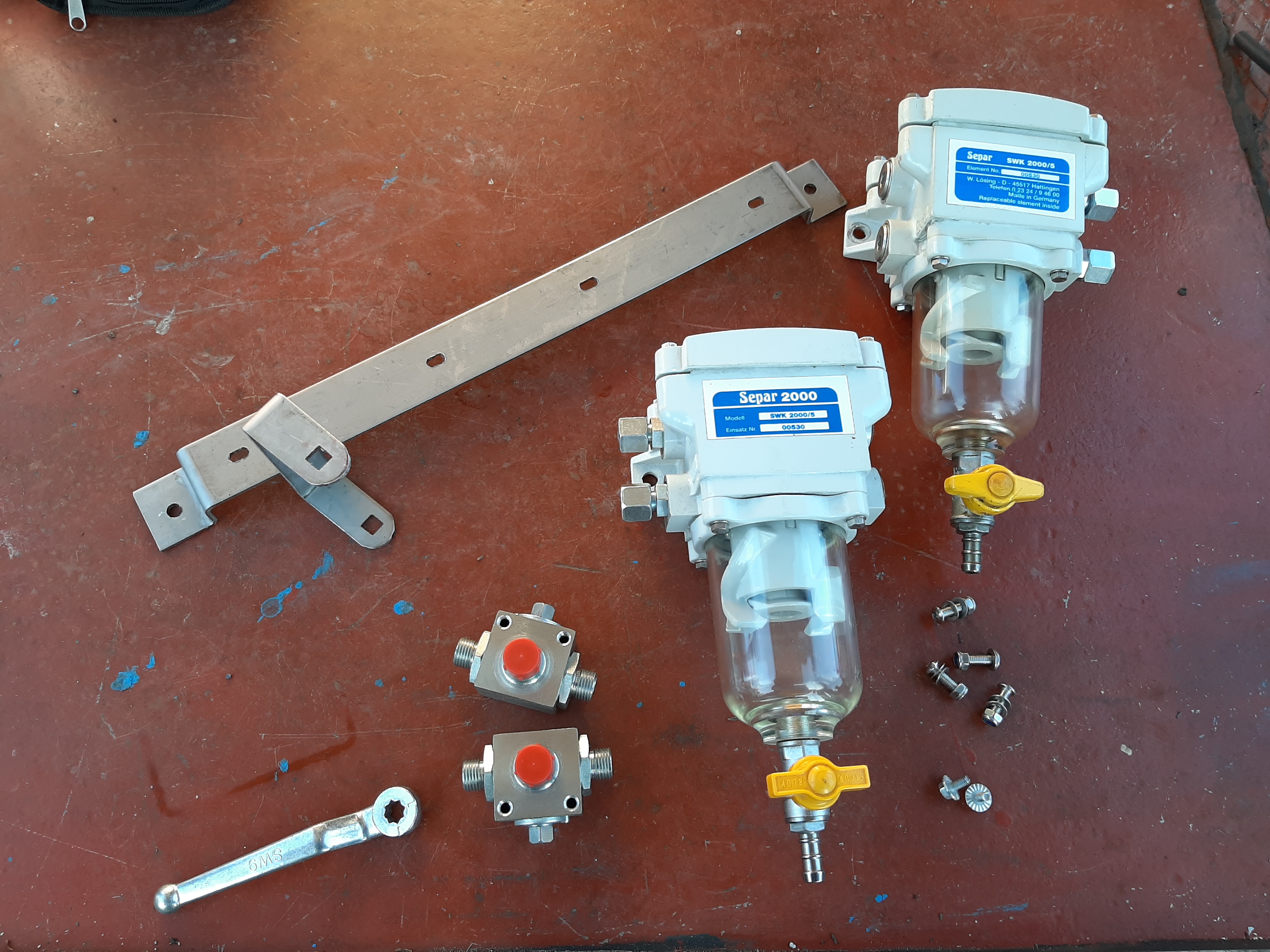 Im Motorraum wurde dann auch noch geschweißt. Und zwar eine Halterung für den neuen Tank. Ursprünglich hatten wir diesen direkt vor dem Motor auf dem Motorfundament „abgestellt“. Dies hatte allerdings zur Folge, dass wir wenig bis gar nicht die Kühlwasserschläuche inspizieren konnten. Also haben wir ein Untergestell für den Tank angeschweißt. Im gleichen Zuge haben wir dann eine Separ Doppelfilteranlage installiert. Auch dafür musste wieder ein Freund für mich ein paar Edelstahlbleche biegen. Wir waren zu geizig für das Komplettpaket, also kauften wir alle Zubehörteile einzeln und bauten es selber.