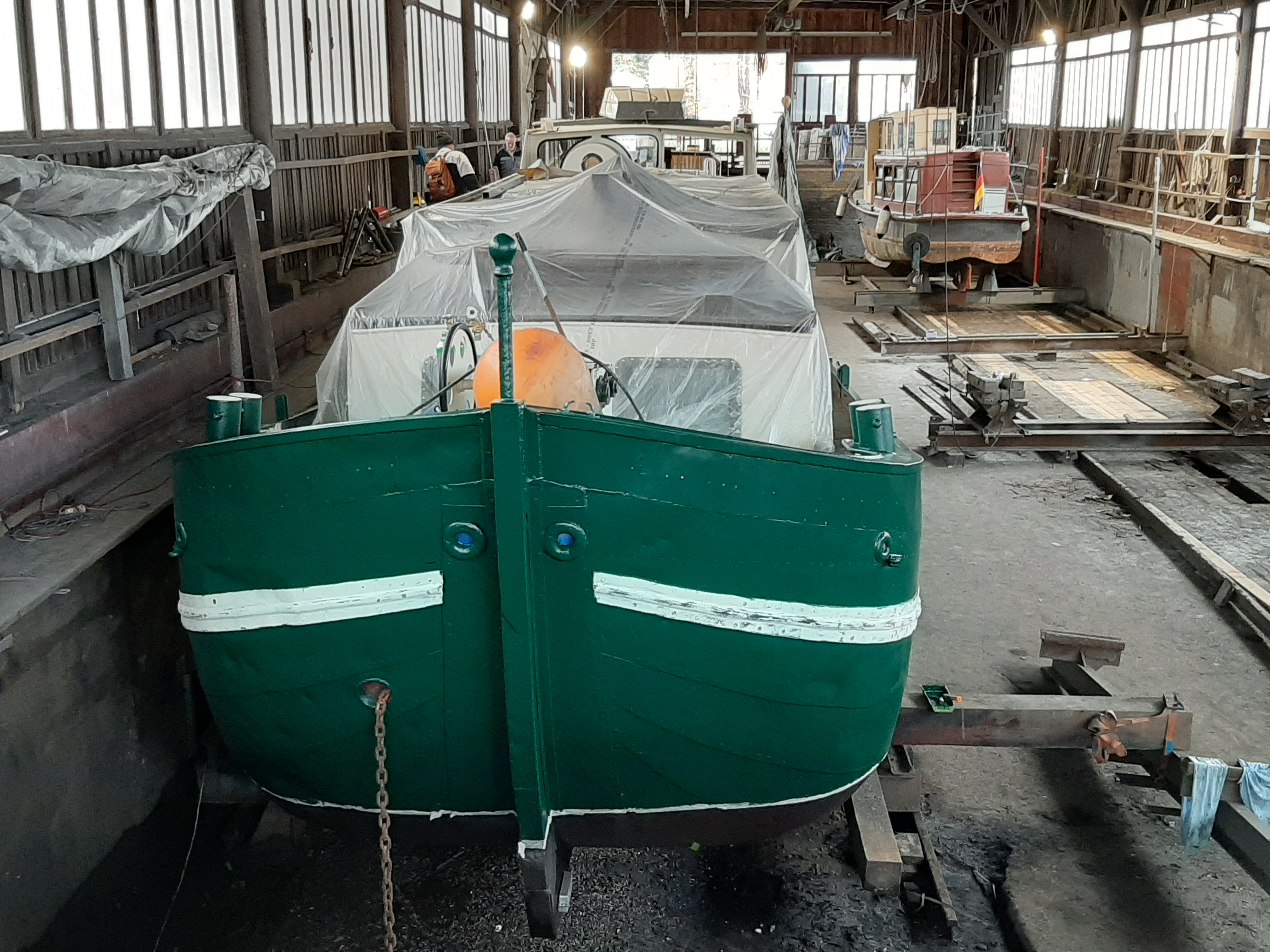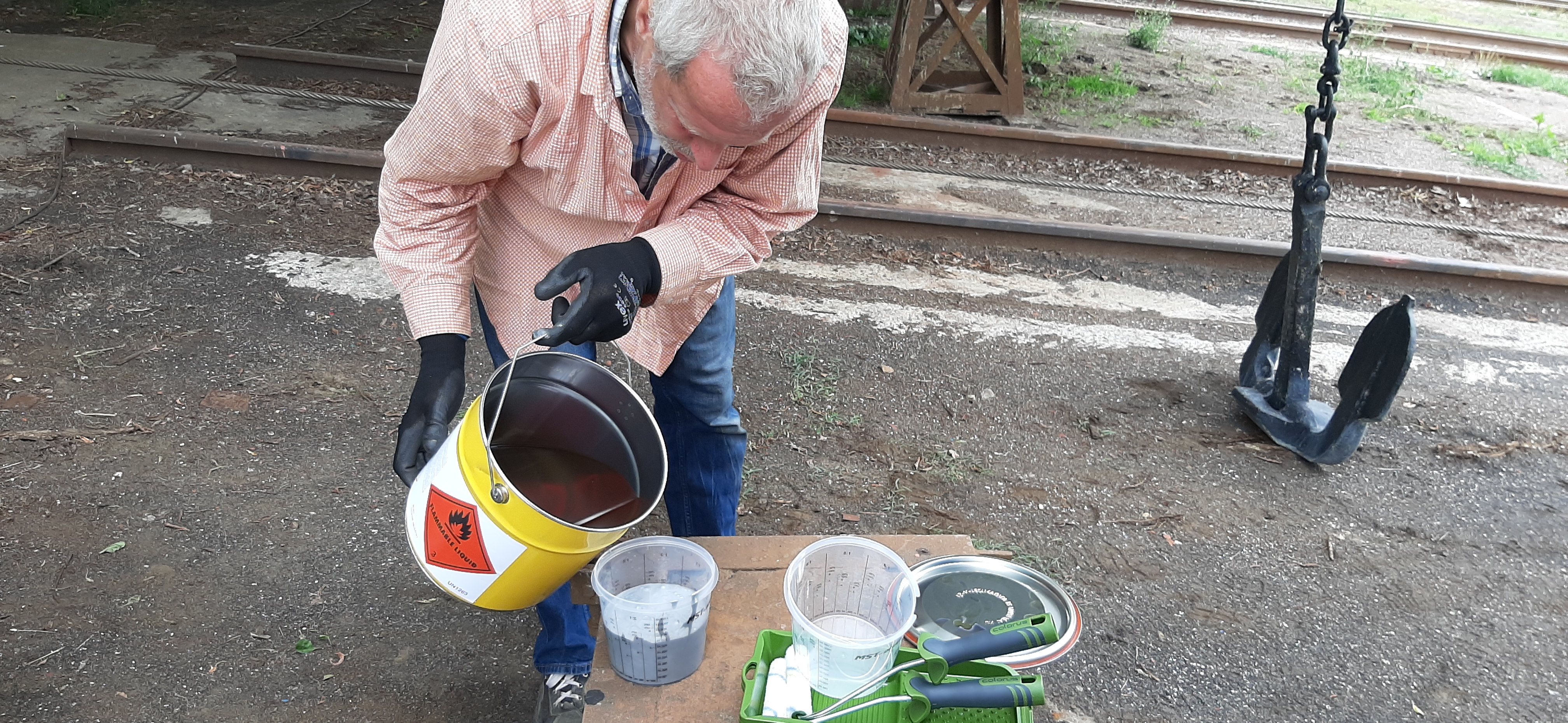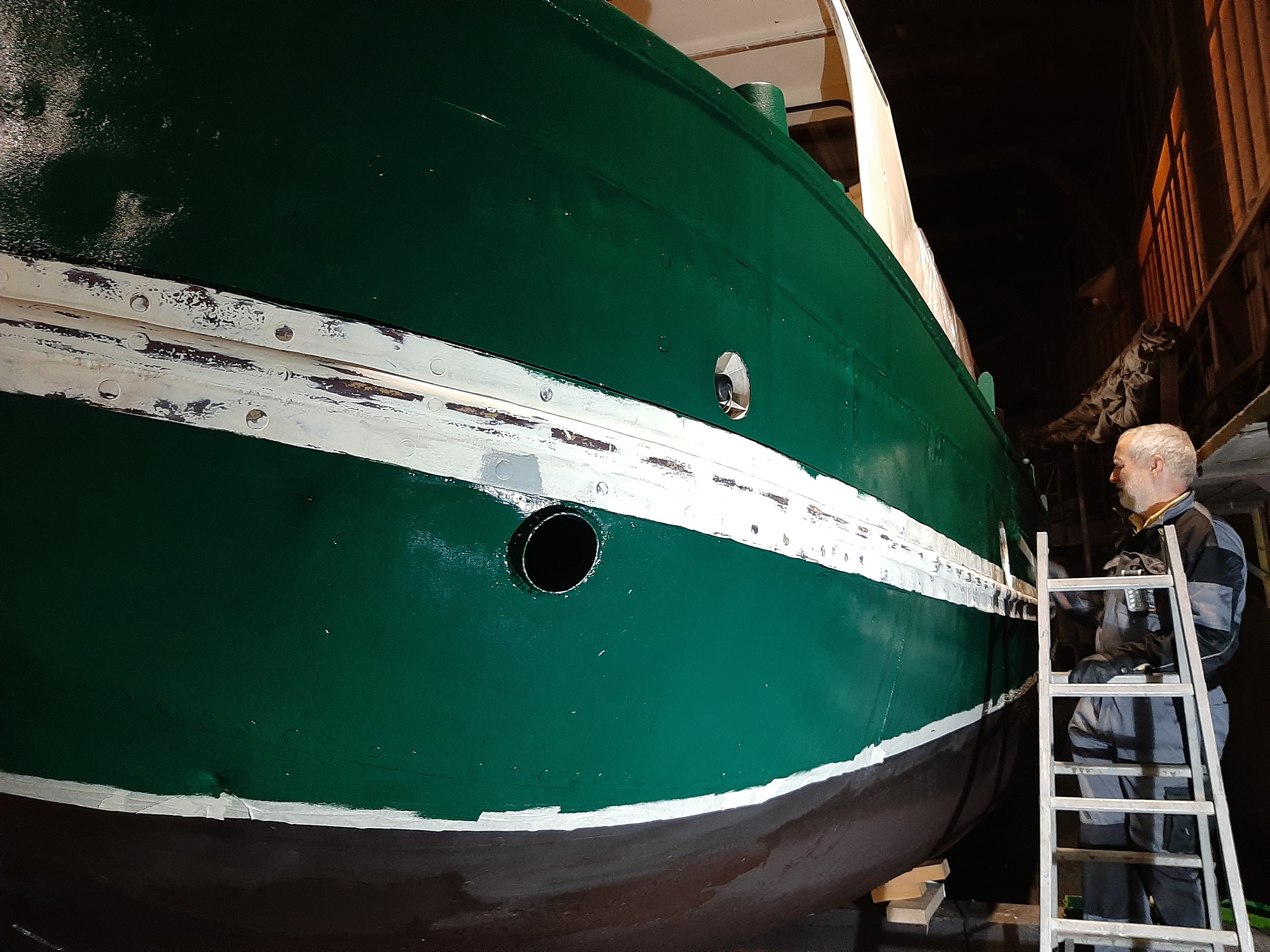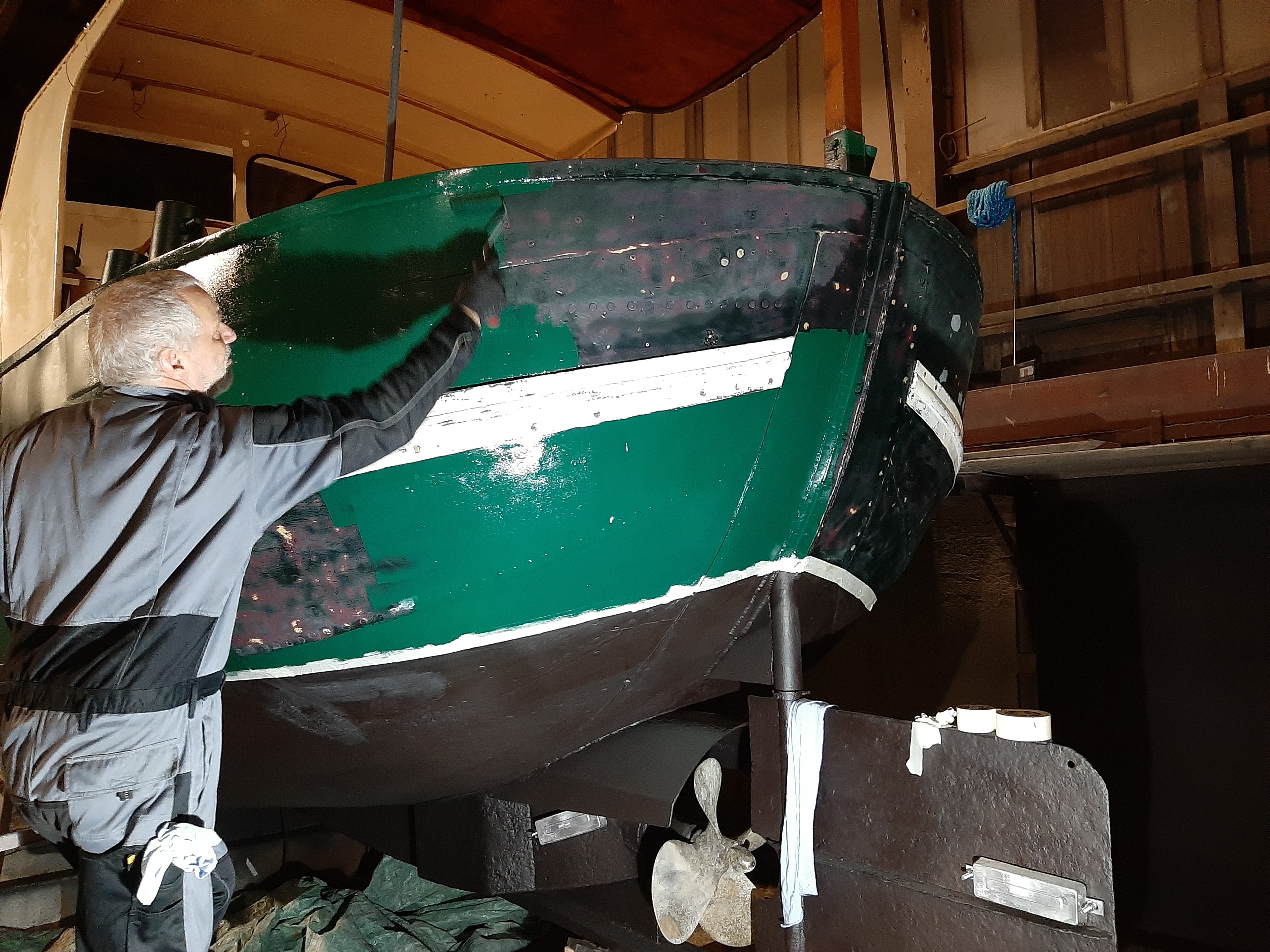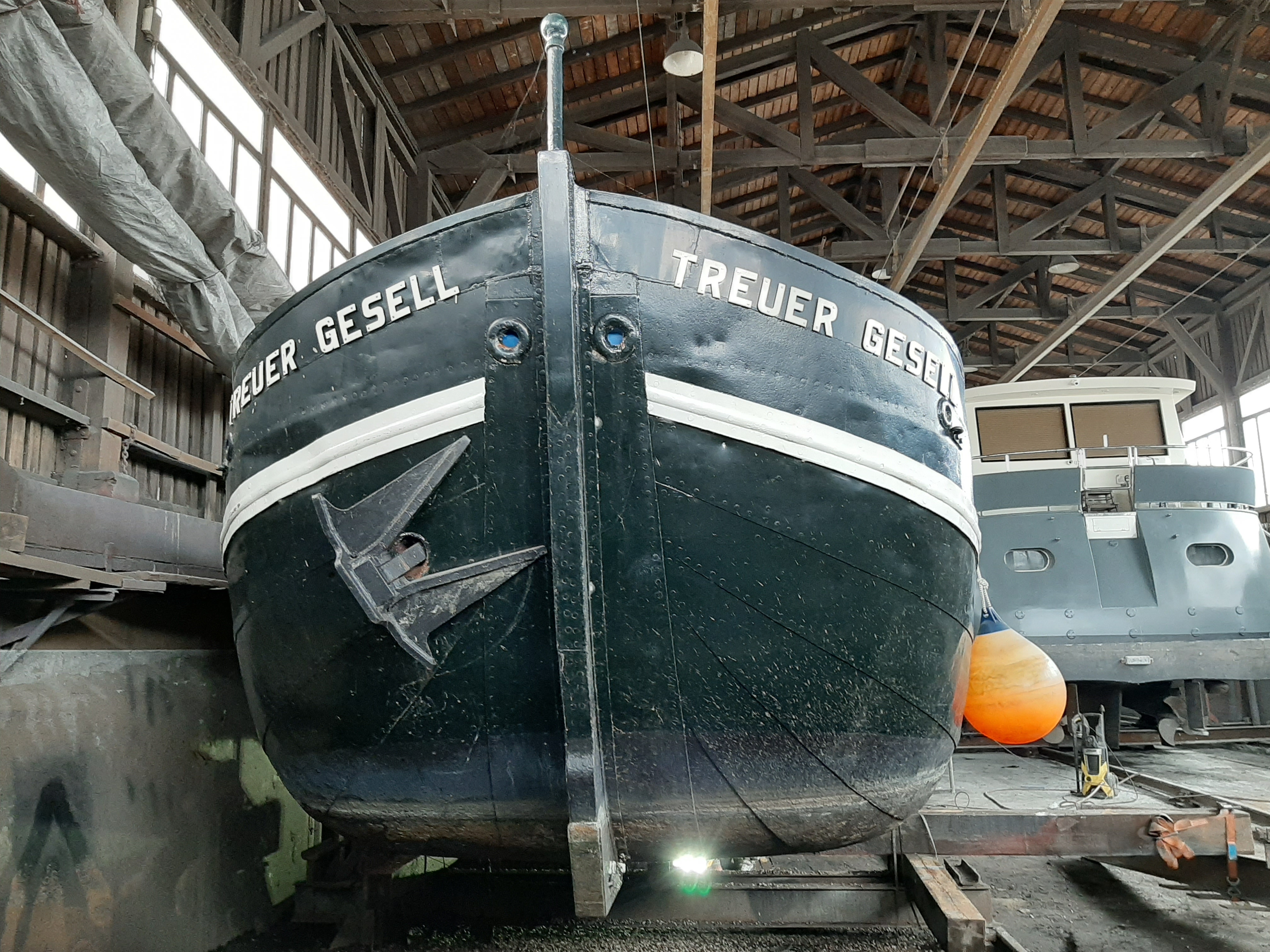 Die ersten Arbeiten, welche ich ausführte war den Schriftzug „TREUER GESELL“ zu erneuern. Auch das Holzschild, welches jeweils auf Backbord und Steuerbord hängt wurde neu lackiert.