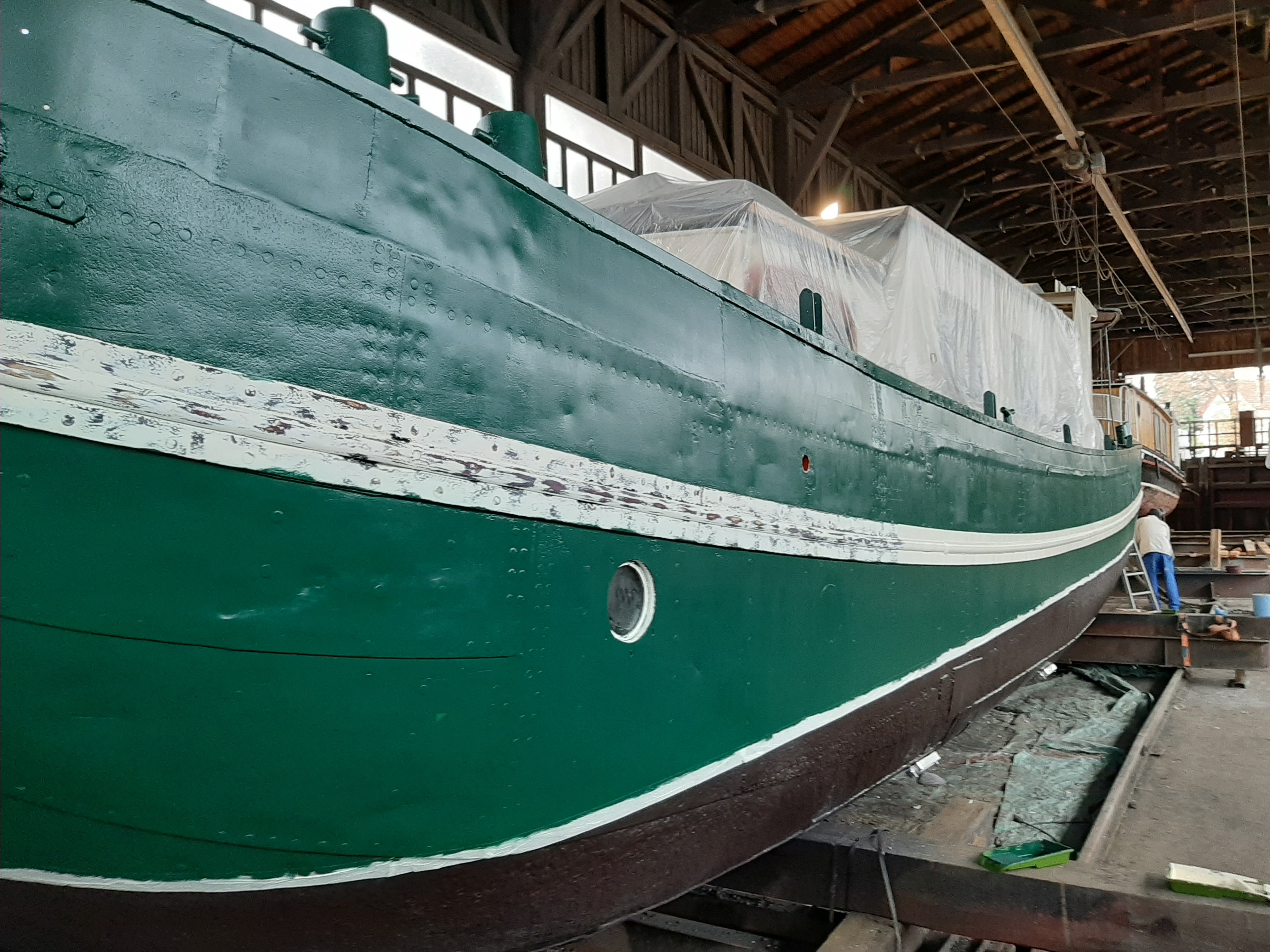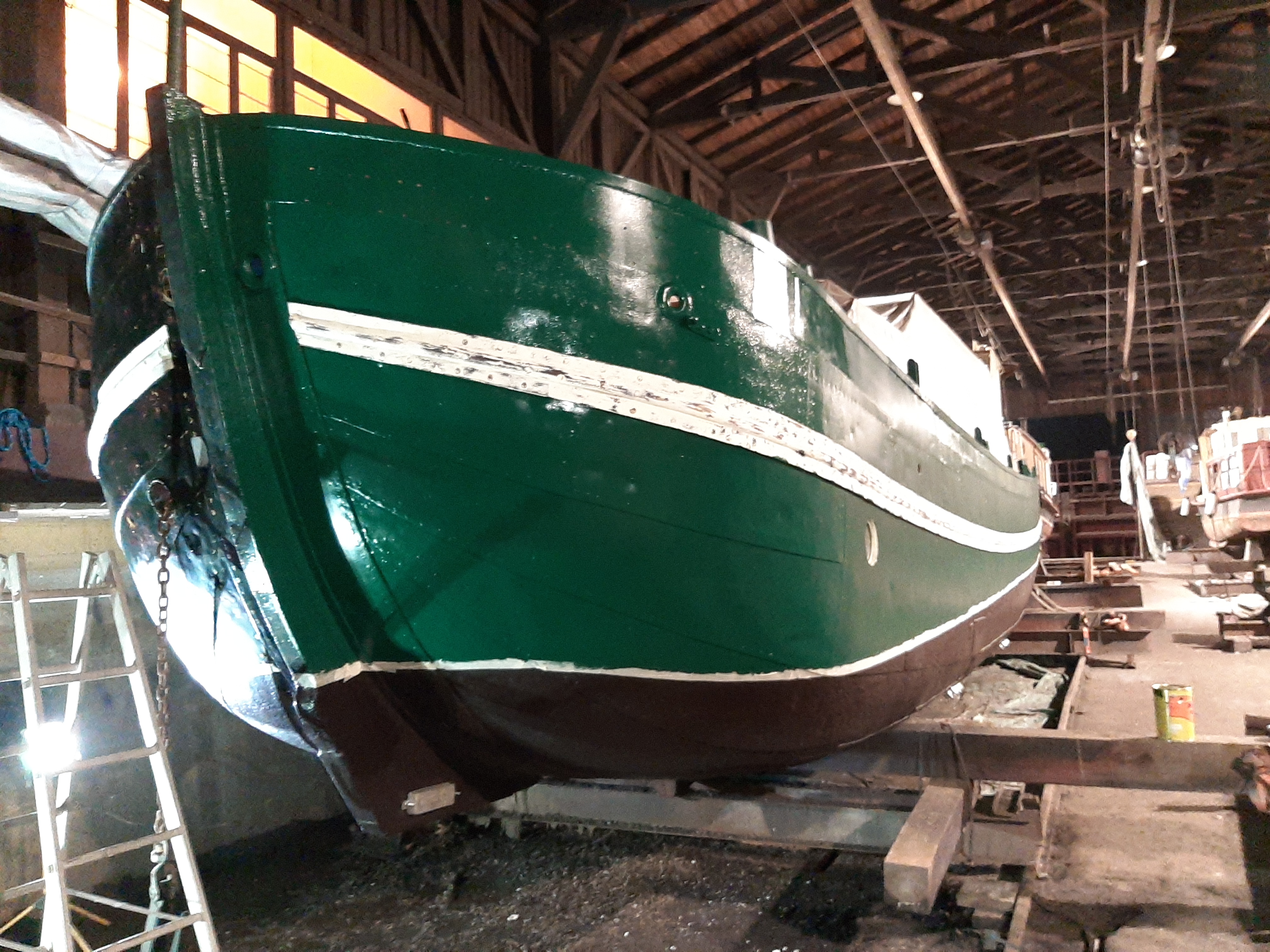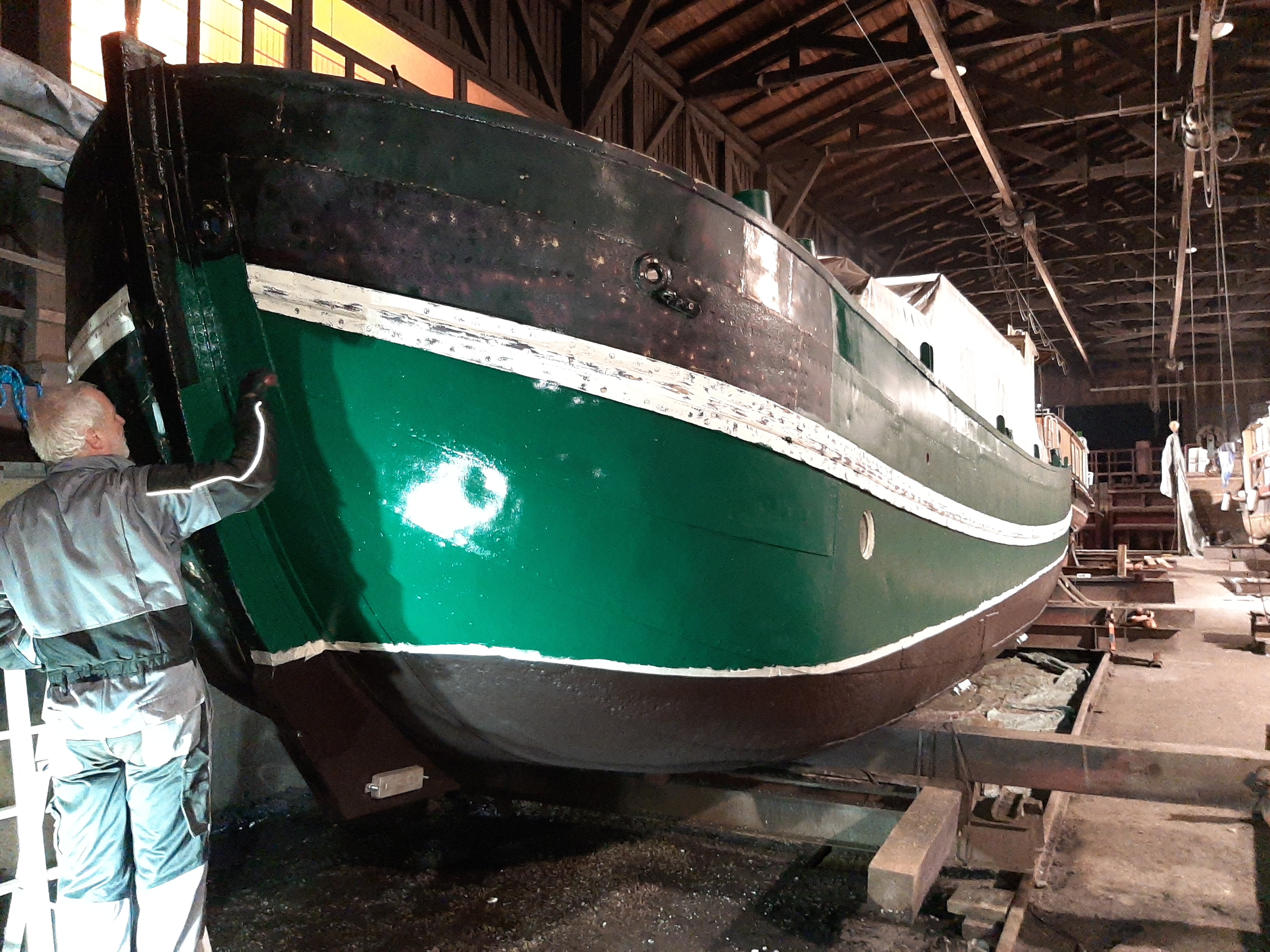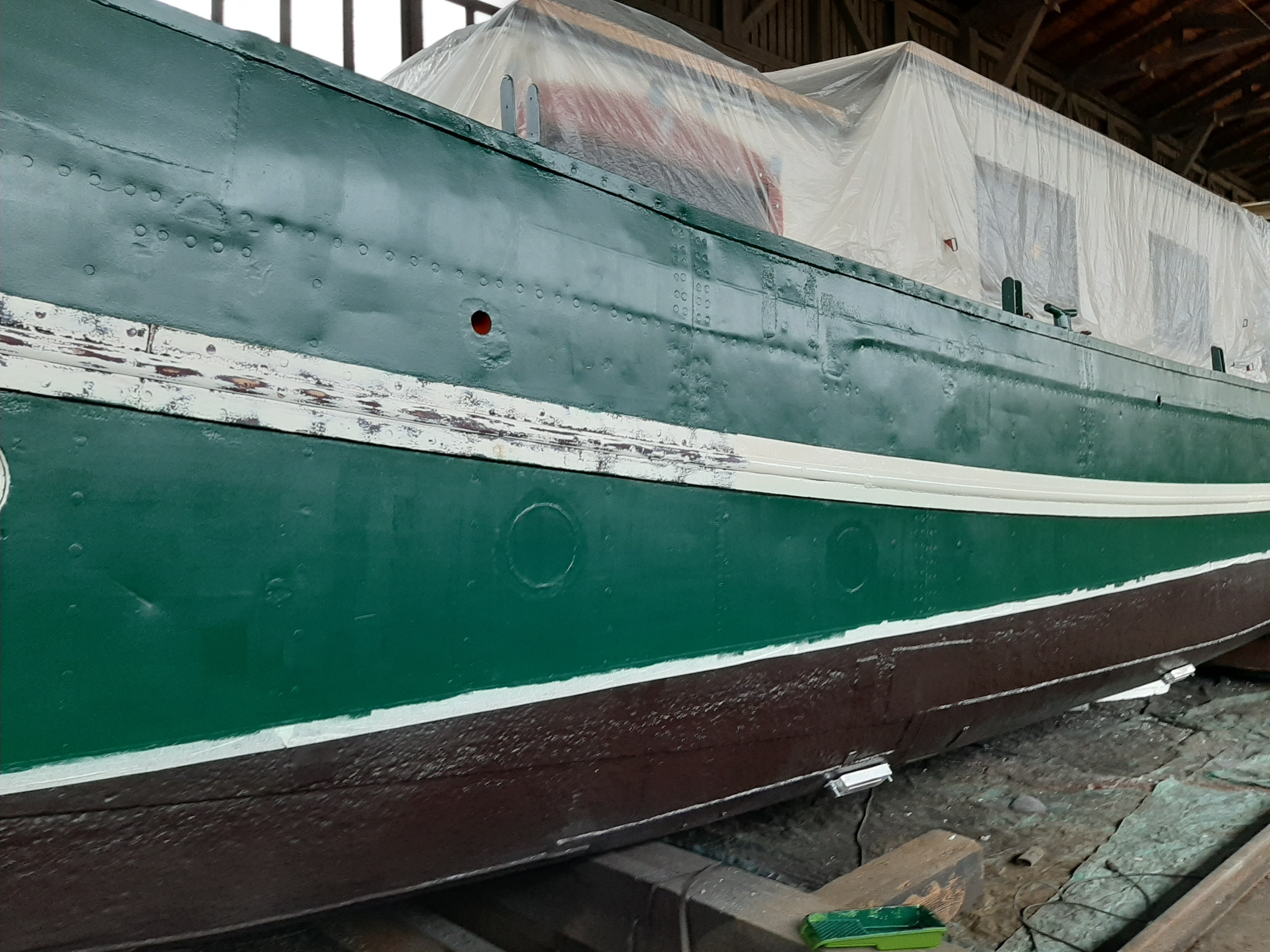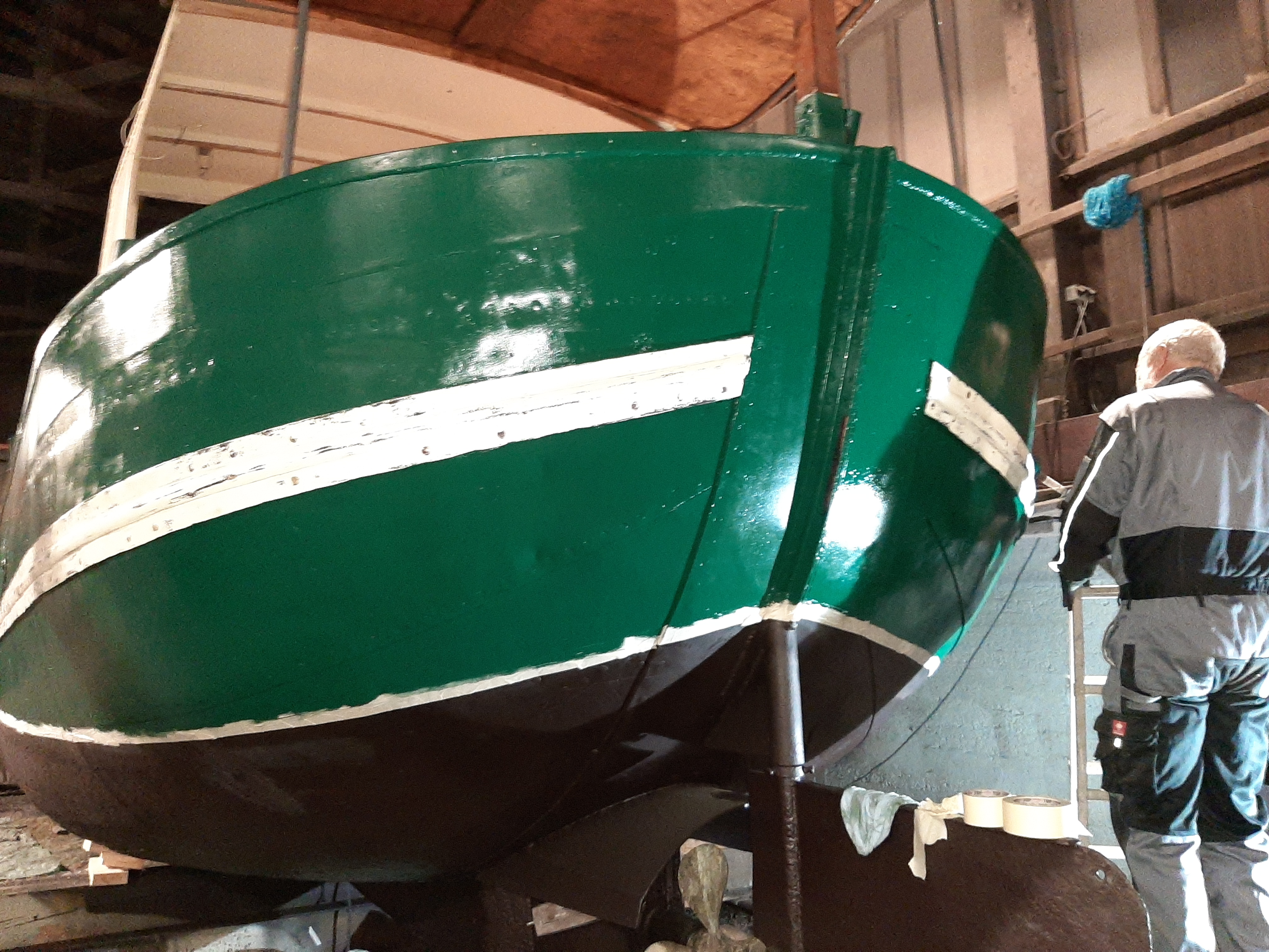 Die ersten Arbeiten, welche ich ausführte war den Schriftzug „TREUER GESELL“ zu erneuern. Auch das Holzschild, welches jeweils auf Backbord und Steuerbord hängt wurde neu lackiert.