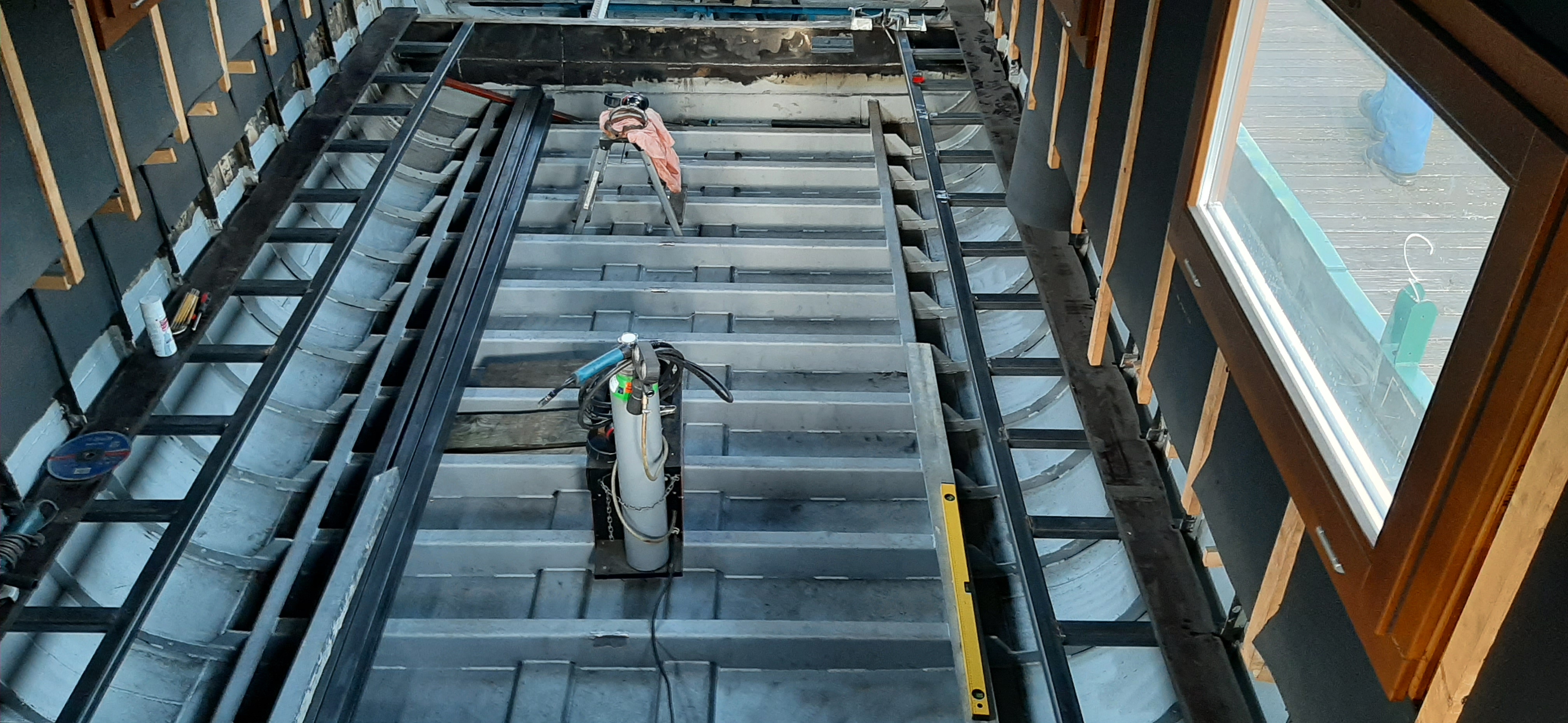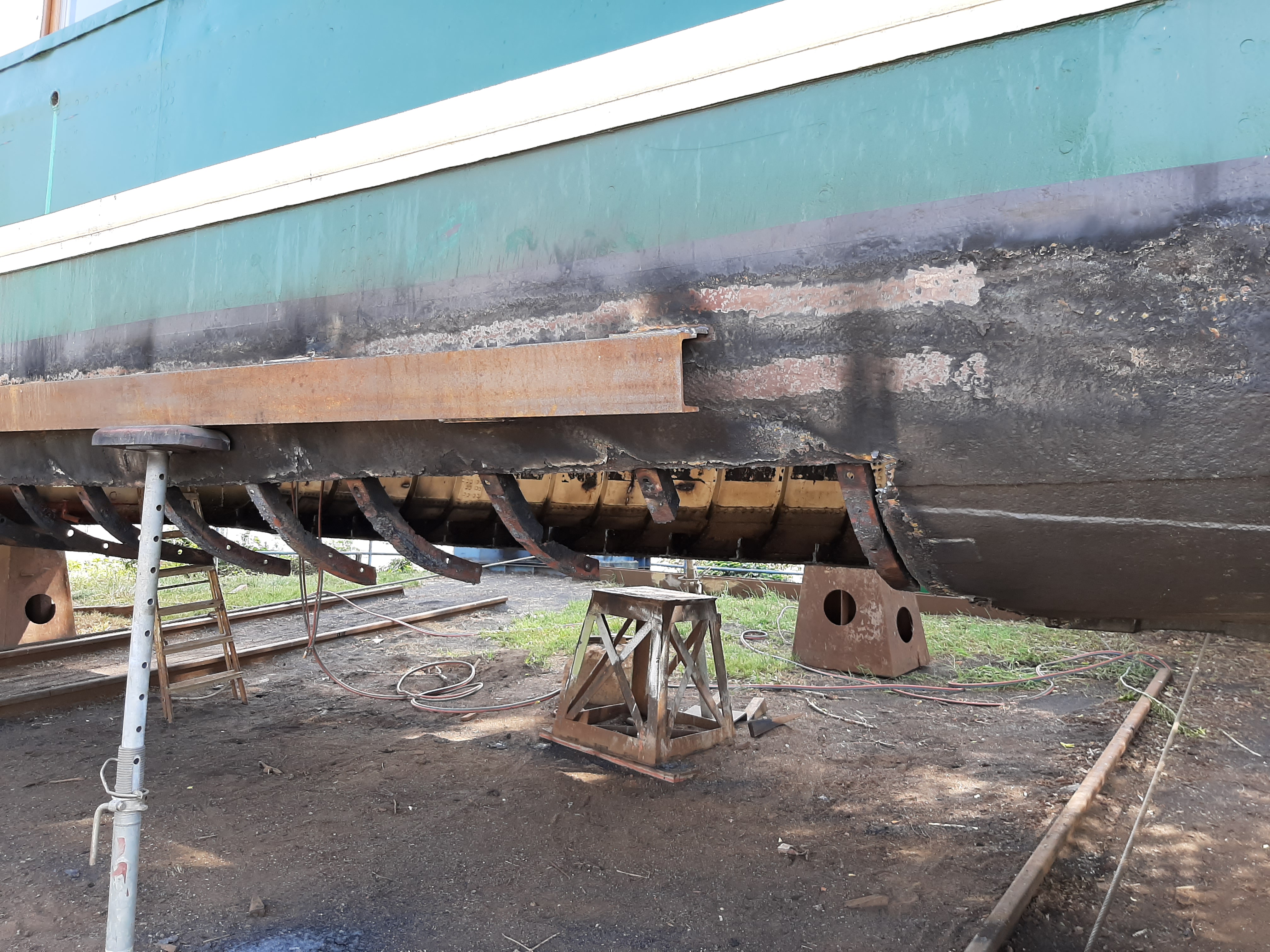 Für mich war es an der Zeit mein Segelboot aus Finnland zu holen. Hier und da bekam ich ein paar Bilder vom Fortschritt am Boot. Und wie gedacht, war das alles sehr ordentlich. Zunächst wurden sehr starke Doppel-T-Träger an die Bordwand geschweißt, um das Boot aufbocken zu können ohne dass es sich verwindet.